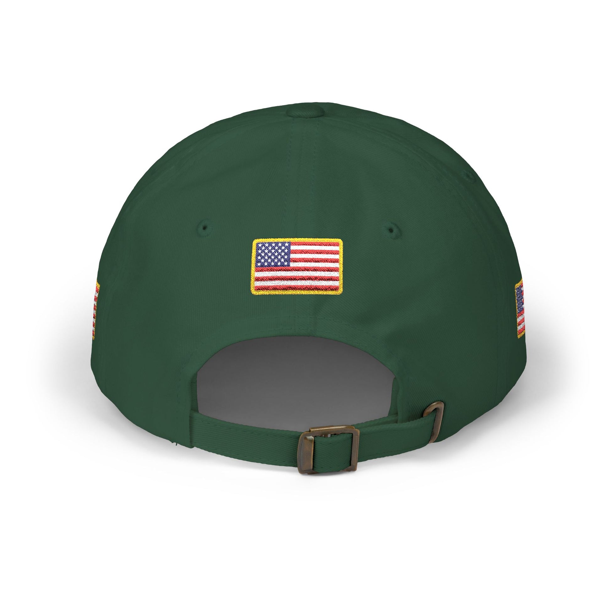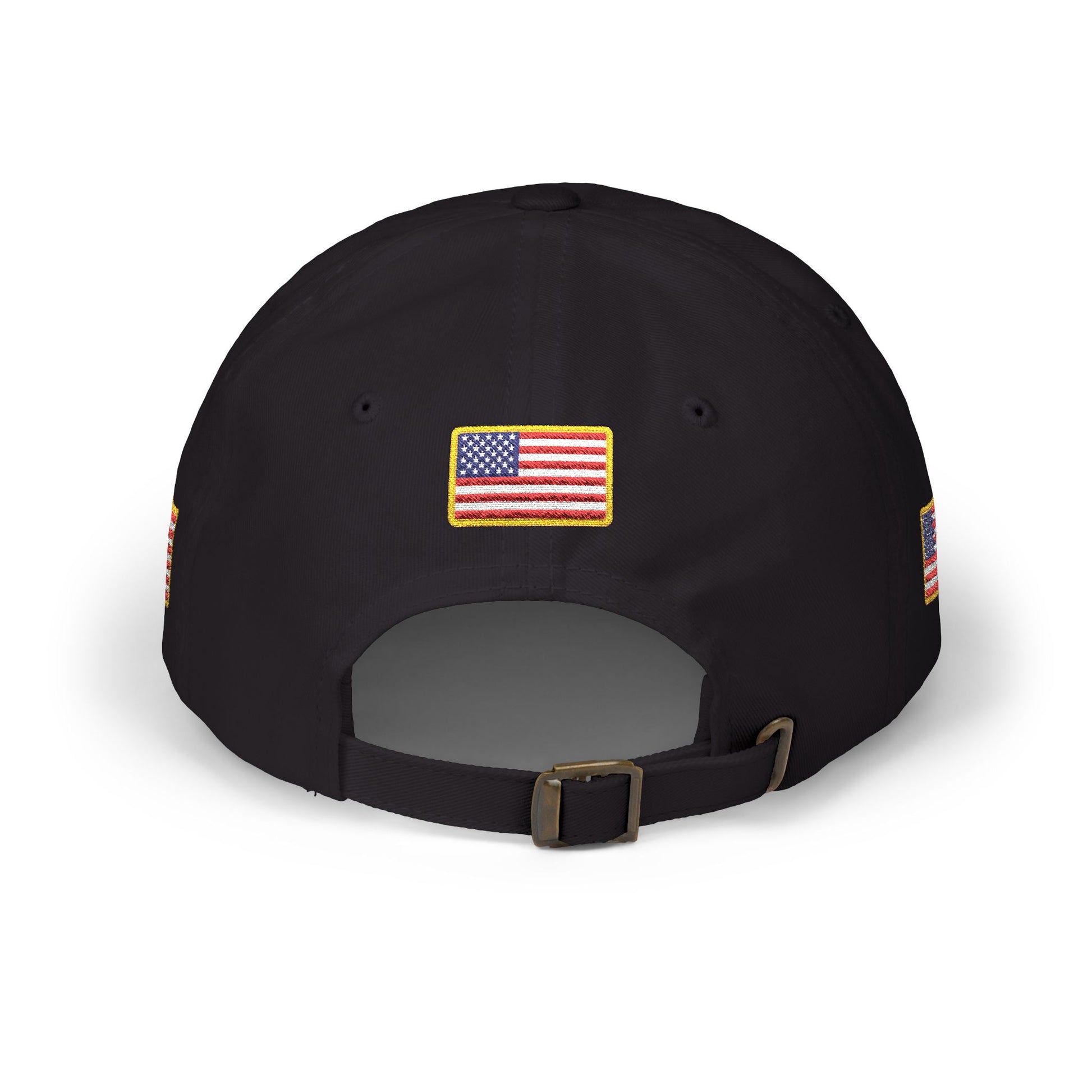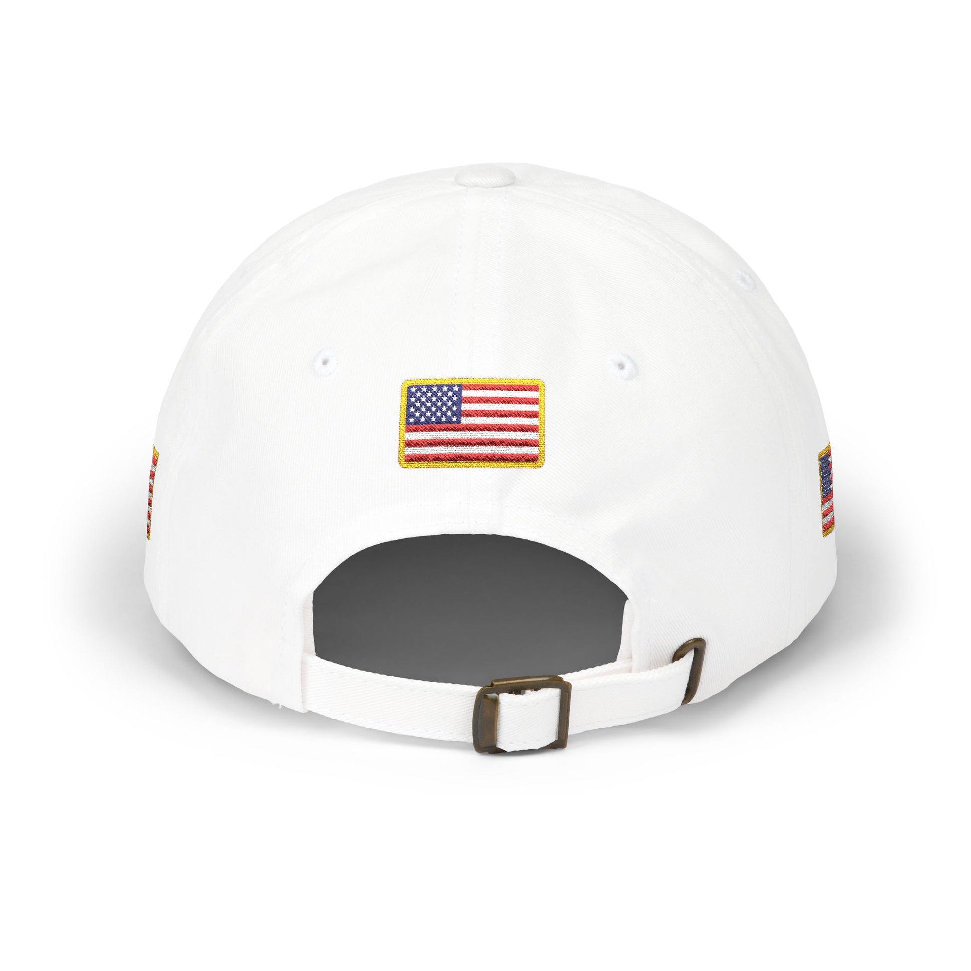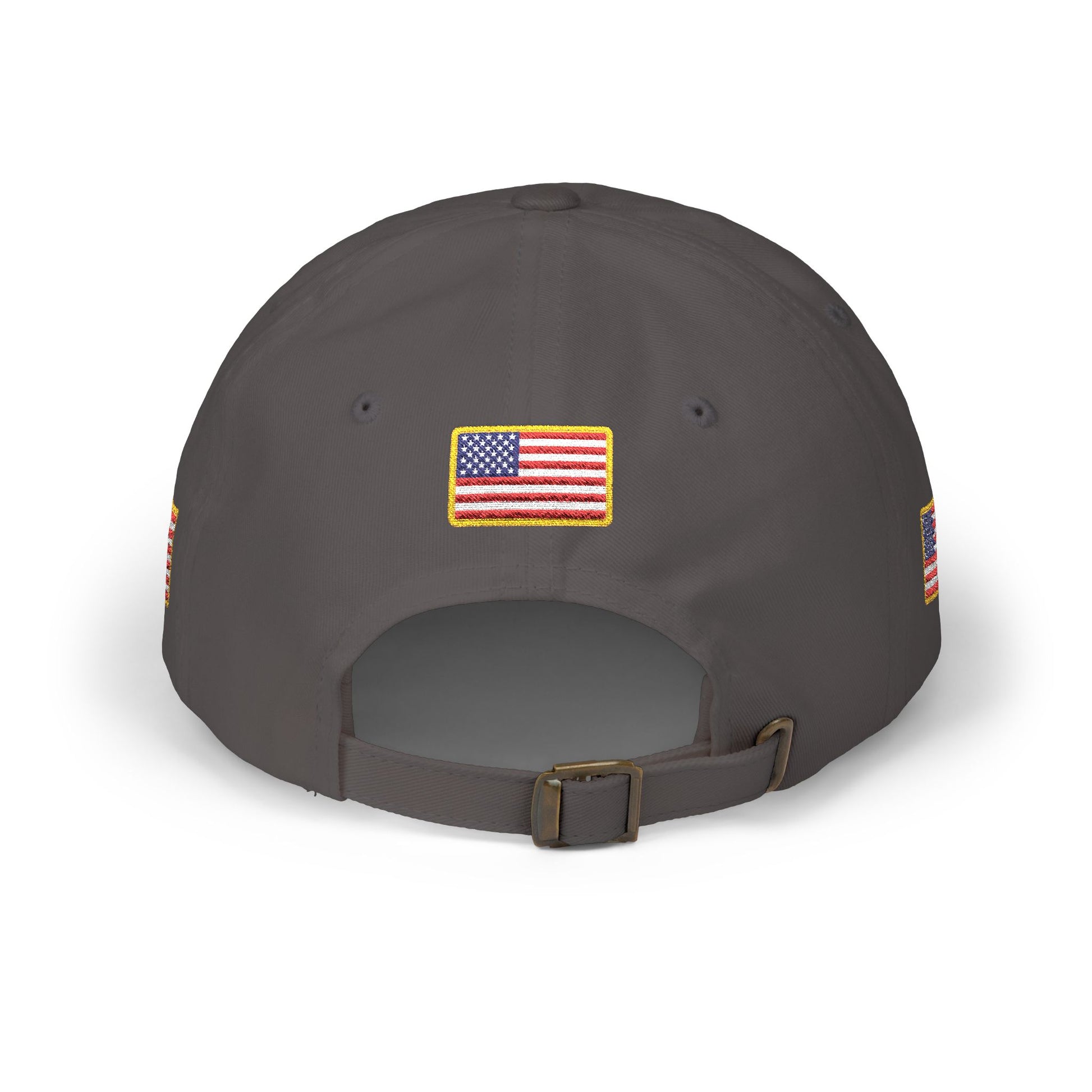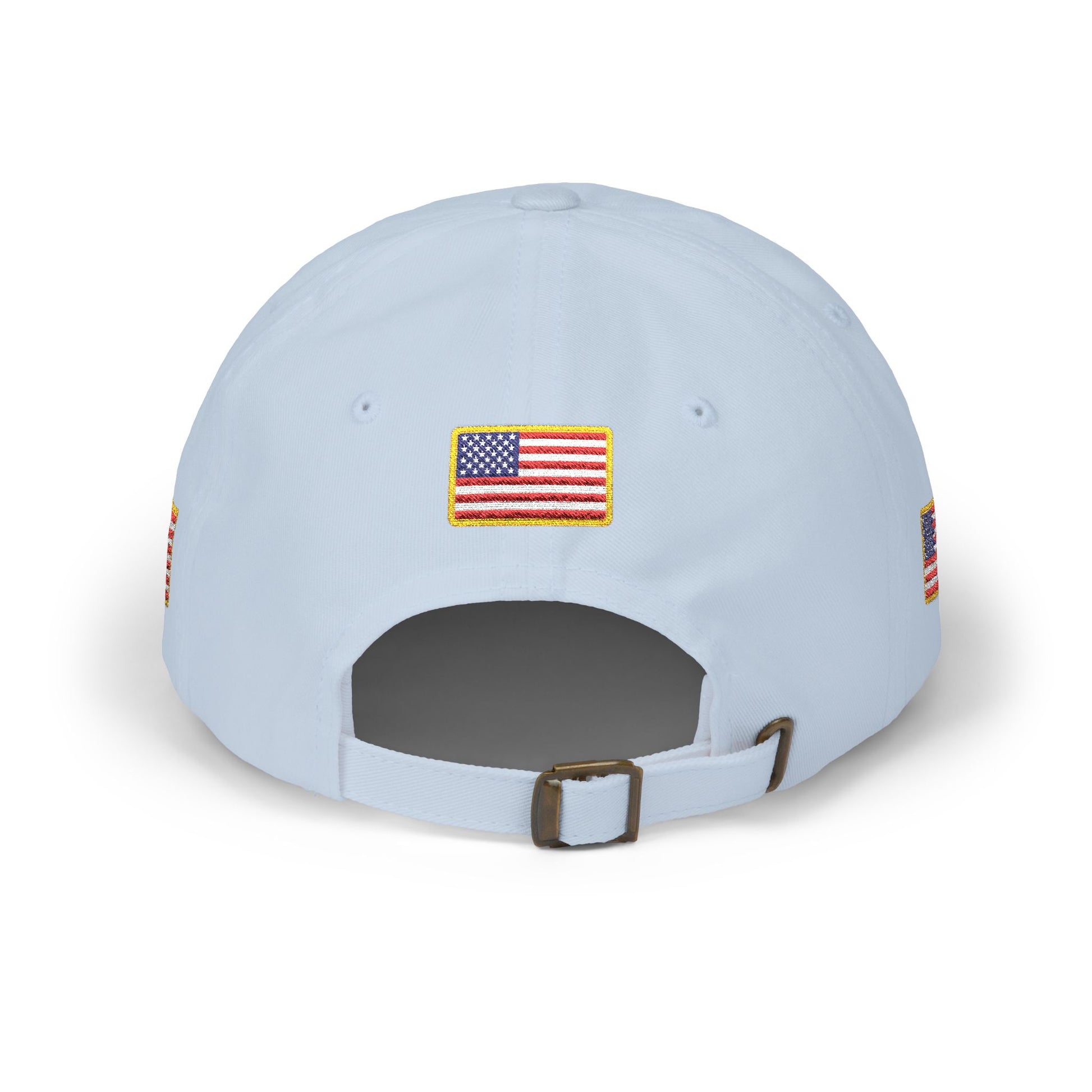 Crafted in a classic dad‑hat silhouette, it offers a relaxed fit, curved brim, and adjustable strap. The hat comes in multiple colors, allowing you to choose the perfect base to complement the gold accents and patriotic embroidery.