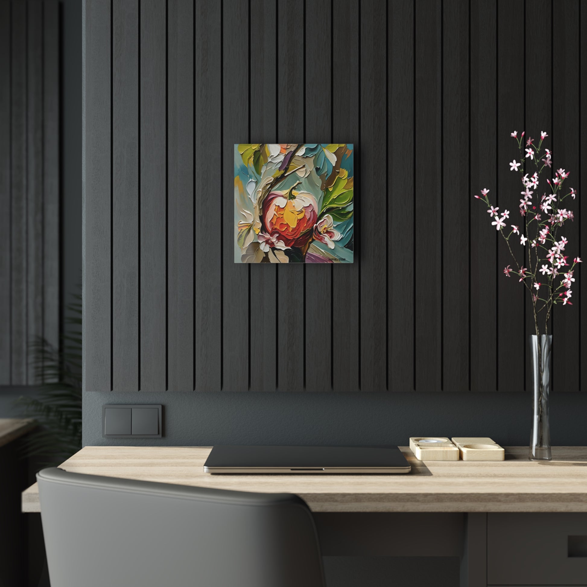 Elevate your home decor with a unique impasto art of Apple and flowers painting printed on clear acrylic. This Acrylic Print provides a modern and sophisticated touch, perfect for art enthusiasts and those looking to add a chic statement piece to their space. Ideal for special occasions, home decorations, and gifts for art lovers.