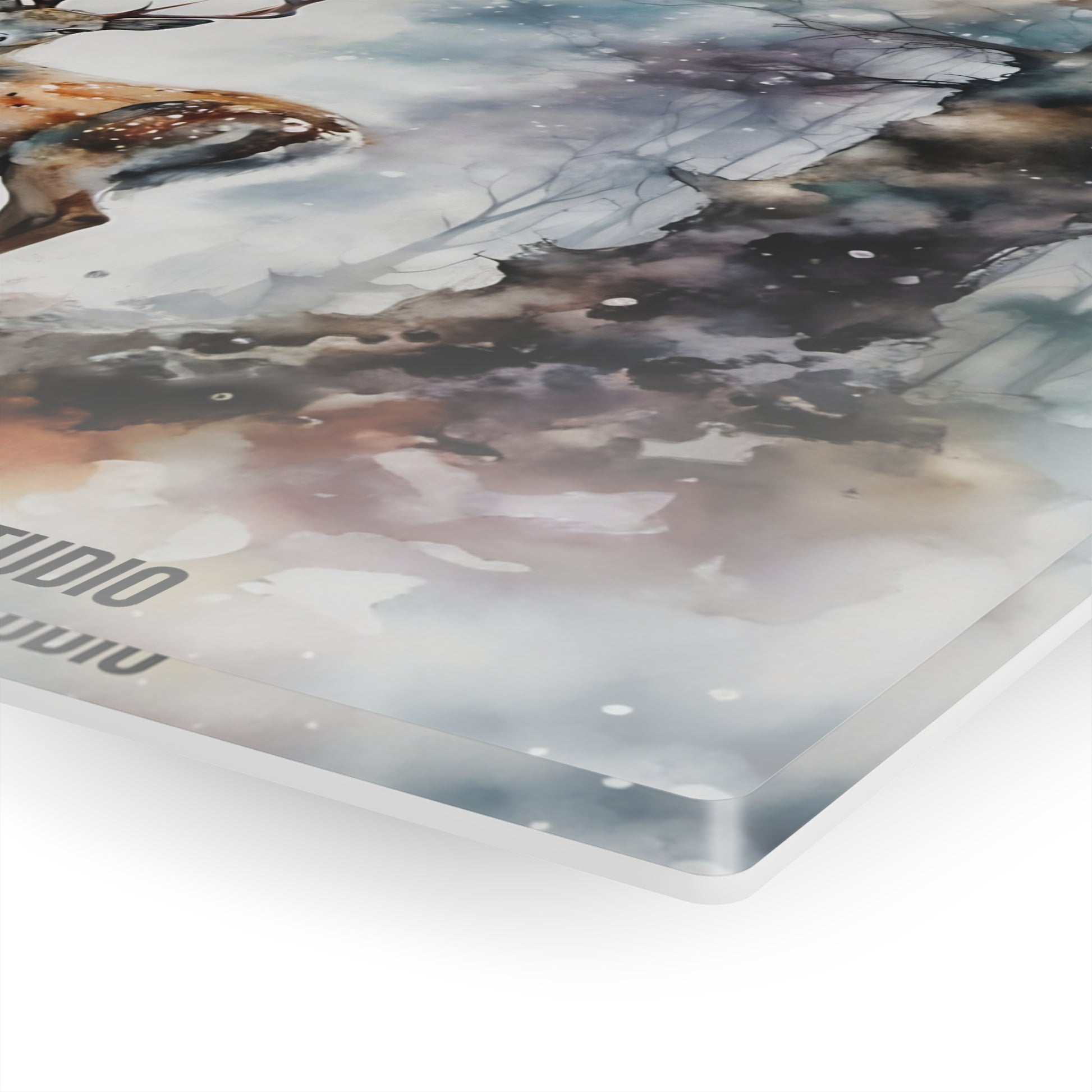 Acrylic Print - Snowy Winter Deer Art for Holiday Gift