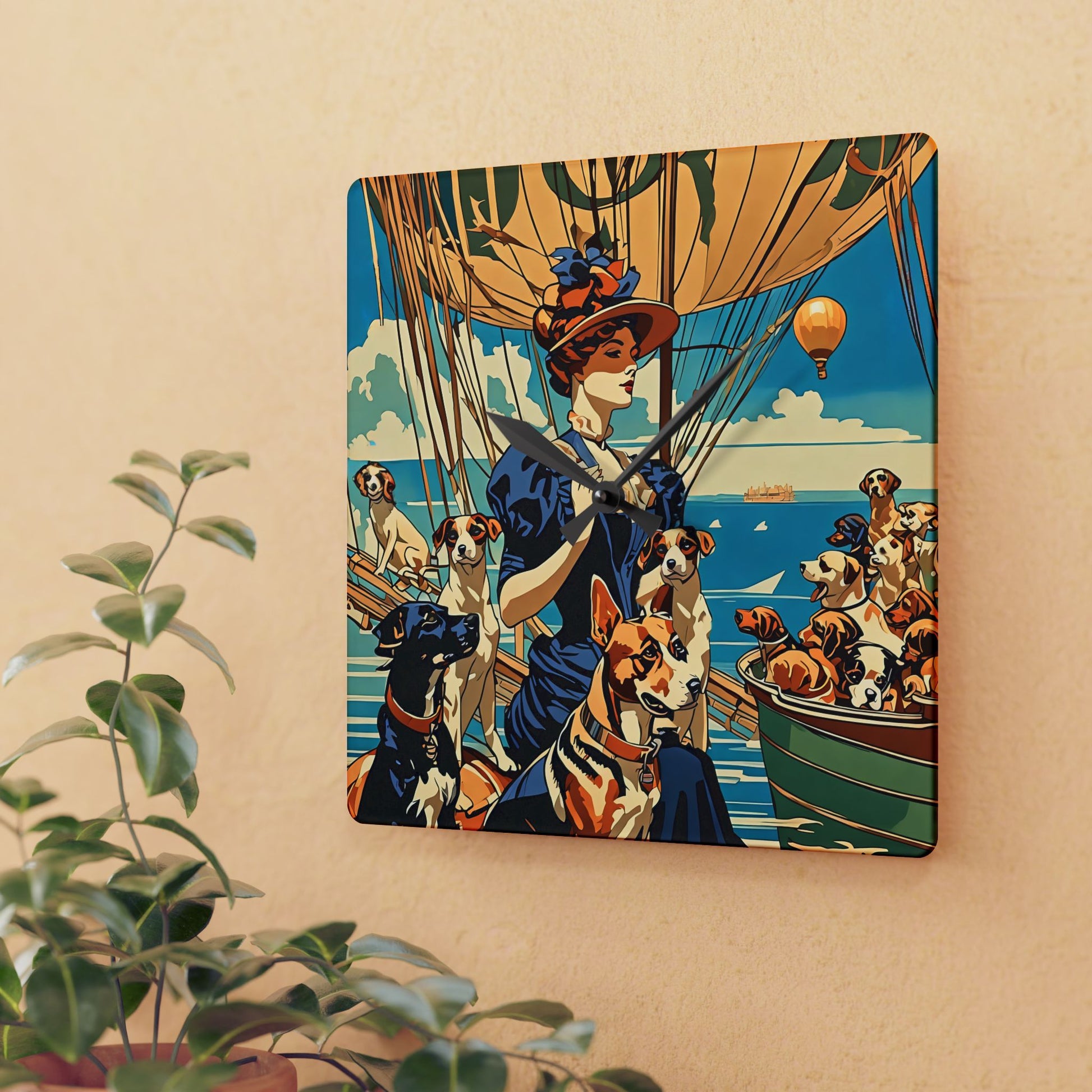 Acrylic Wall Clock - Sailing Away with My Dogs Illustration Art