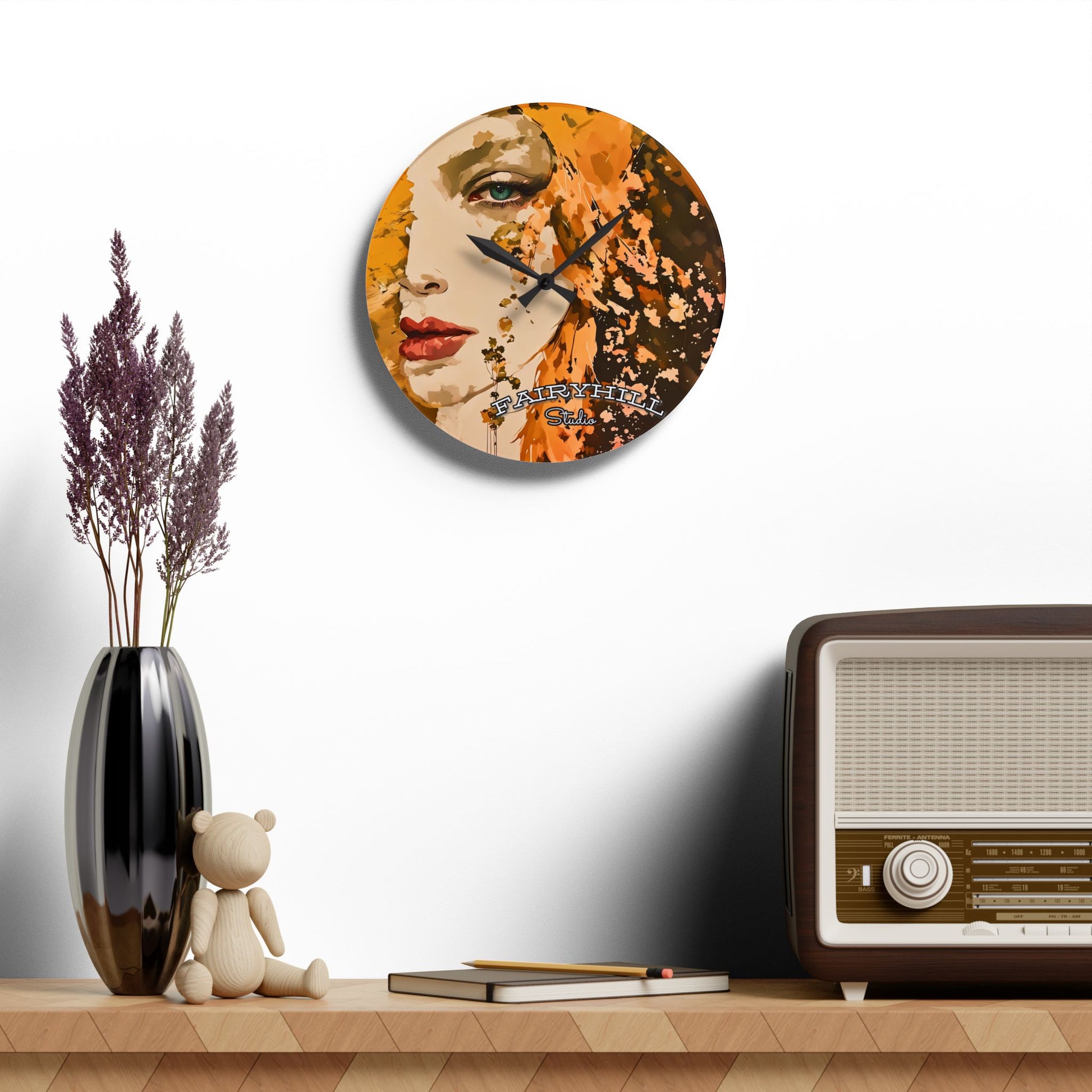 Wall Clock - Golden Dreams Art by Fairyhill Studio featuring Woman in Golden Tones