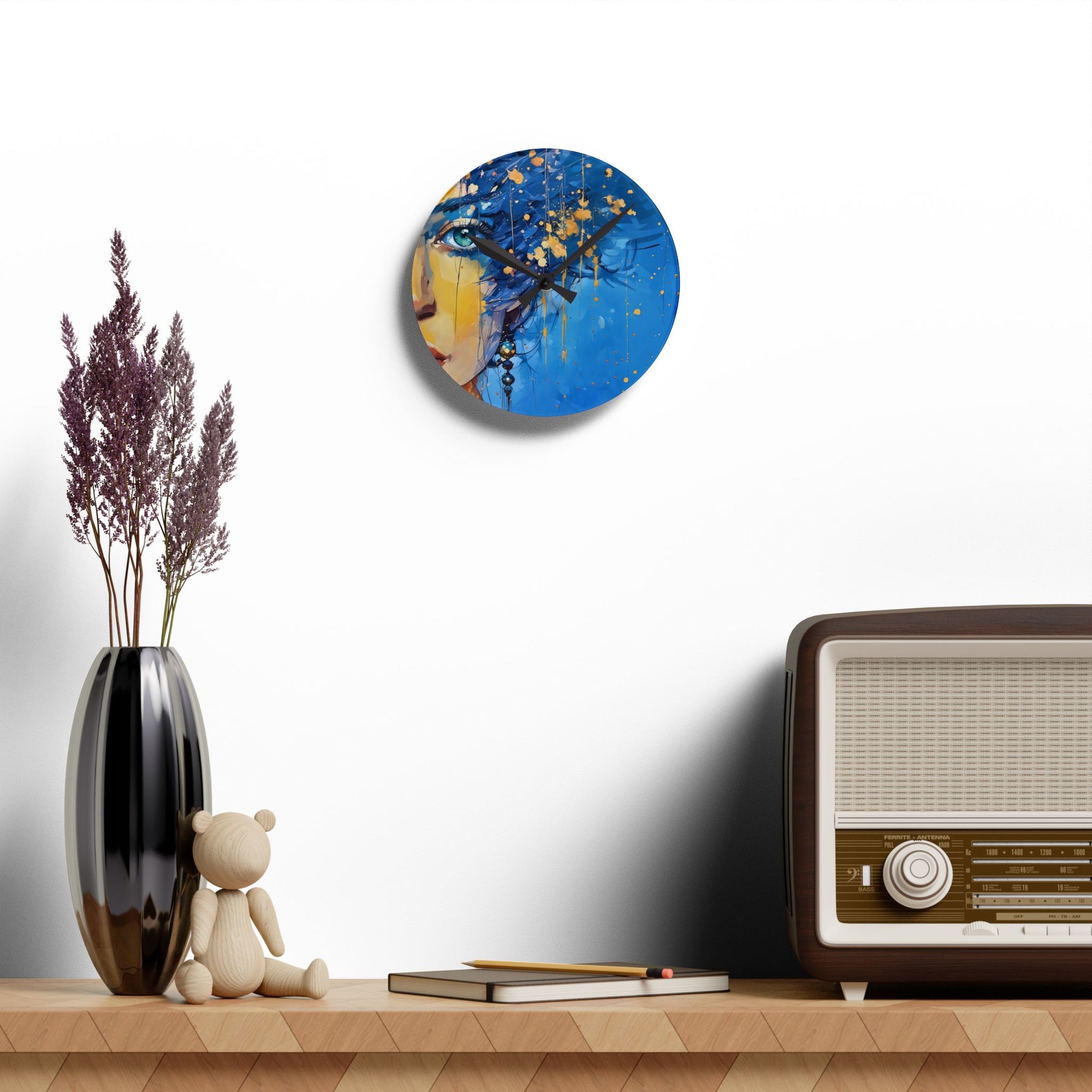 Acrylic Wall Clock Blue and Gold Abstract Woman Art
