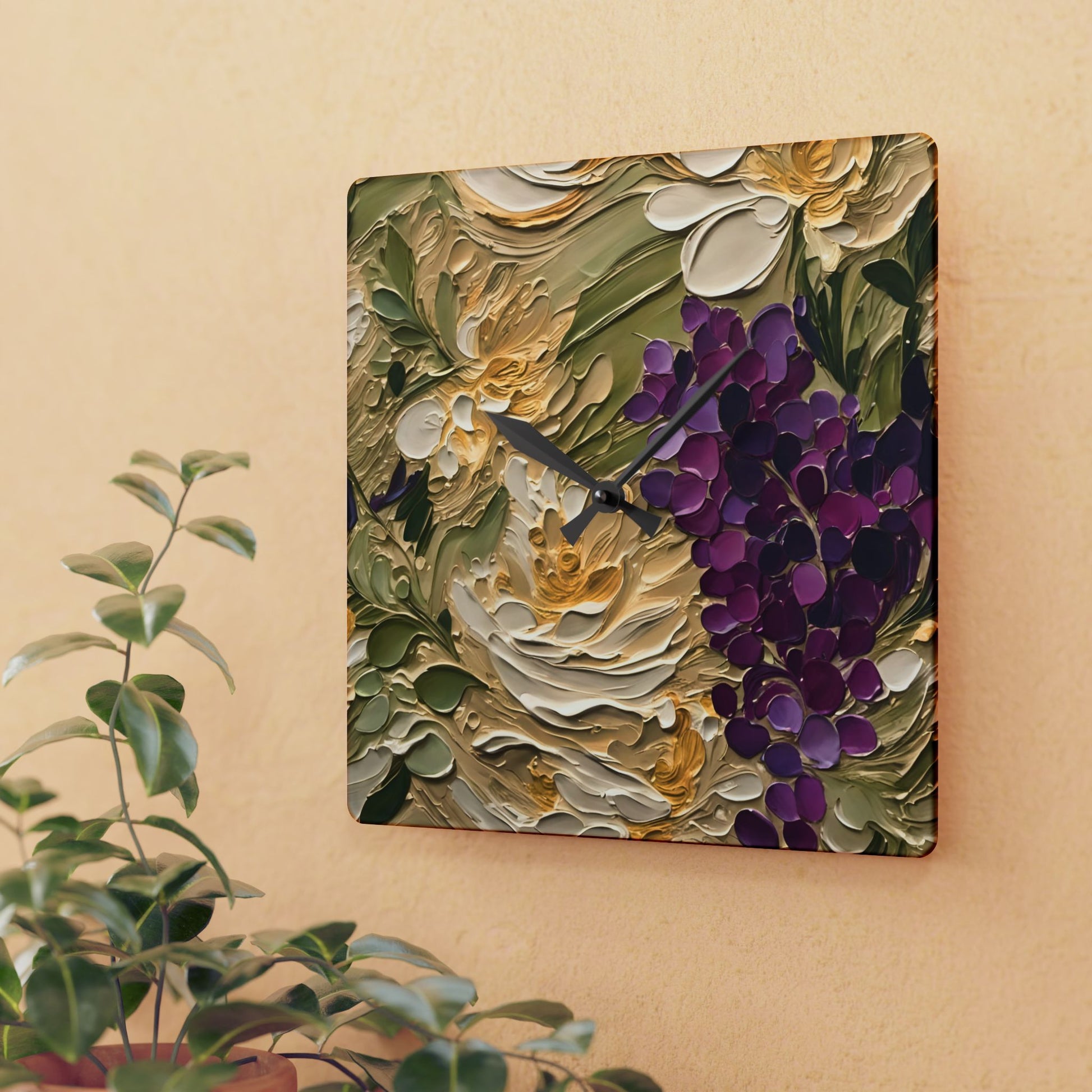 This Wall Clock features a lovely Purple grapes impasto art by Fairyhill Studio, adding a touch of elegance and style to any room. Perfect for grape lovers and art enthusiasts, this clock brings a vibrant and artistic vibe to your decor. Ideal for kitchen or dining areas, this clock is relevant for wine lovers, foodies, and those who appreciate unique art pieces. Great for gifting on birthdays, housewarmings, or as a holiday present for Christmas or Thanksgiving.