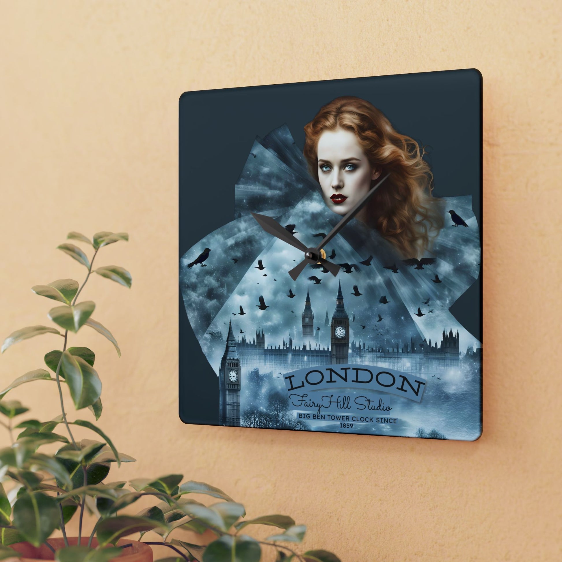 London Skyline Acrylic Wall Clock - Red Head Girl Design