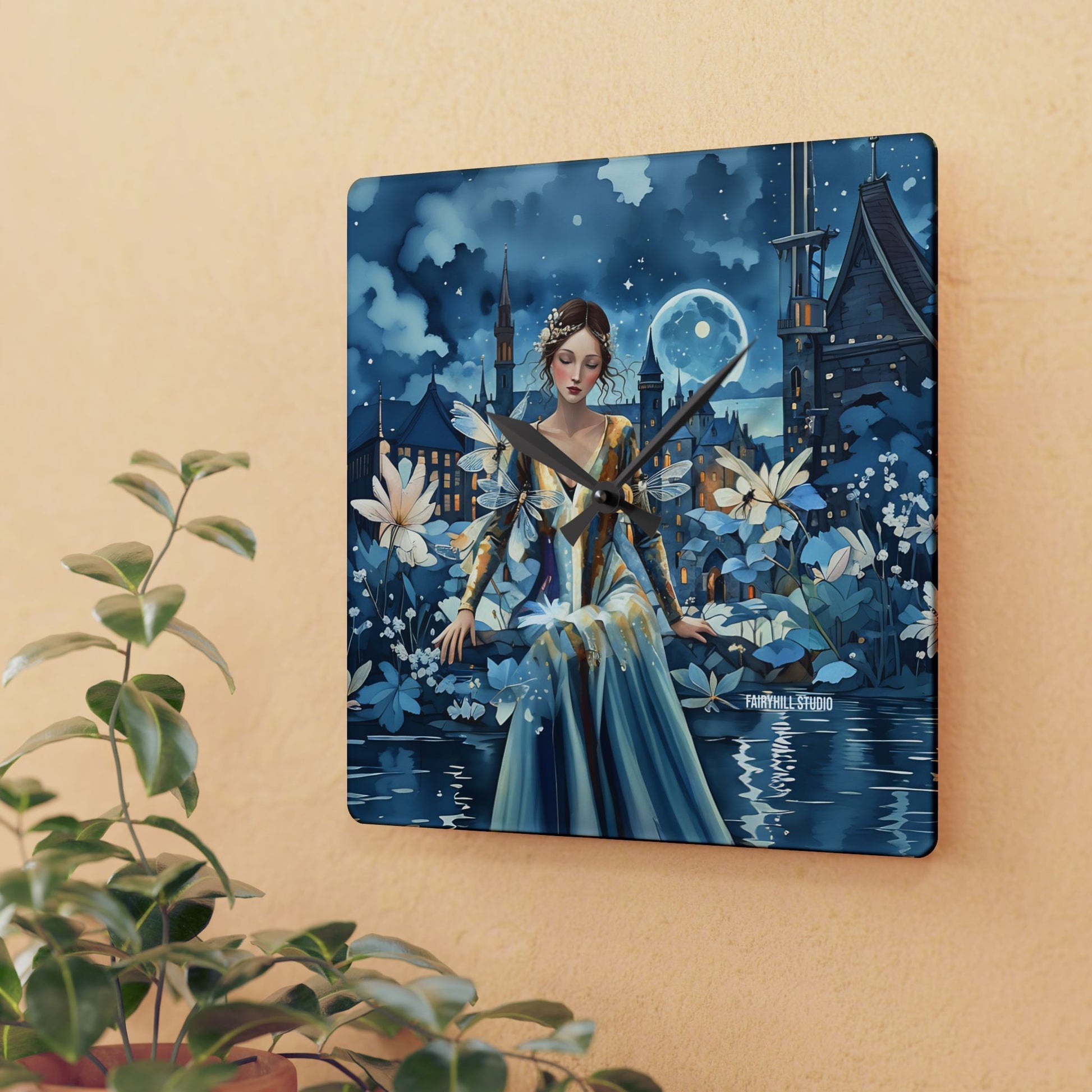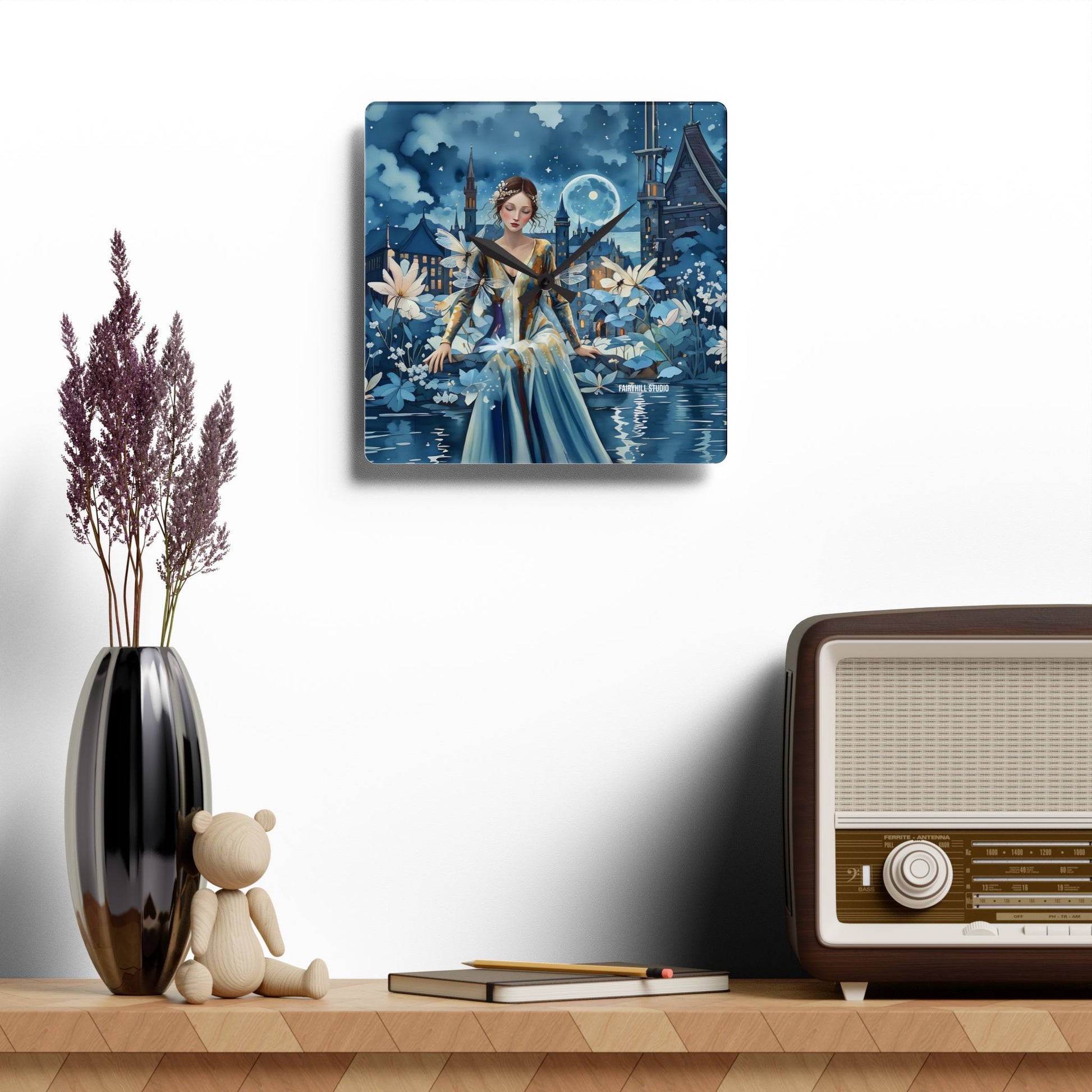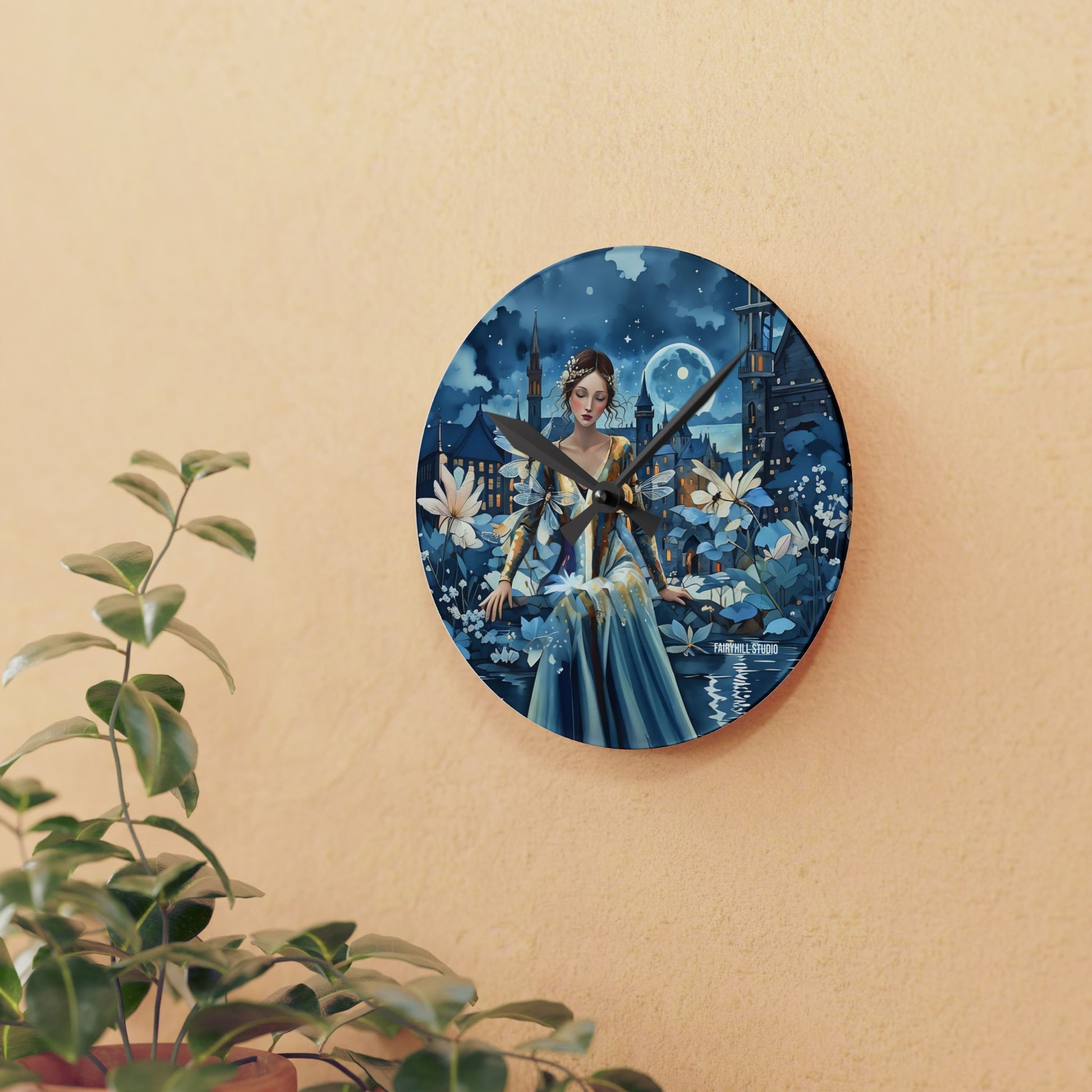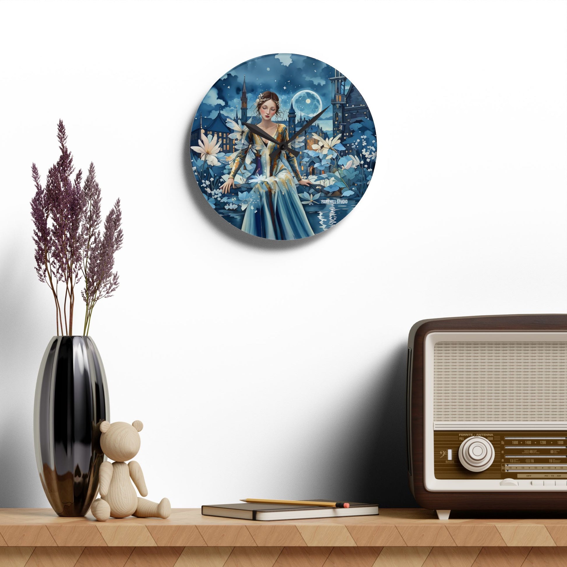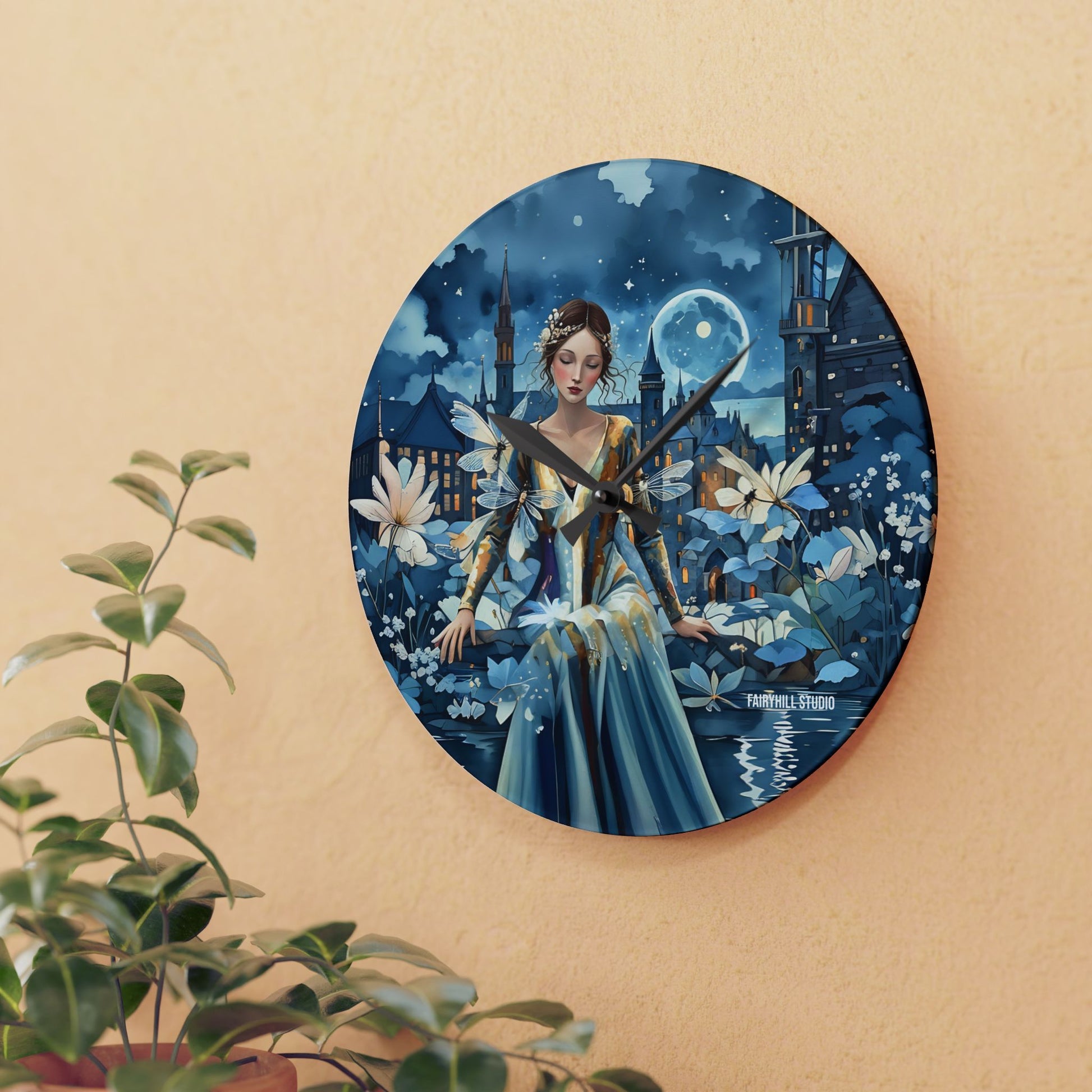 Acrylic Wall Clock Beauty in Blue with dragonflies /Art