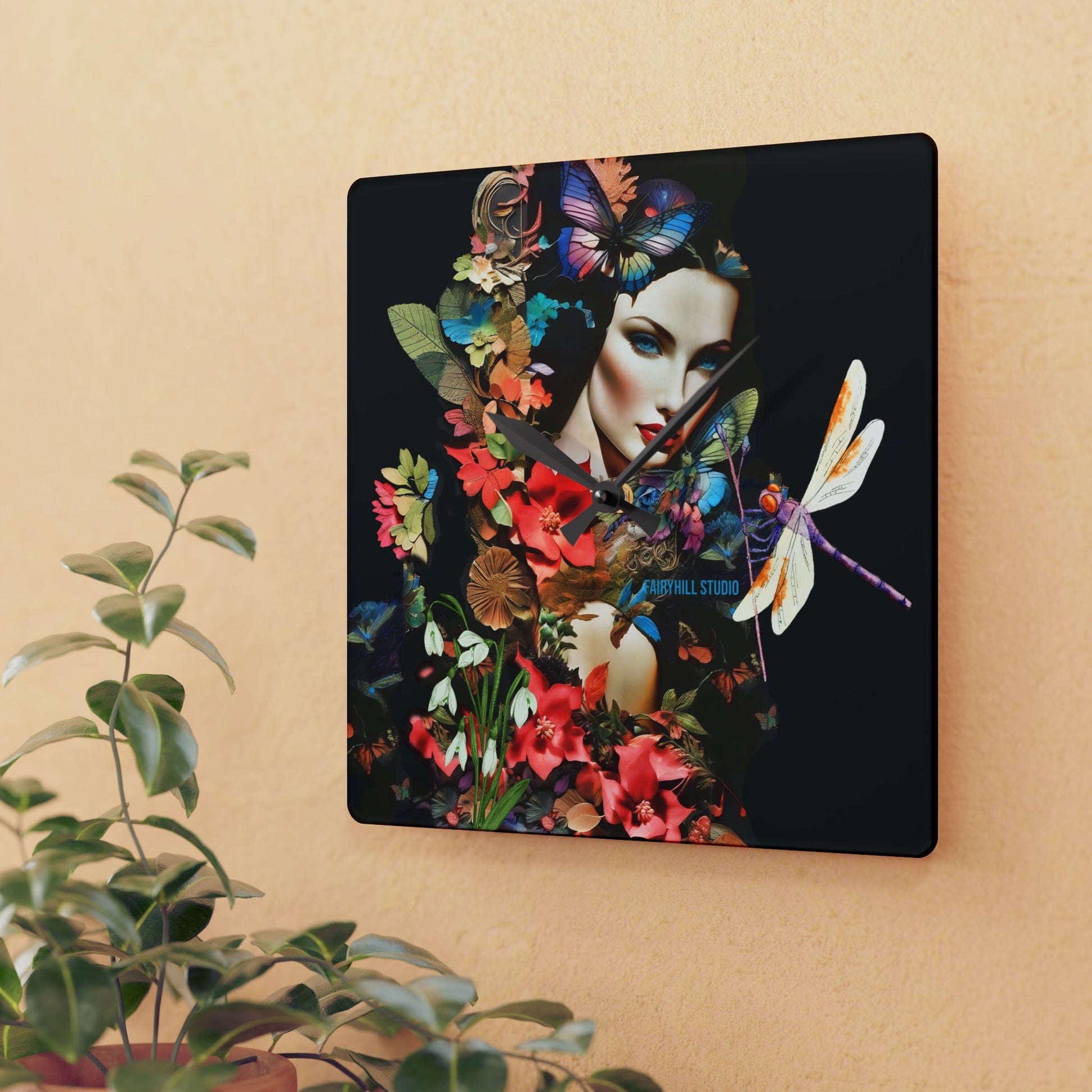 Acrylic Wall Clock -Lady in Nature with a Dragonfly /Art