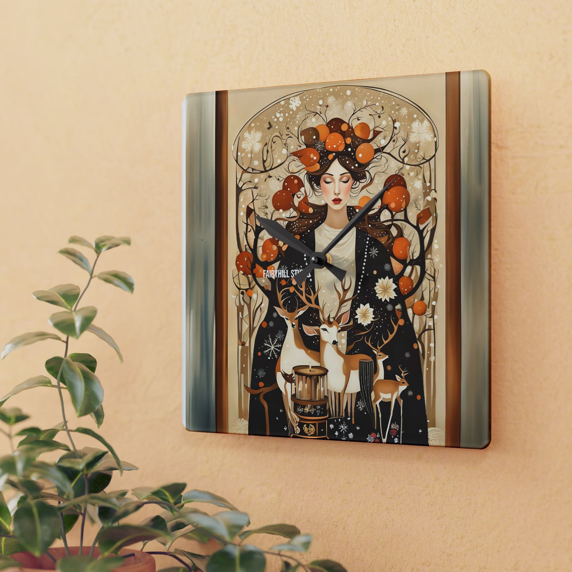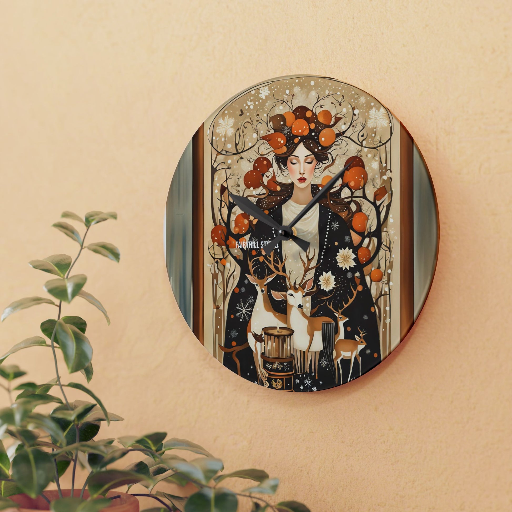 Acrylic Wall Clock -Welcoming Fall with Deers
