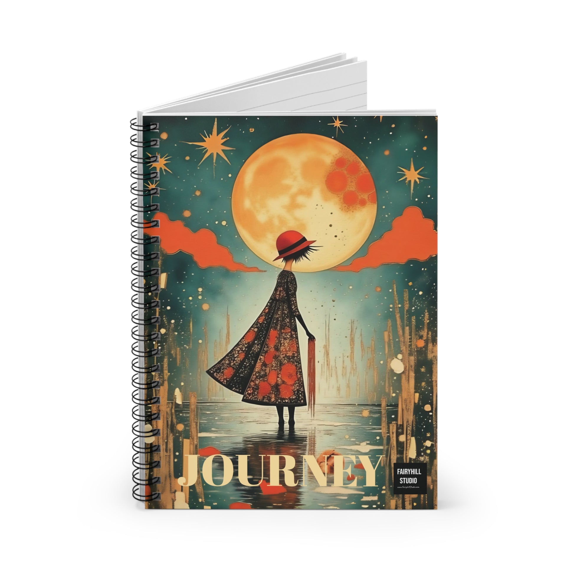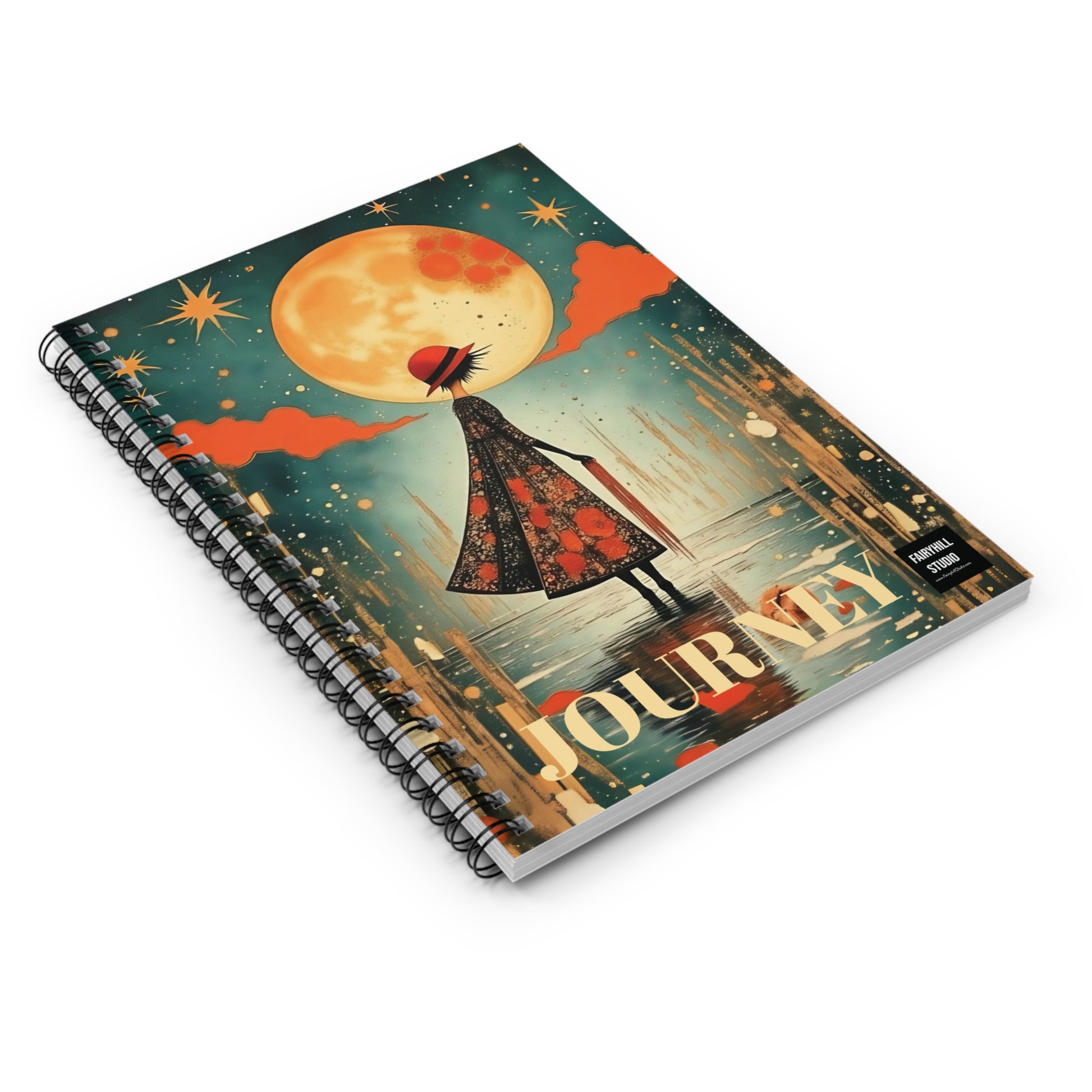 A Spiral Notebook journal featuring Autumn Rain   a with an umbrellaby Fairyhill studio, perfect for writing down thoughts and ideas. The ruled line pages provide structure while the metal spiral binding adds a fancy touch. This notebook is ideal for creative individuals looking to add a touch of whimsy to their everyday life. Perfect for students, artists, and music lovers. Great for back to school, birthdays, or as a thoughtful gift for any occasion.