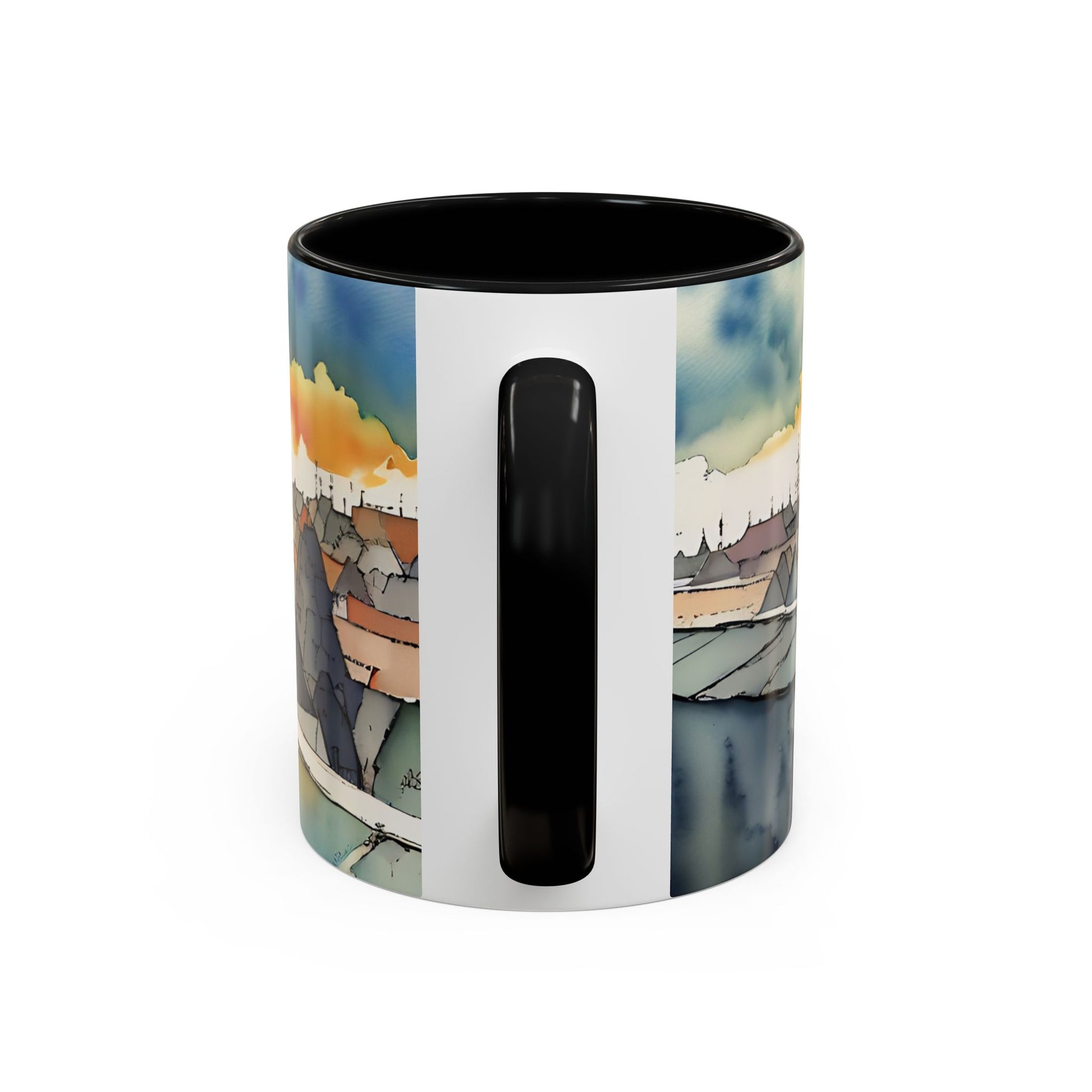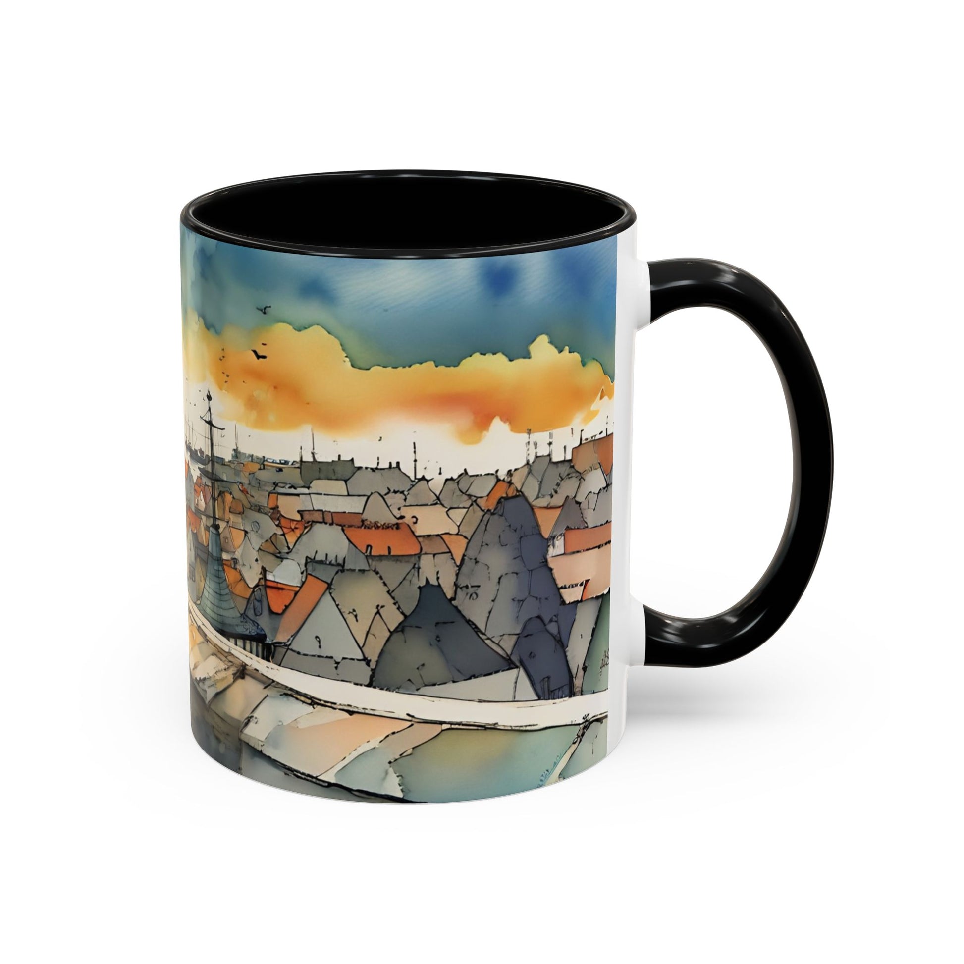 Black cat on a roof top Art-Themed Coffee Mug - 11 & 15oz Accent Mug for Musroom Fsiry Lovers