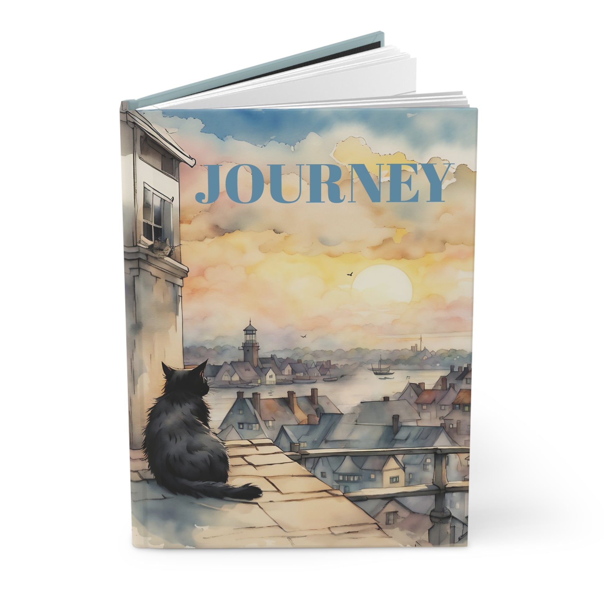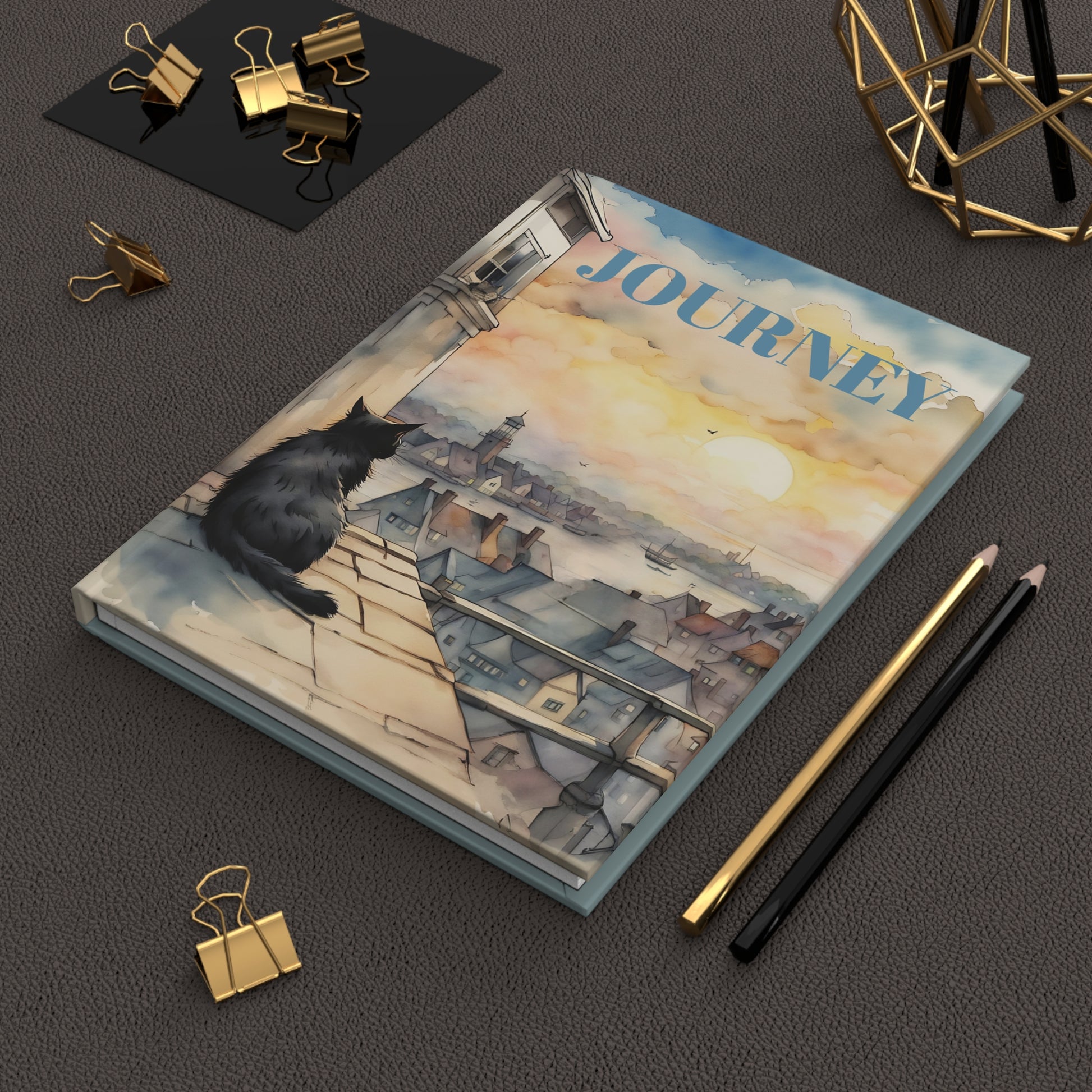 Black cat on a roof top hard cover Journal hard Cover ,Notebook gift art Matte