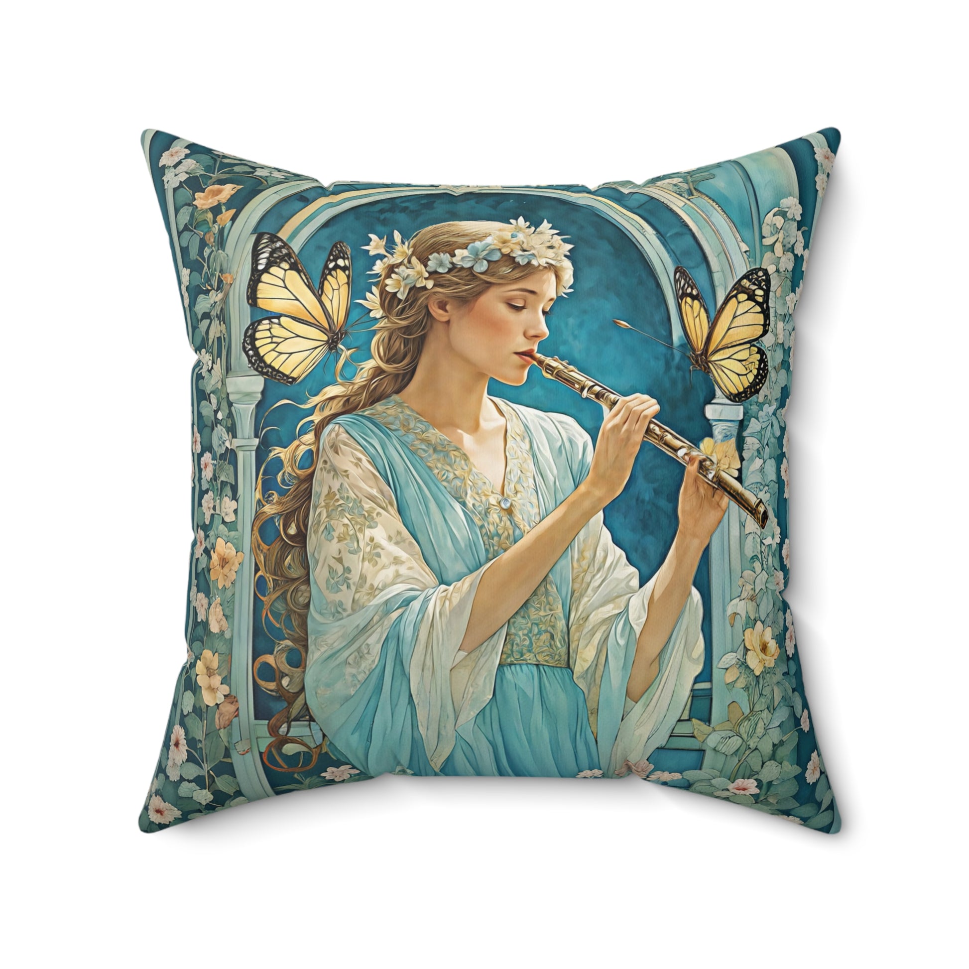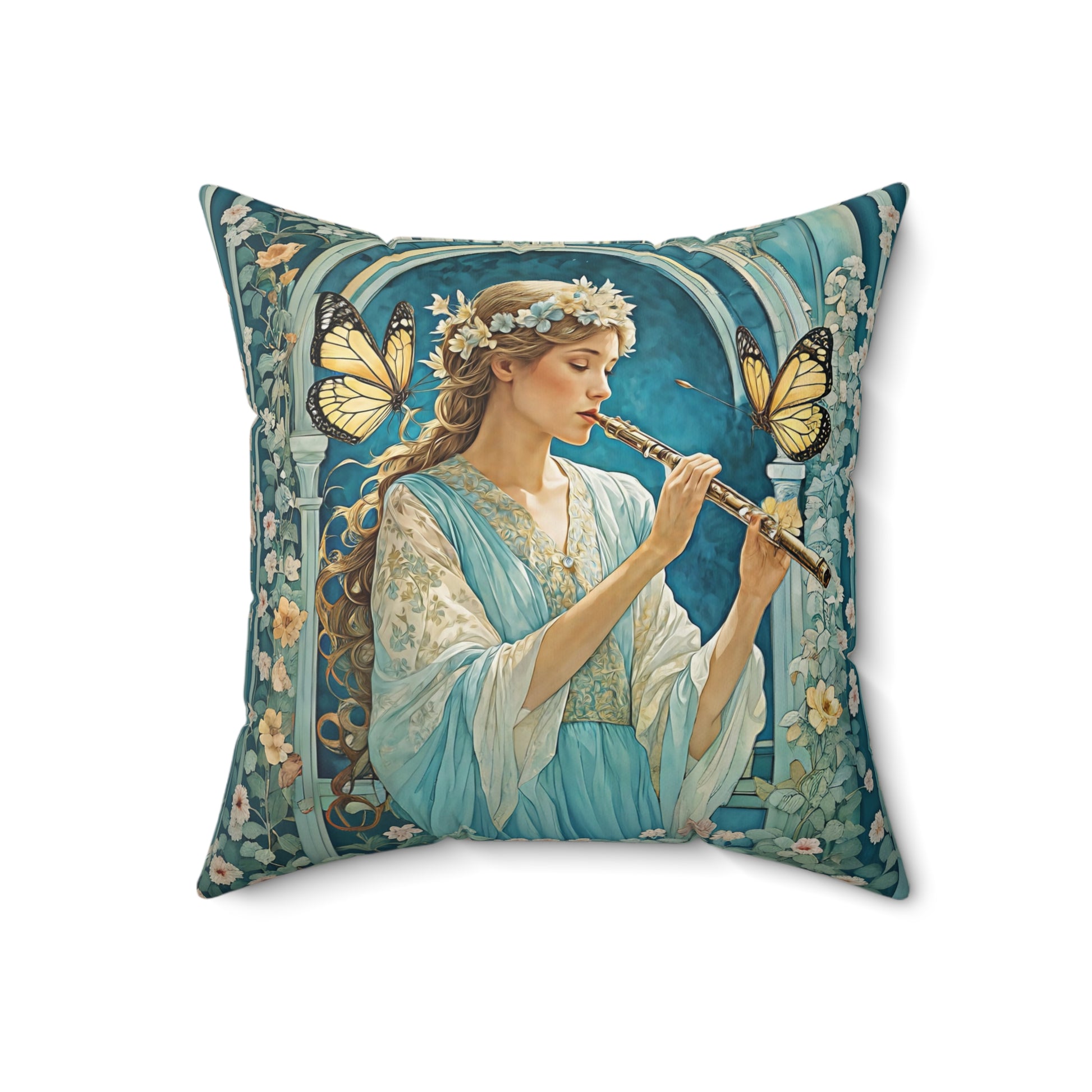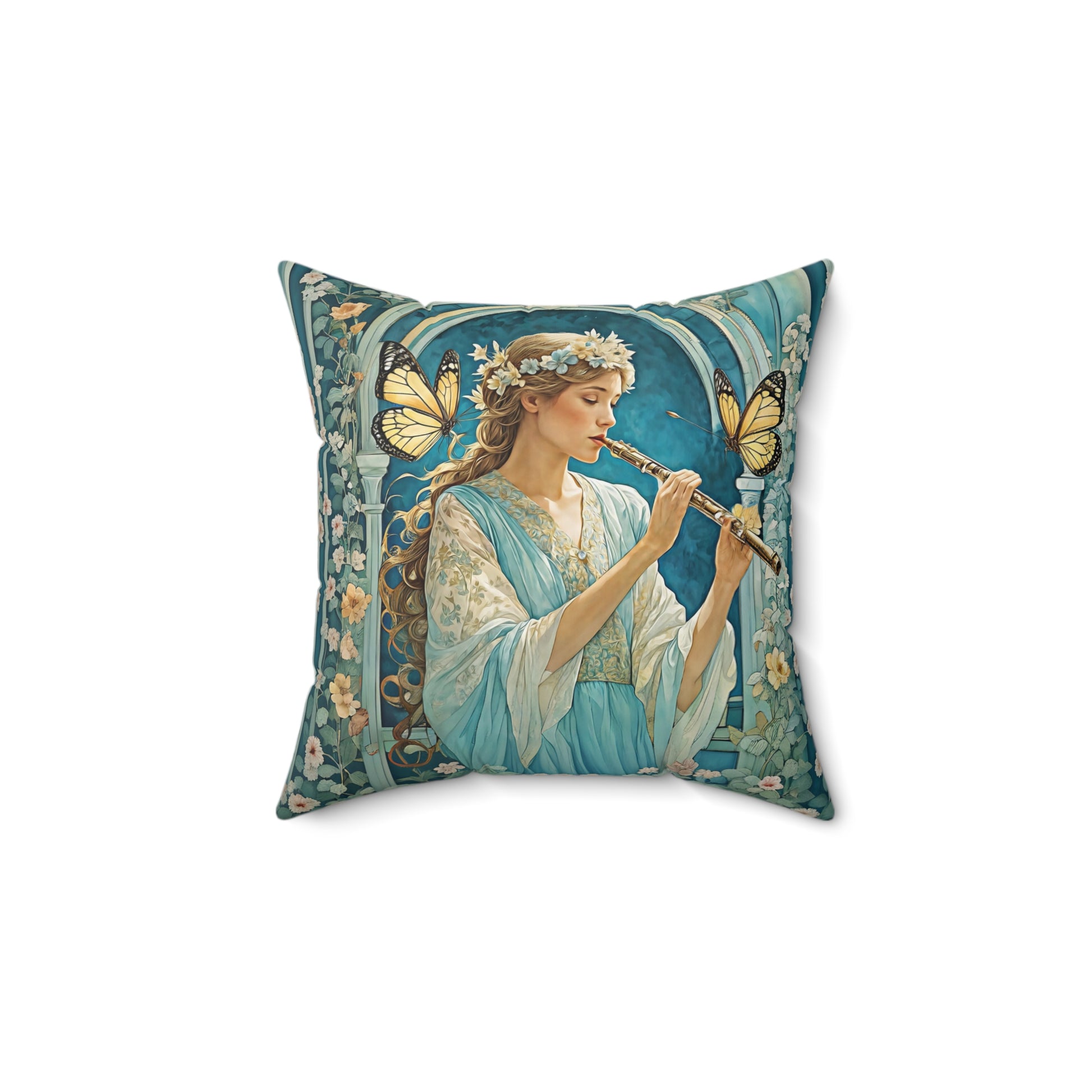 Butterfly / Flute player Square Pillow - by Fairyhill Studio