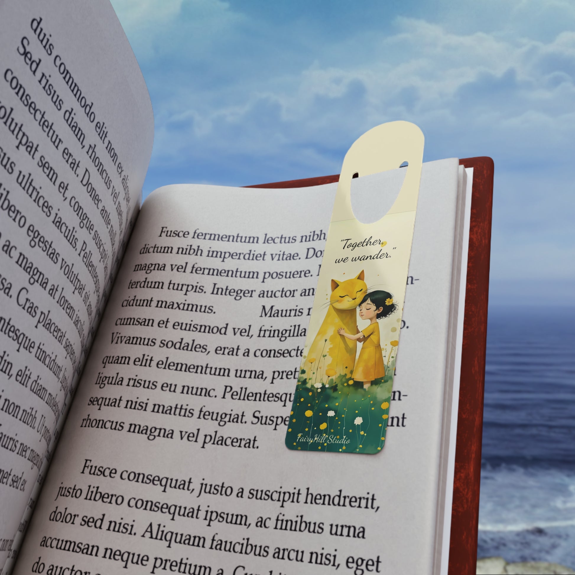 Cat & Girl Illustration Bookmark, Cute Metal Bookmark, Gift for Cat Lovers, Reading Accessory, Book Lover Gift, Unique Gift Idea