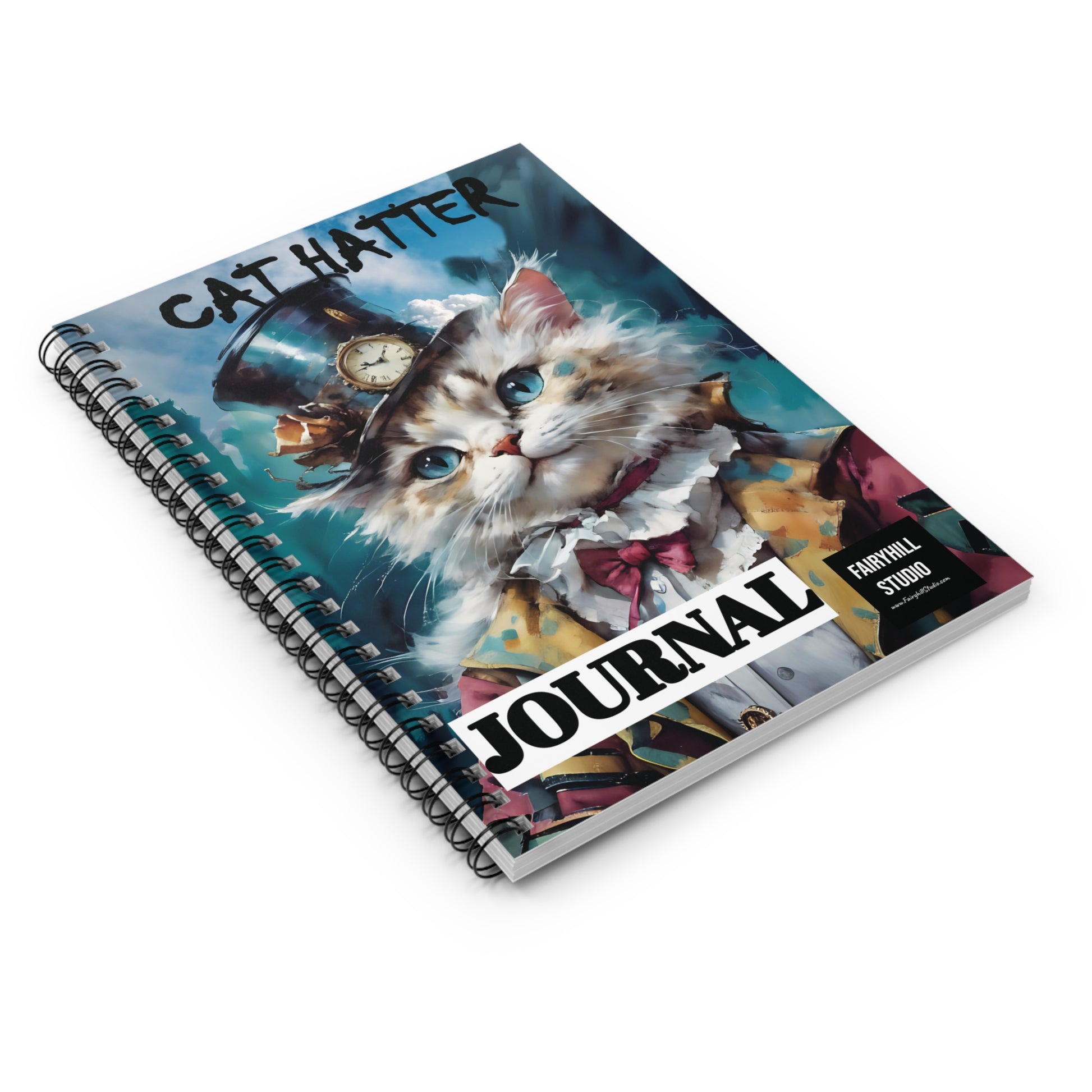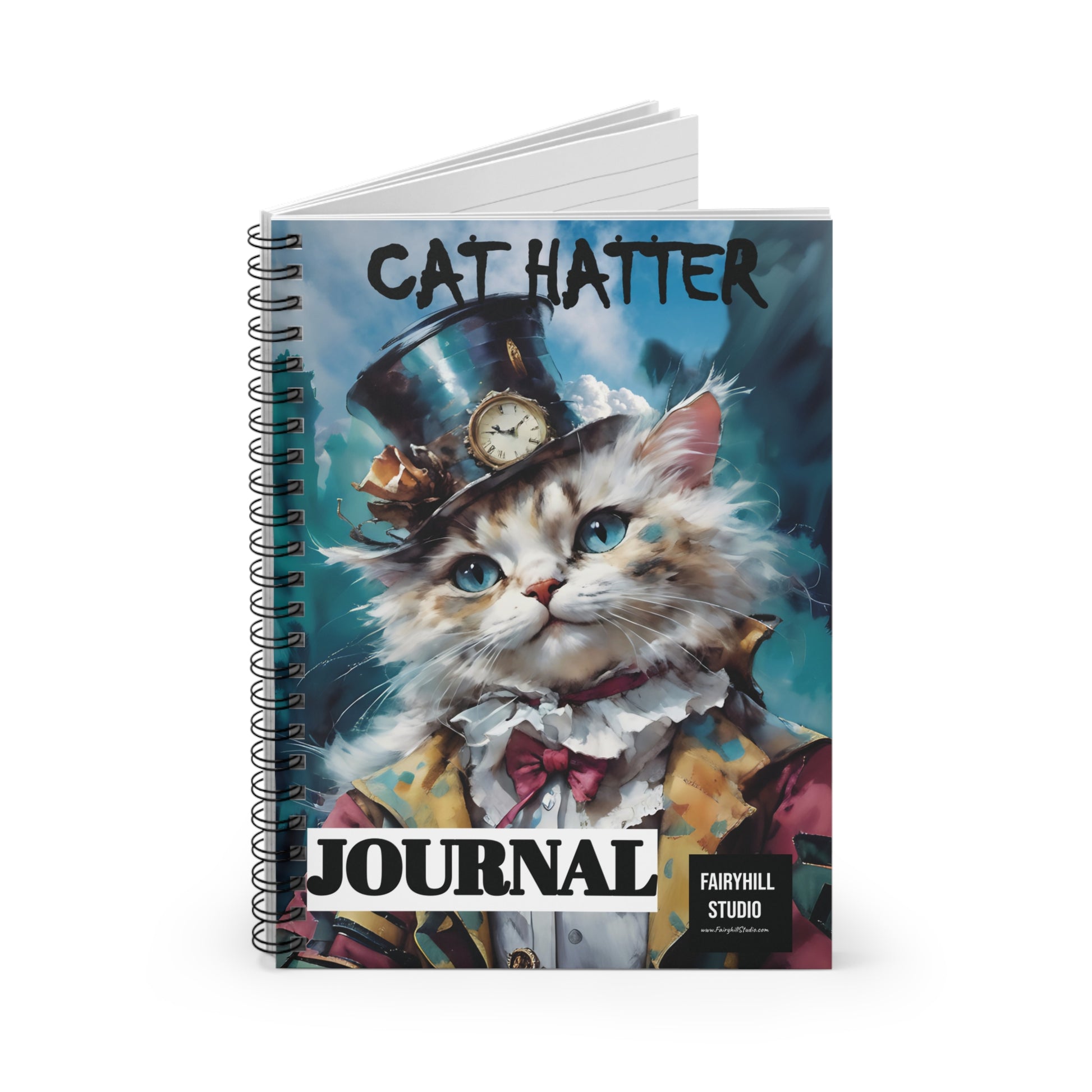 Cat Hatter journal, Spiral Notebook journal , Ruled Line,
