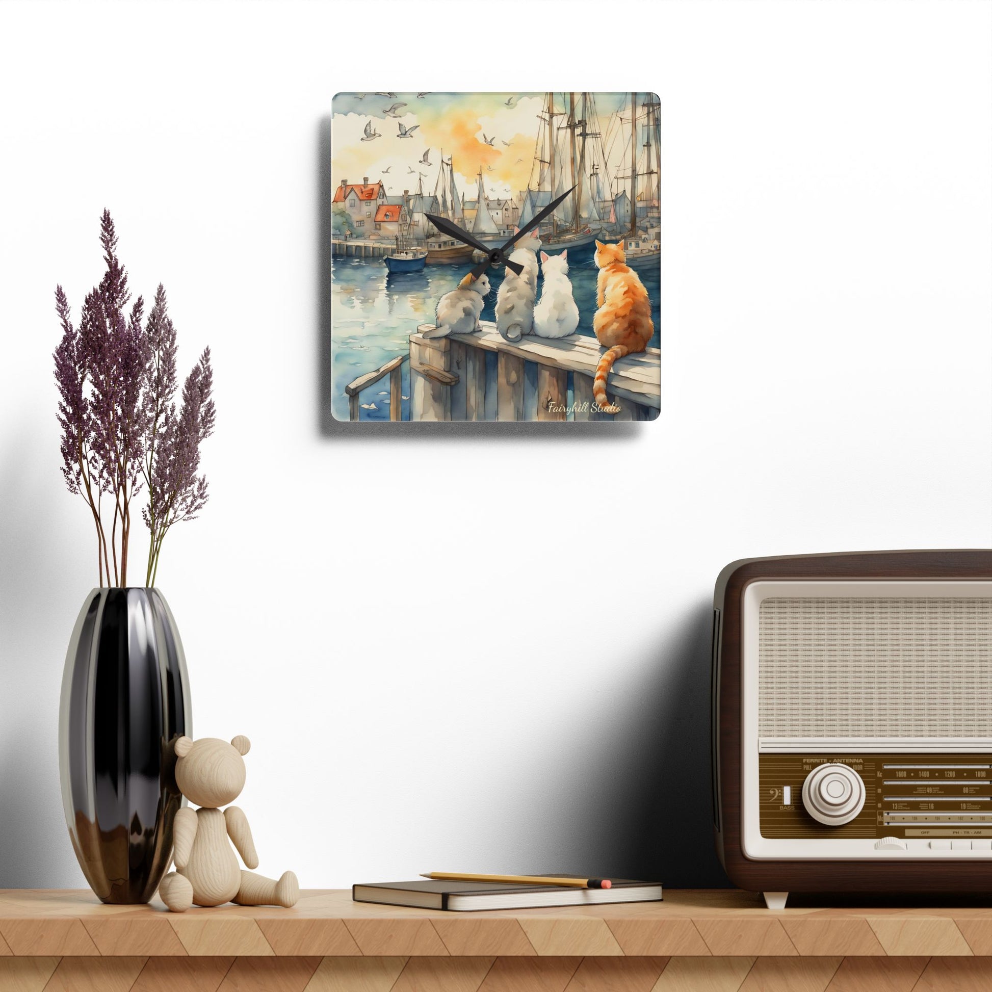 Cats And The City - by Fairyhill Studio Wall clock Gift Acrylic Wall Clock