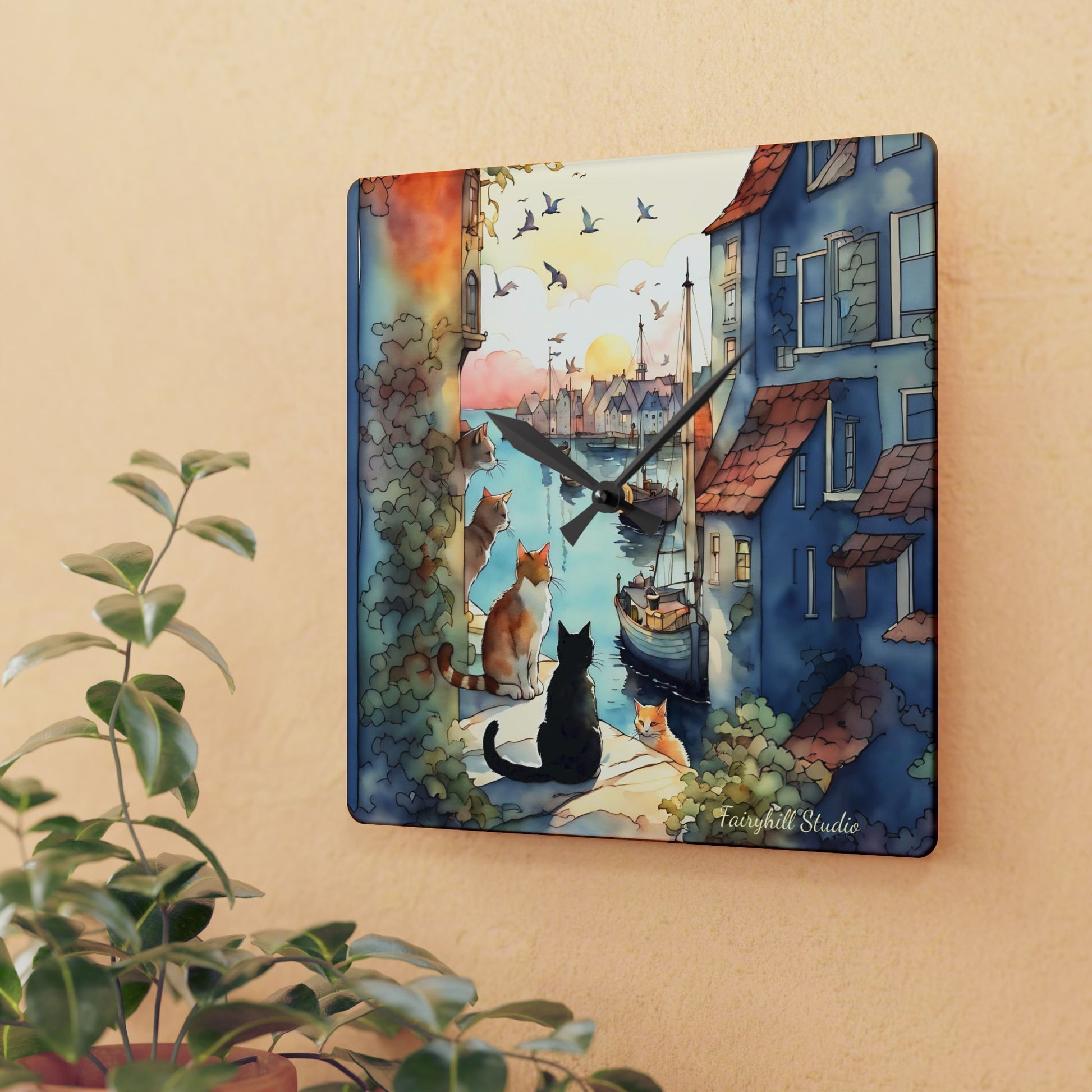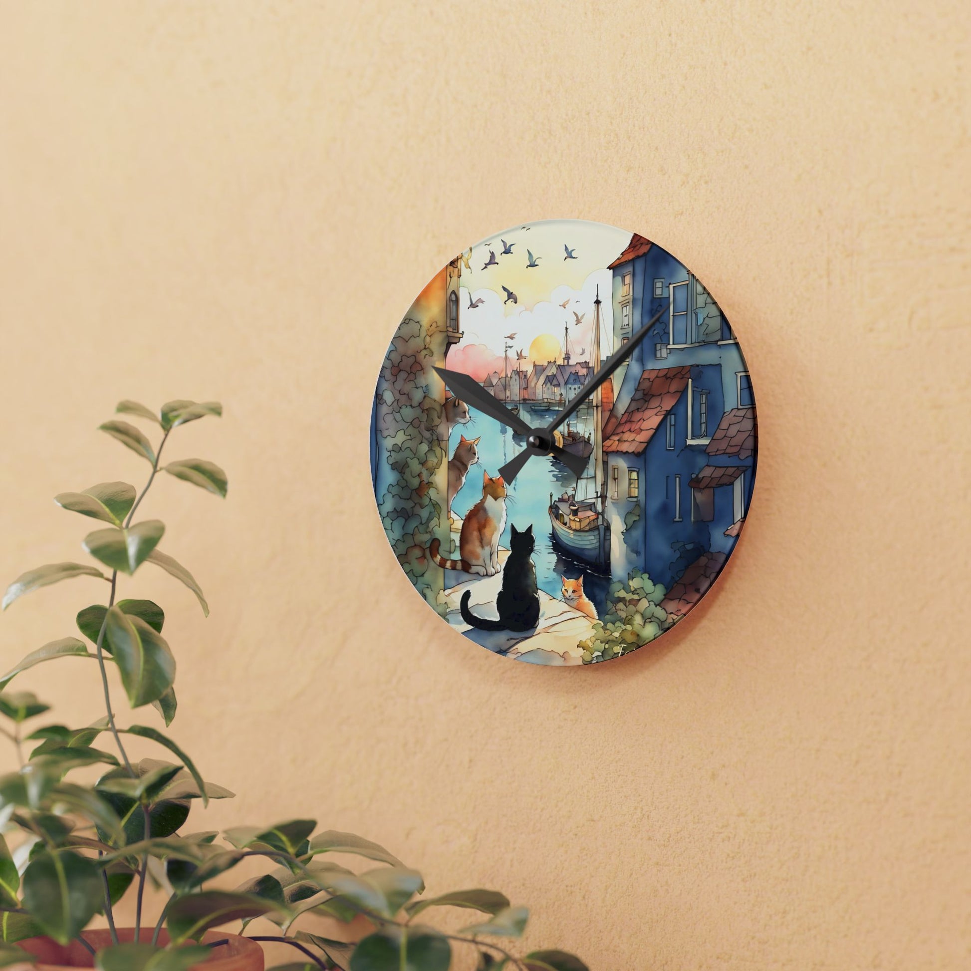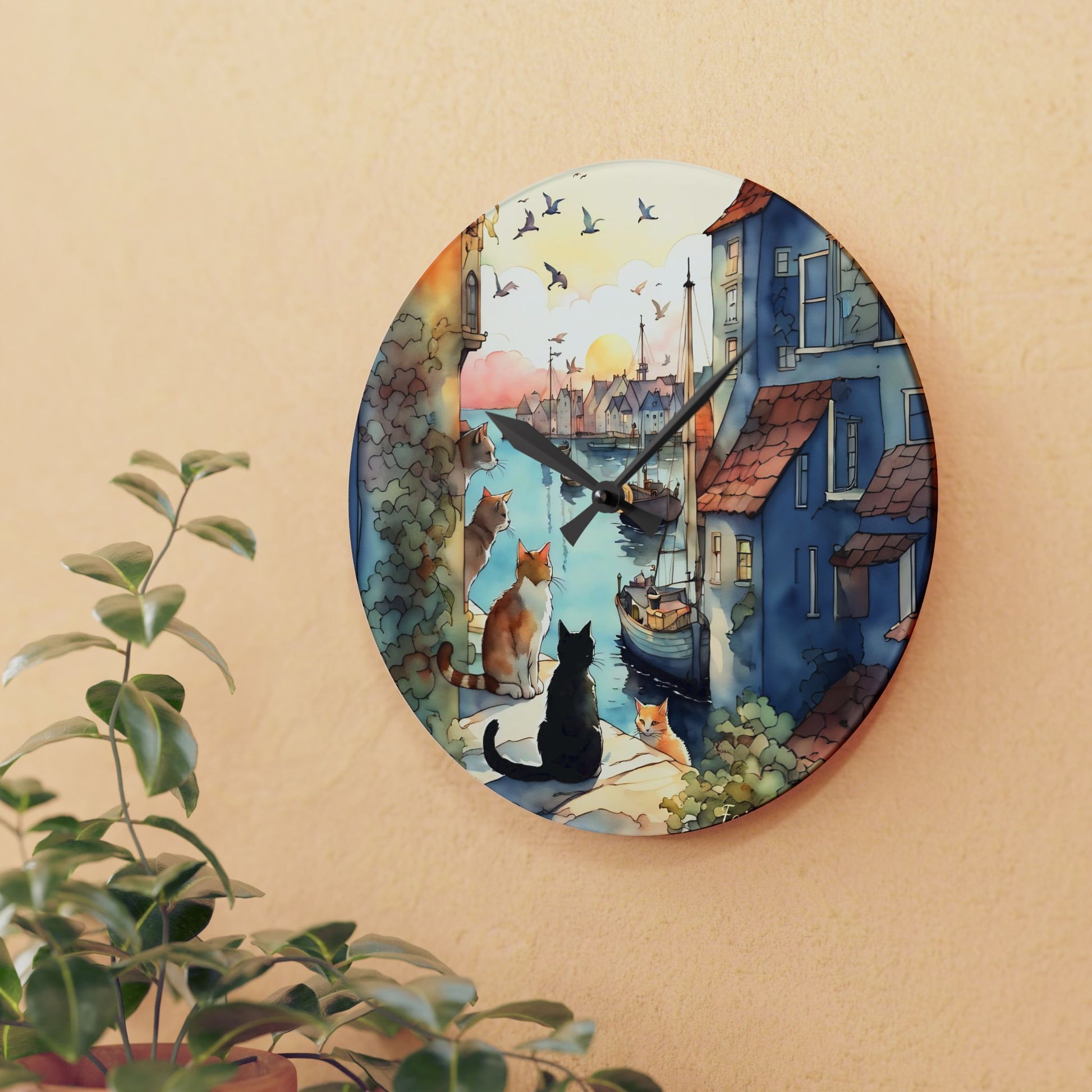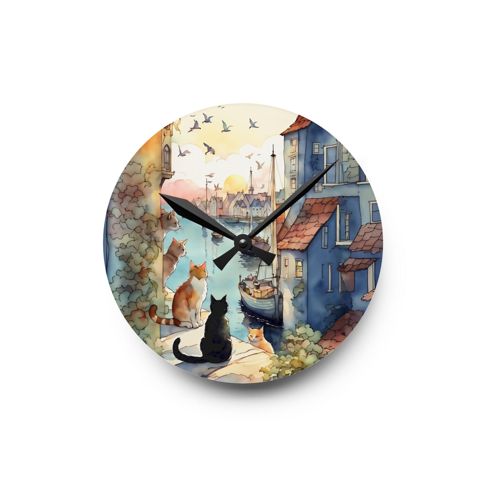 Cats by the Sea - by Fairyhill Studio Wall clock Gift Acrylic Wall Clock