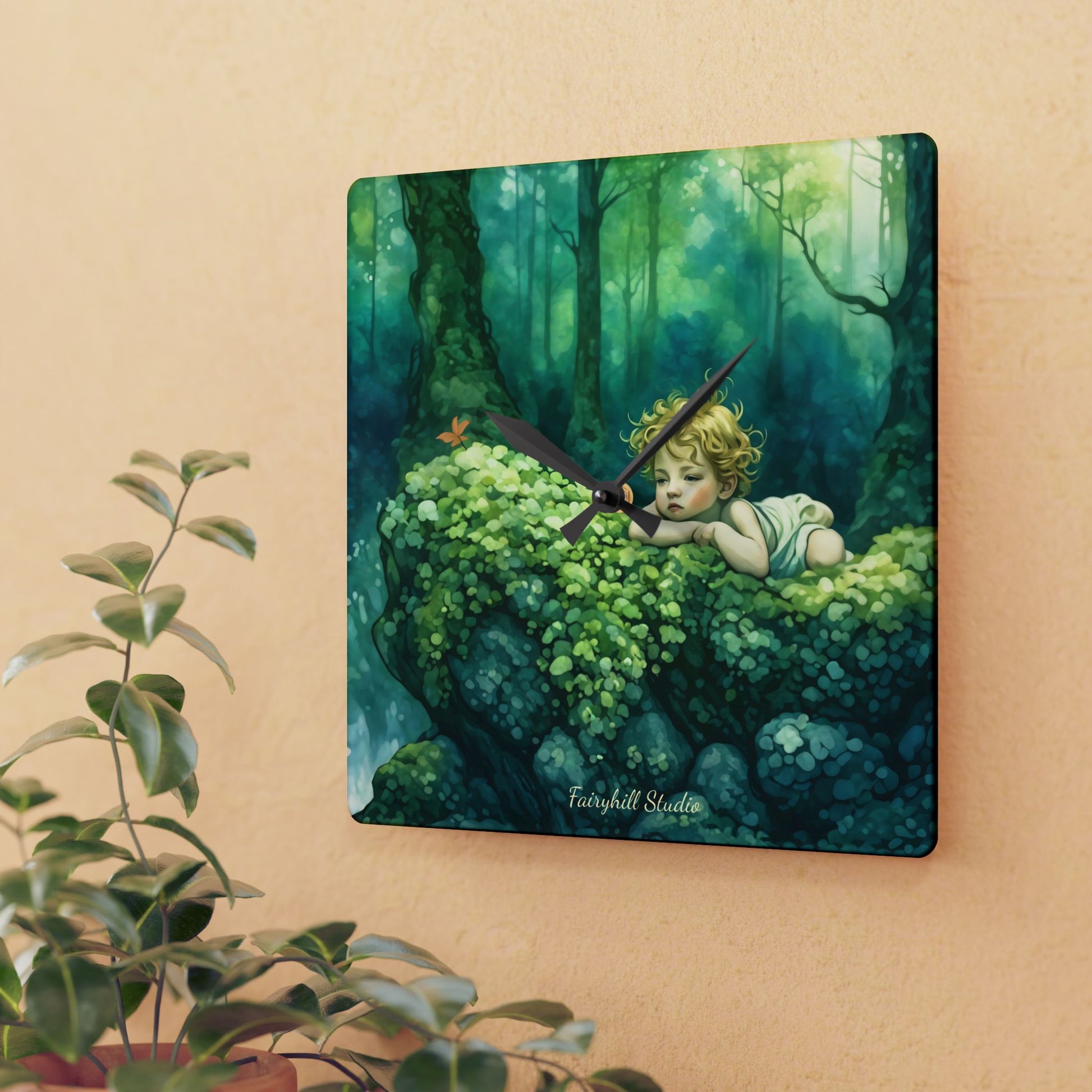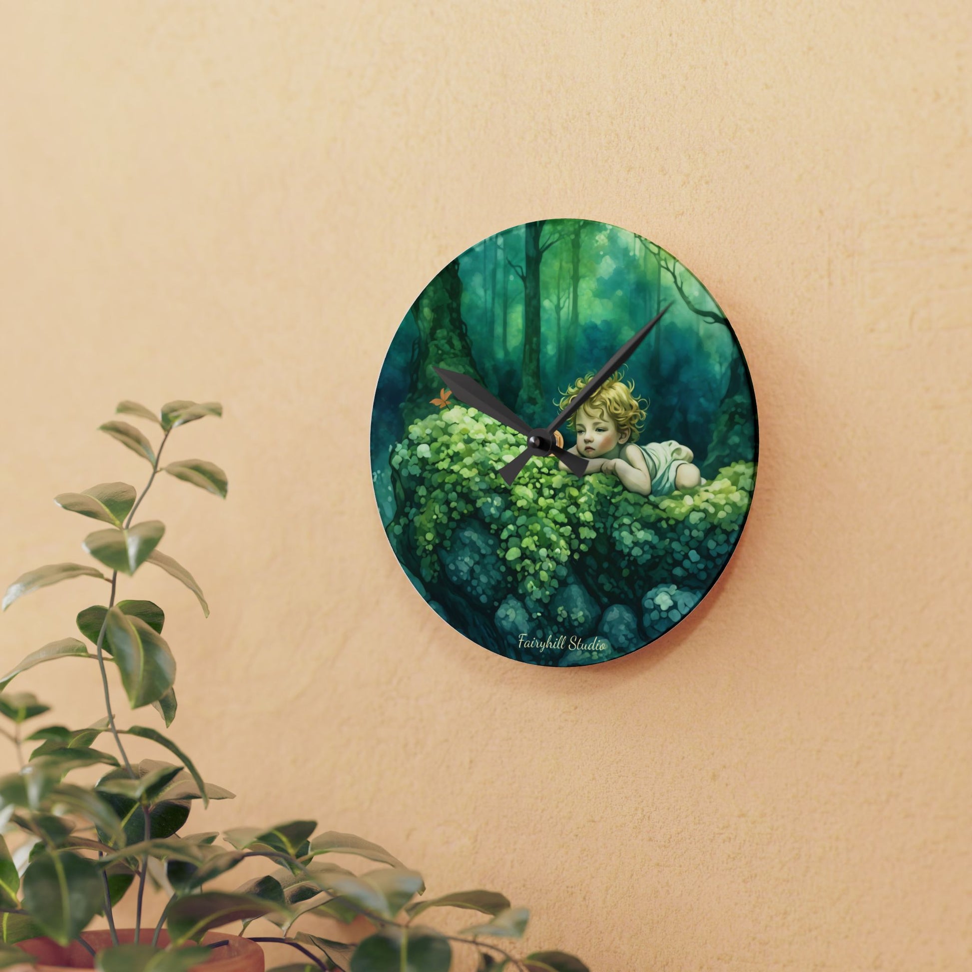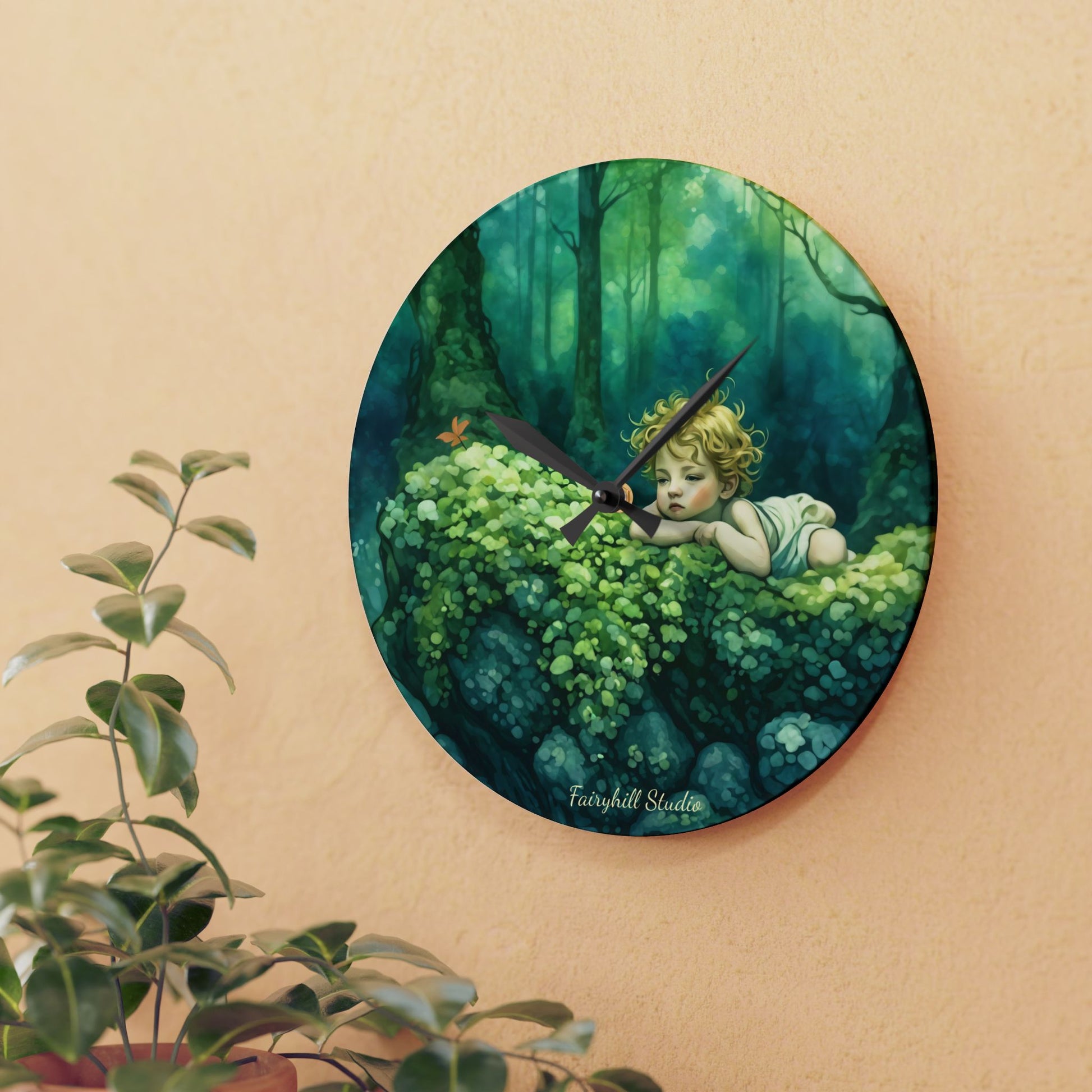 Cherub in the woods Wall clock Gift Acrylic Wall Clock