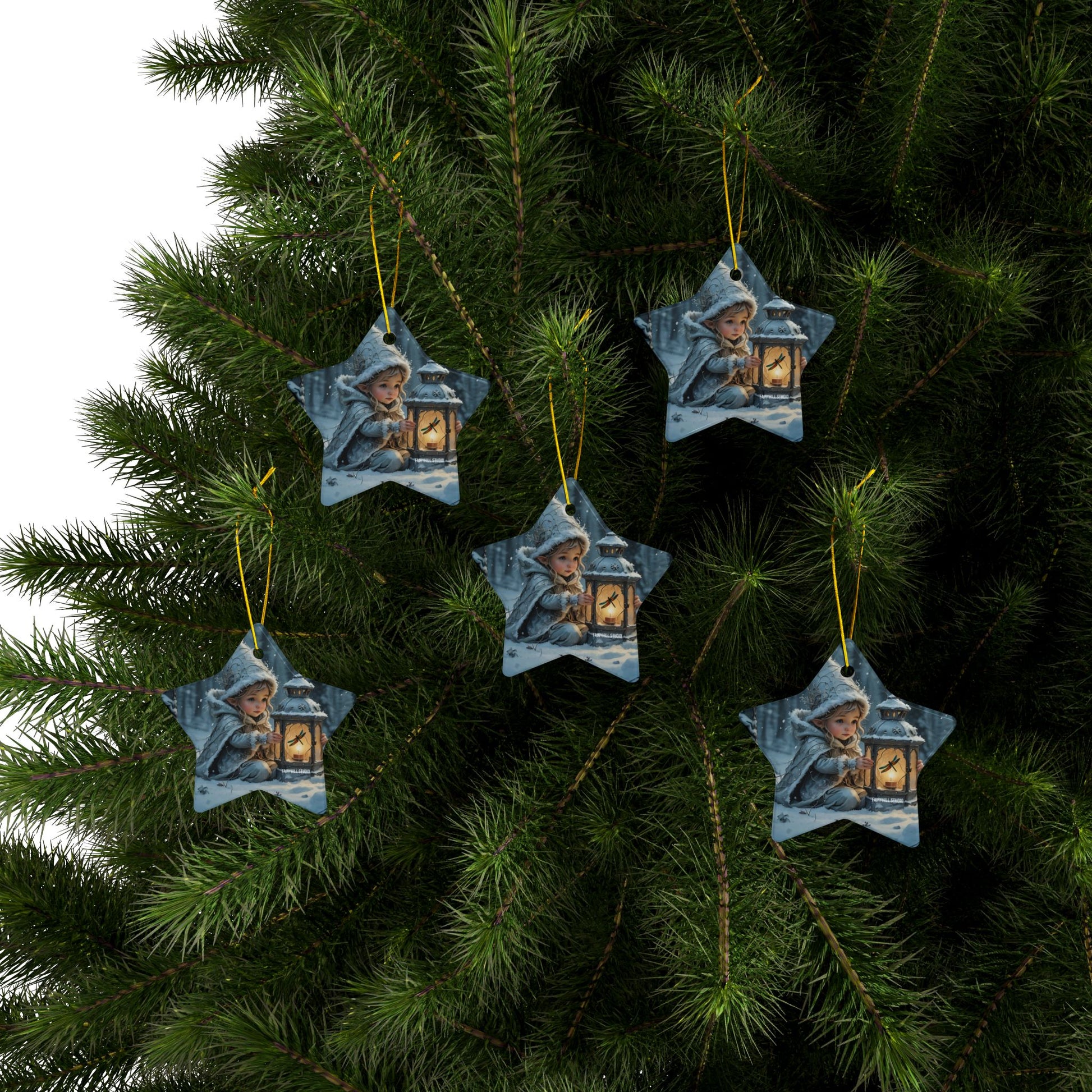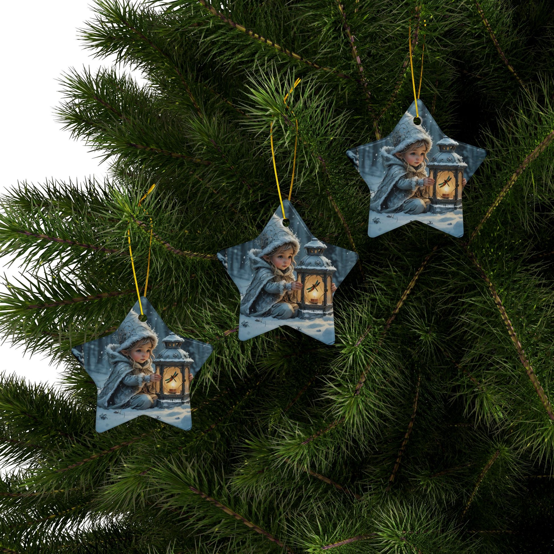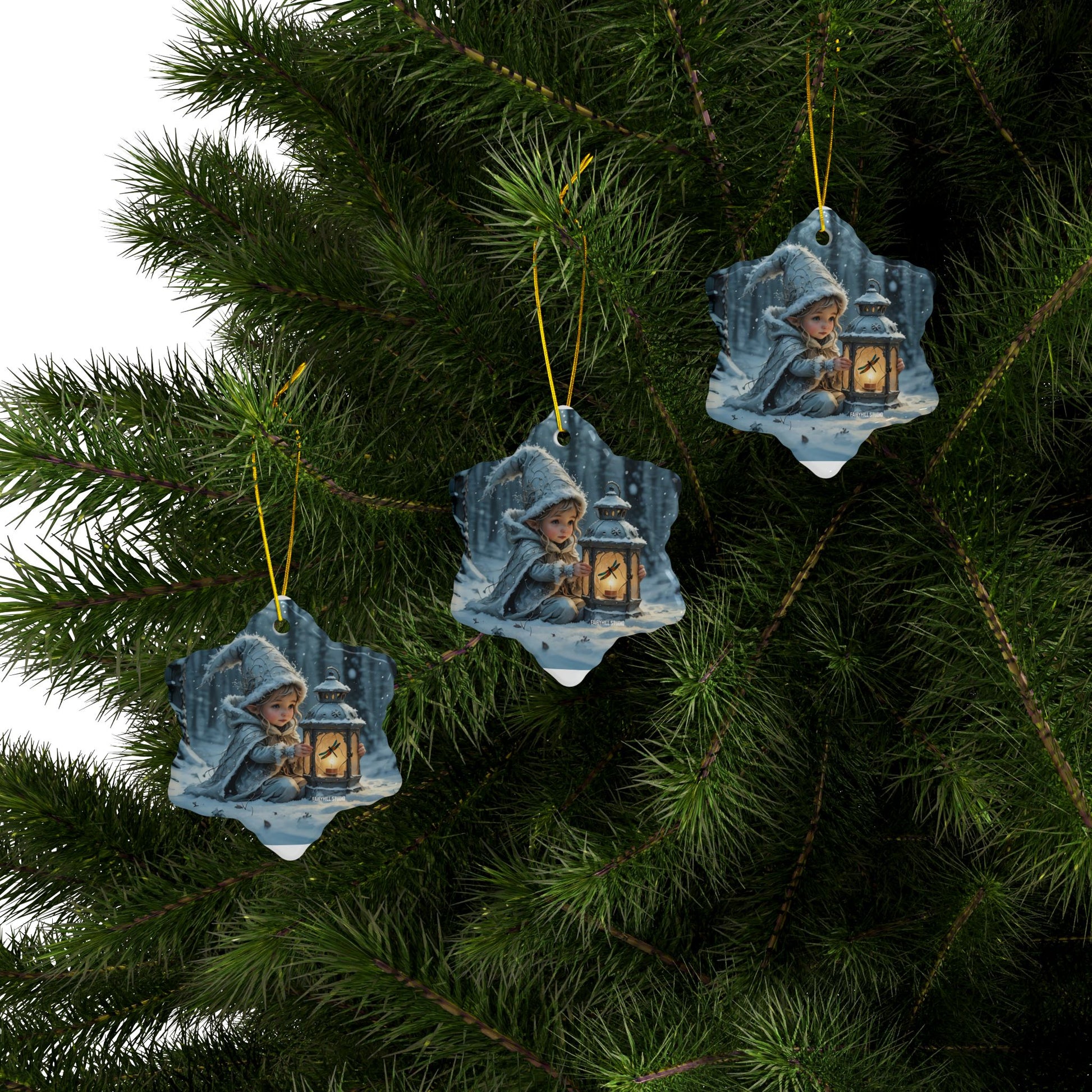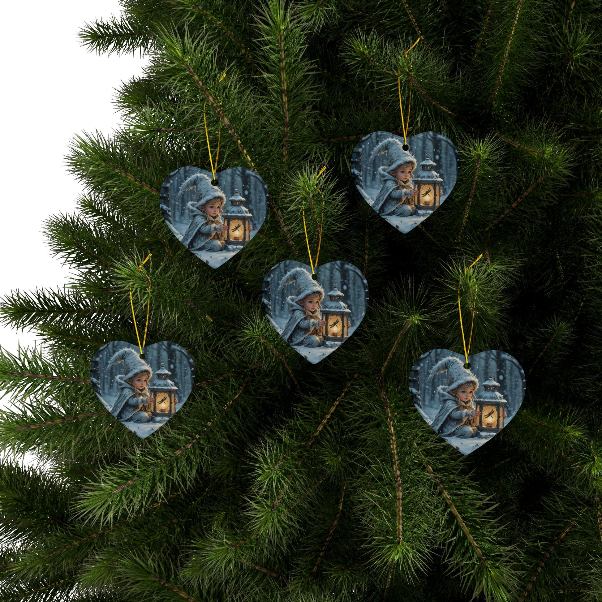 Add a touch of magic to your holiday decor with these ceramic ornaments featuring a Lovely Elf with Dragonfly lantern in winter snow. Perfect for those who love whimsical and enchanting decorations, these ornaments can be displayed on your Christmas tree or around the house. Ideal for the holiday season, Christmas celebrations, and winter-themed decor.