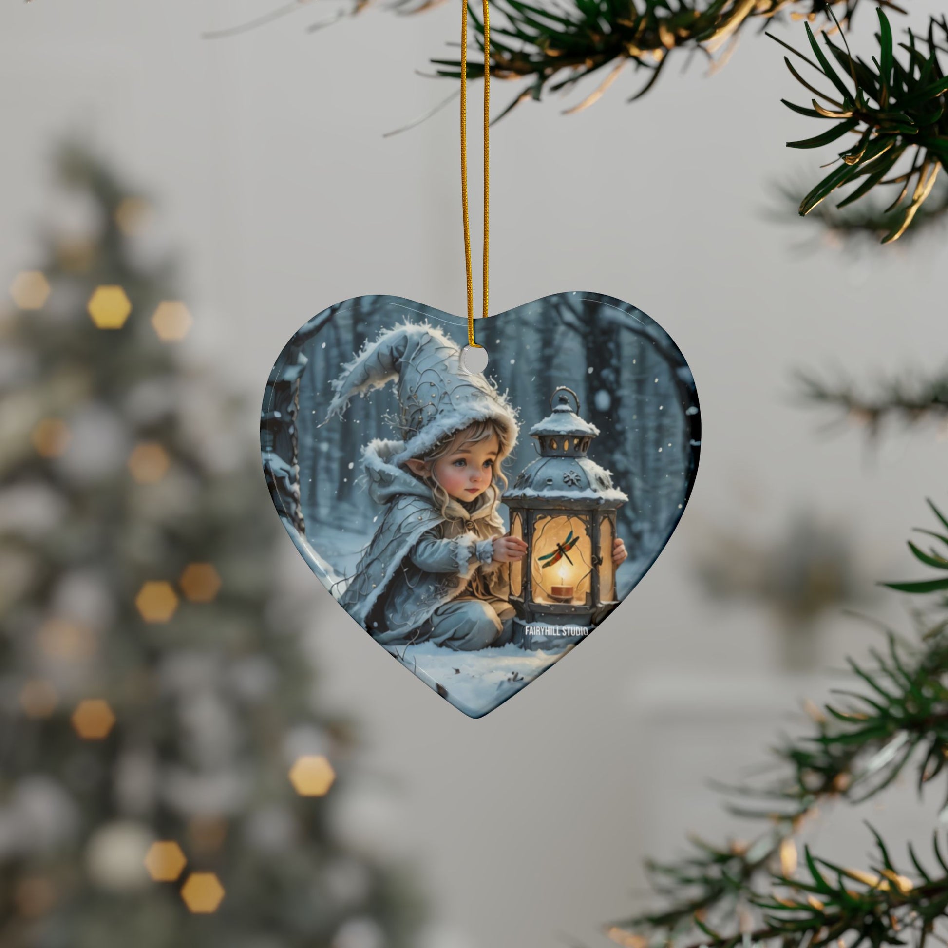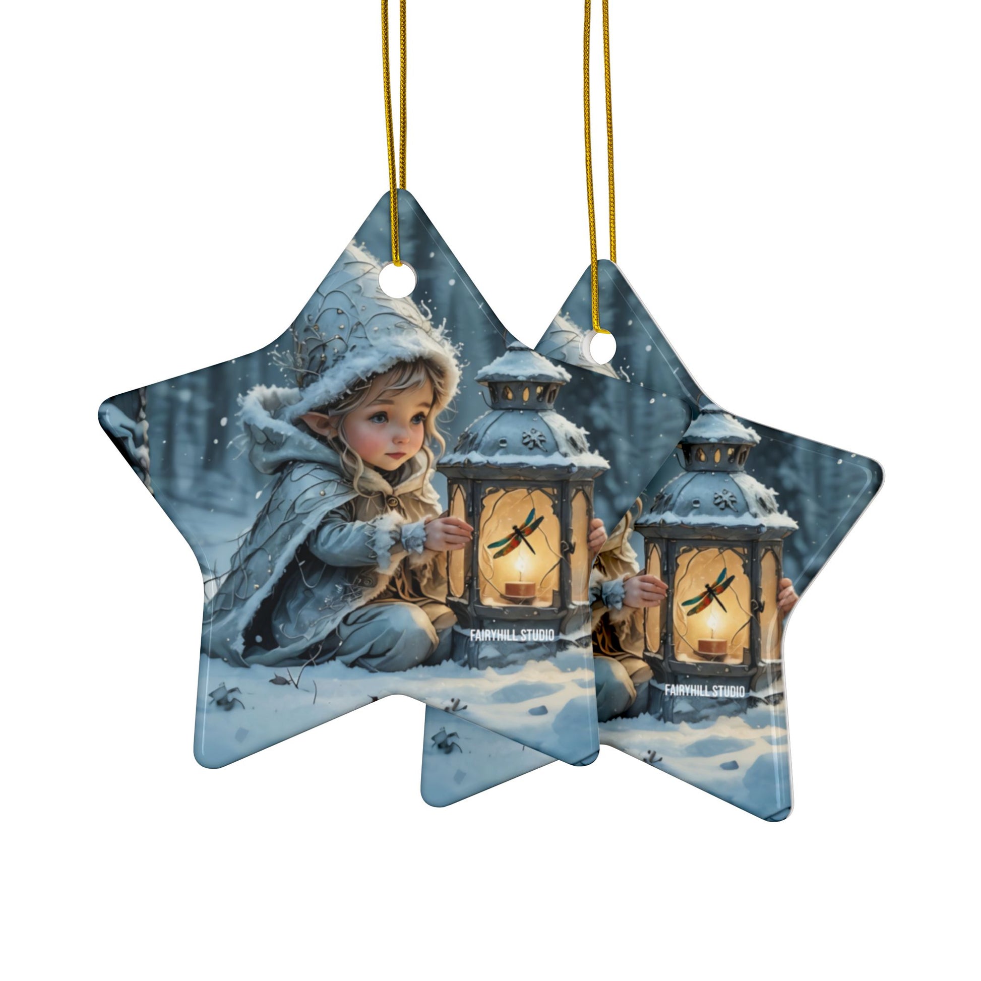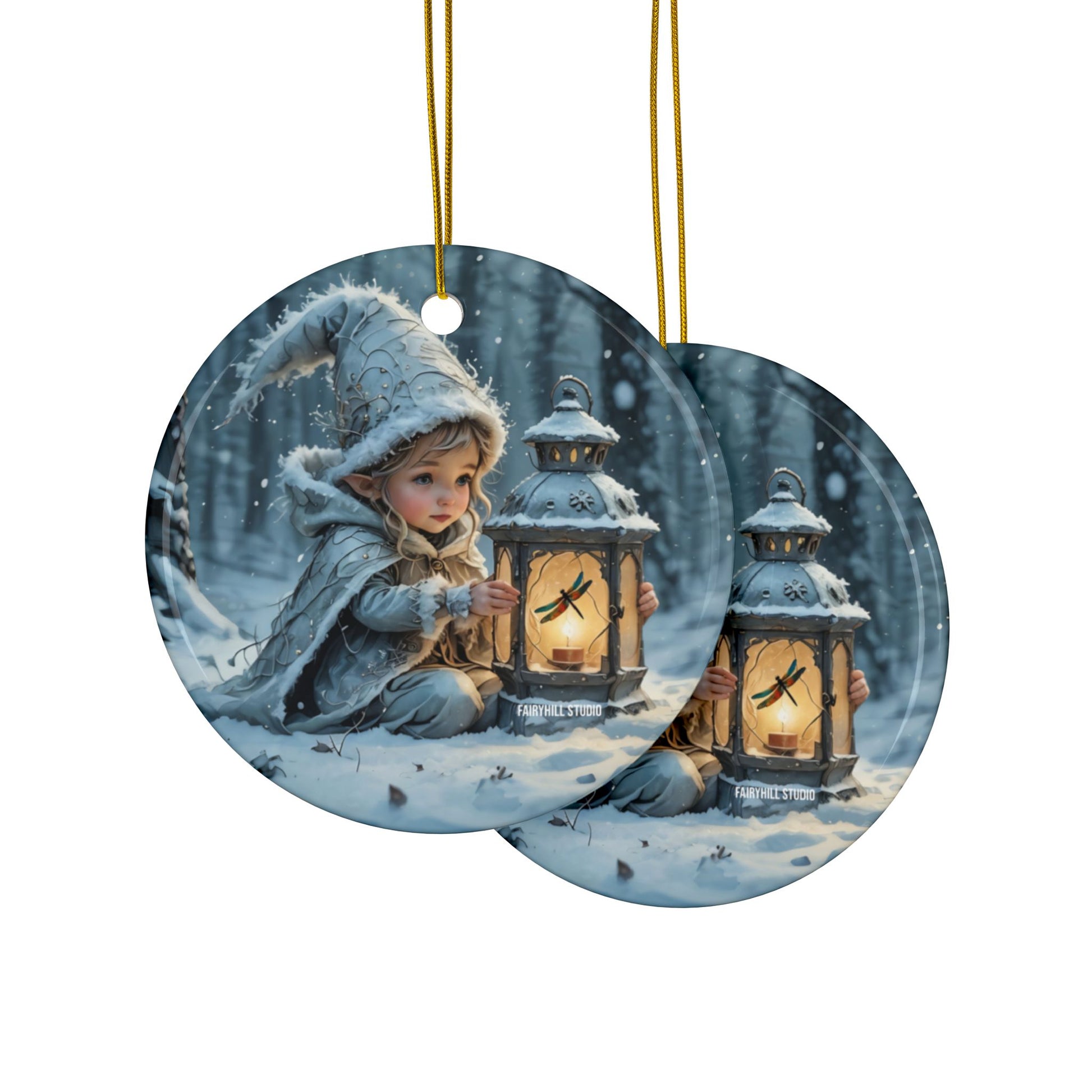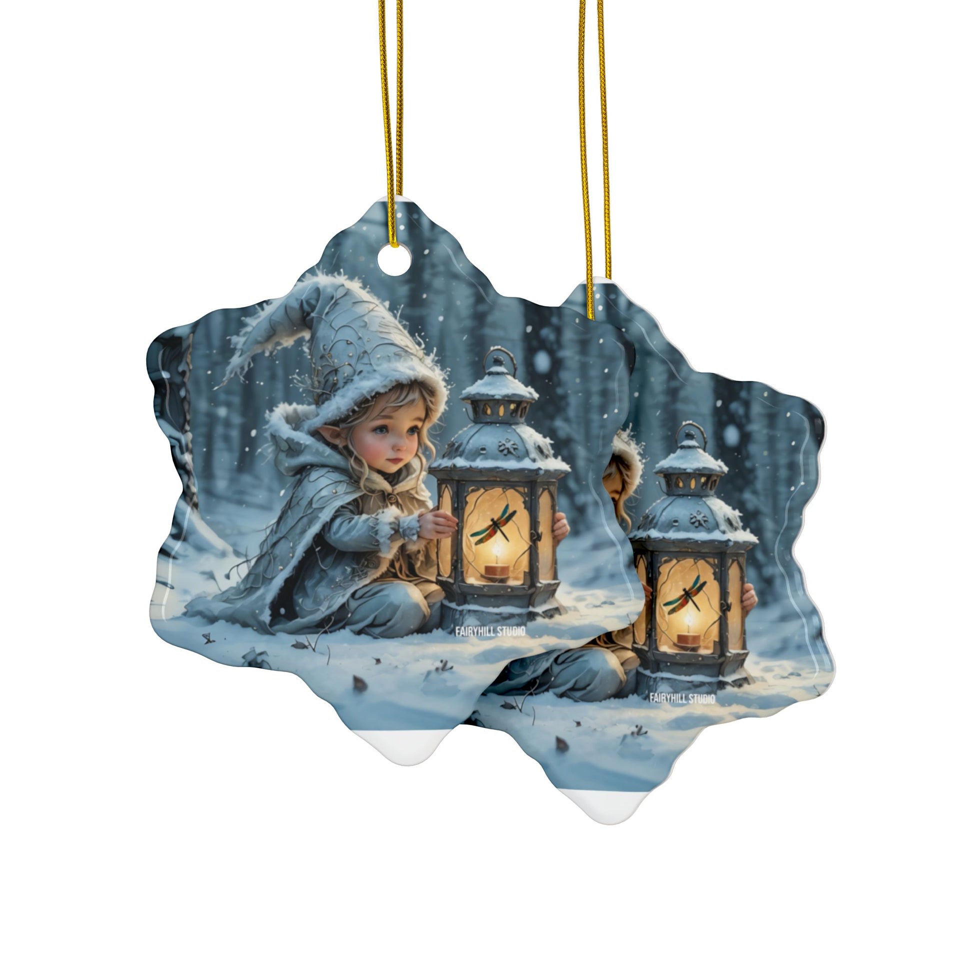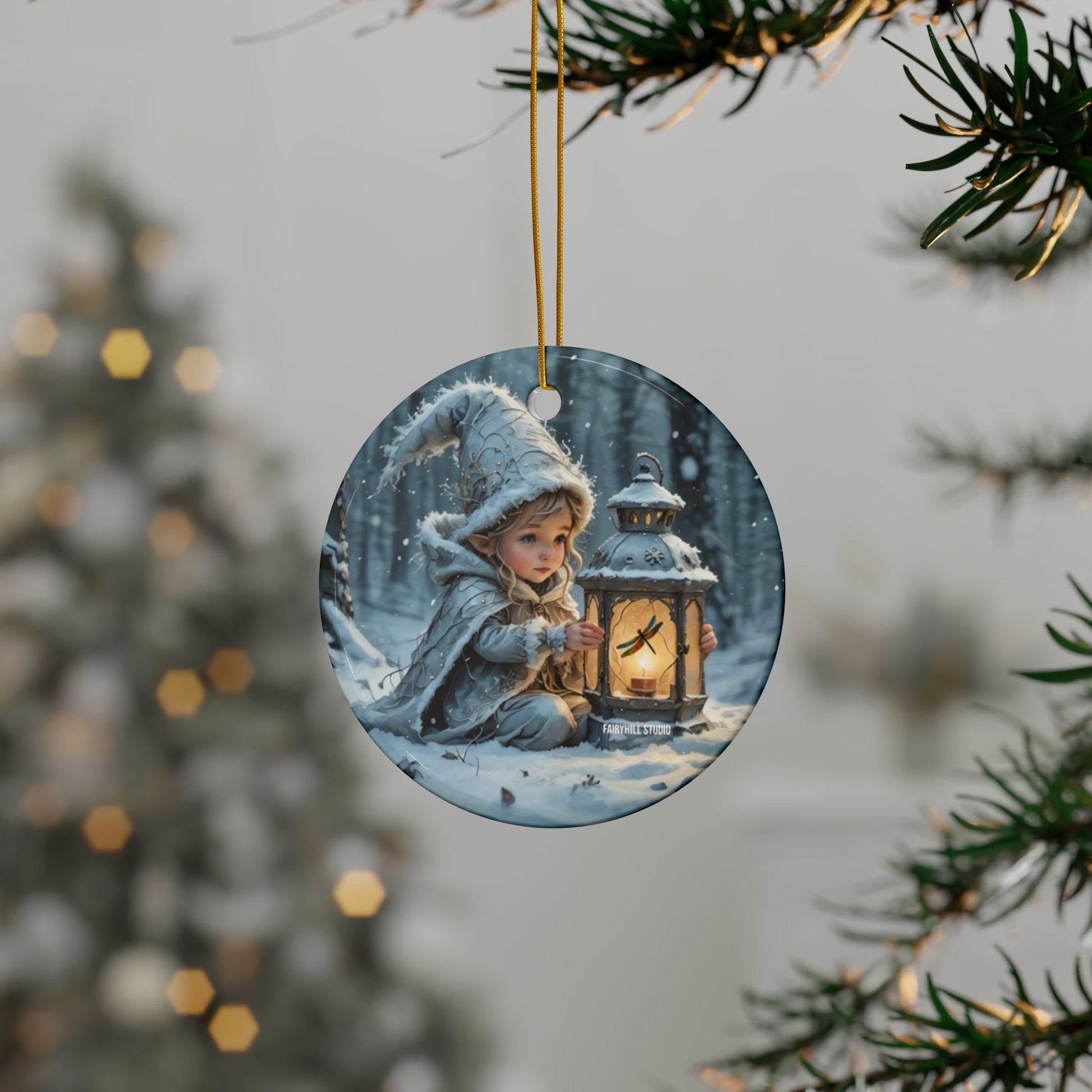 Ceramic Ornaments - Magical Holiday Elf with Dragonfly Lantern Art