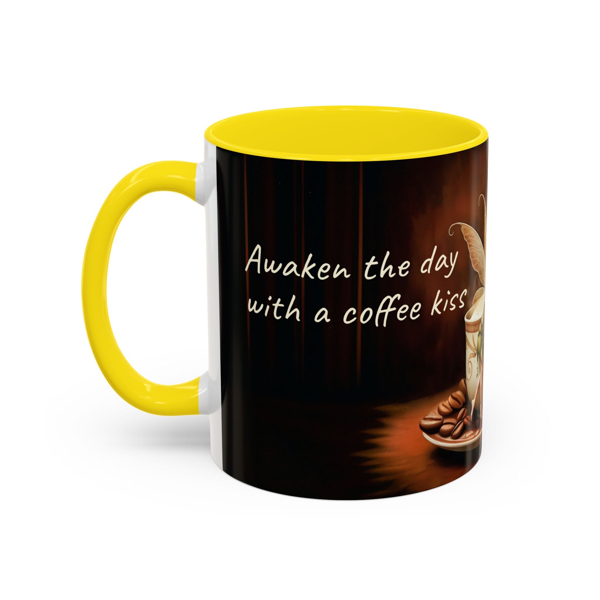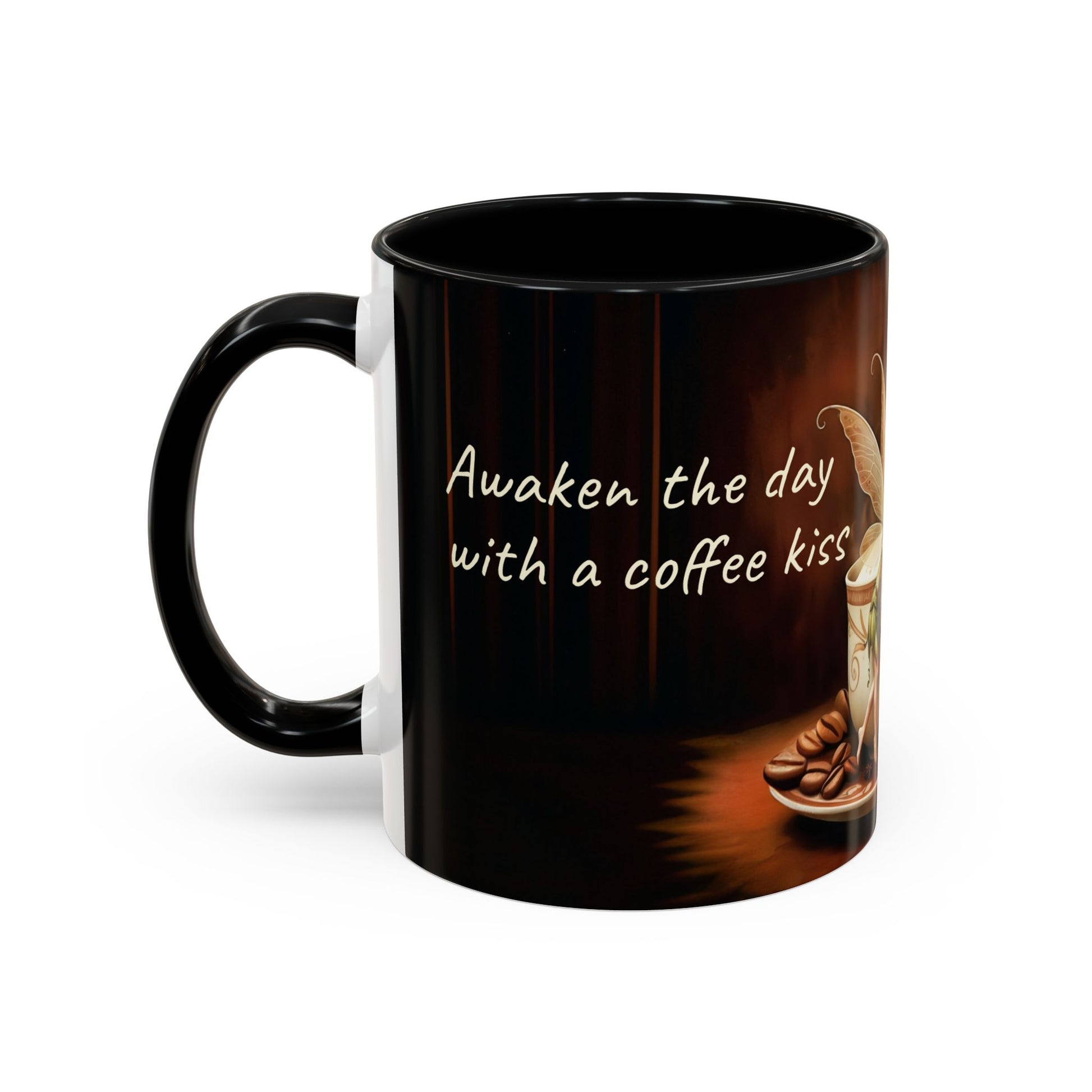 Experience your morning brew with a burst of creativity using our vibrant Accent Fairy/Coffee Mug. with a quote featuring a morning fairy Crafted from high-quality white ceramic, this eye-catching mug features a striking color contrast that transforms your kitchen into a lively café. Perfect for art lovers and coffee enthusiasts, it adds a splash of personality to everyday moments. Enjoy the glossy finish and comfortable C-shaped handle while sipping your favorite beverages, whether you're at home or in the office. Ideal for gifting during holidays, housewarmings, or celebrations with friends and family. Elevate your coffee experience and brighten up your day with this stunning mug!