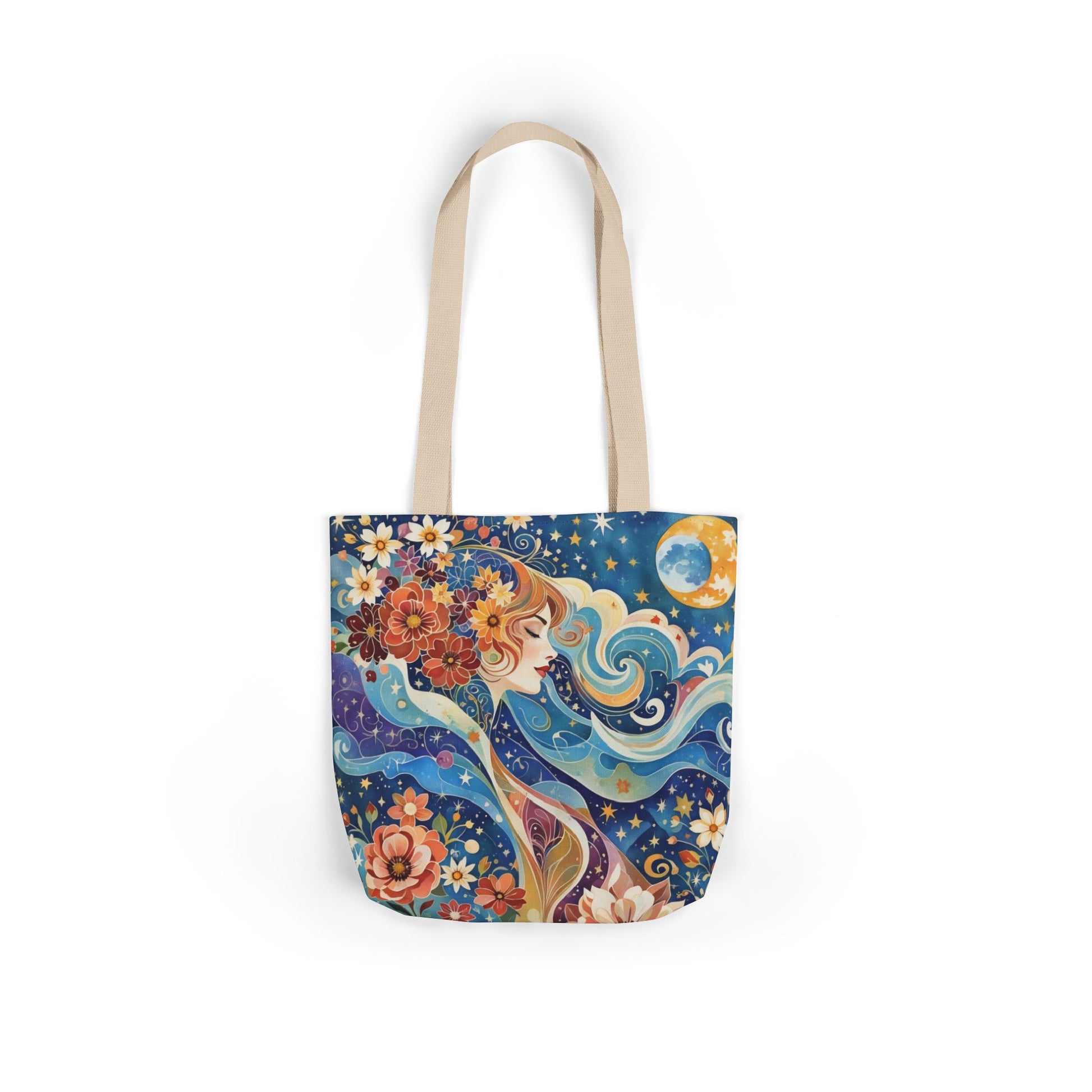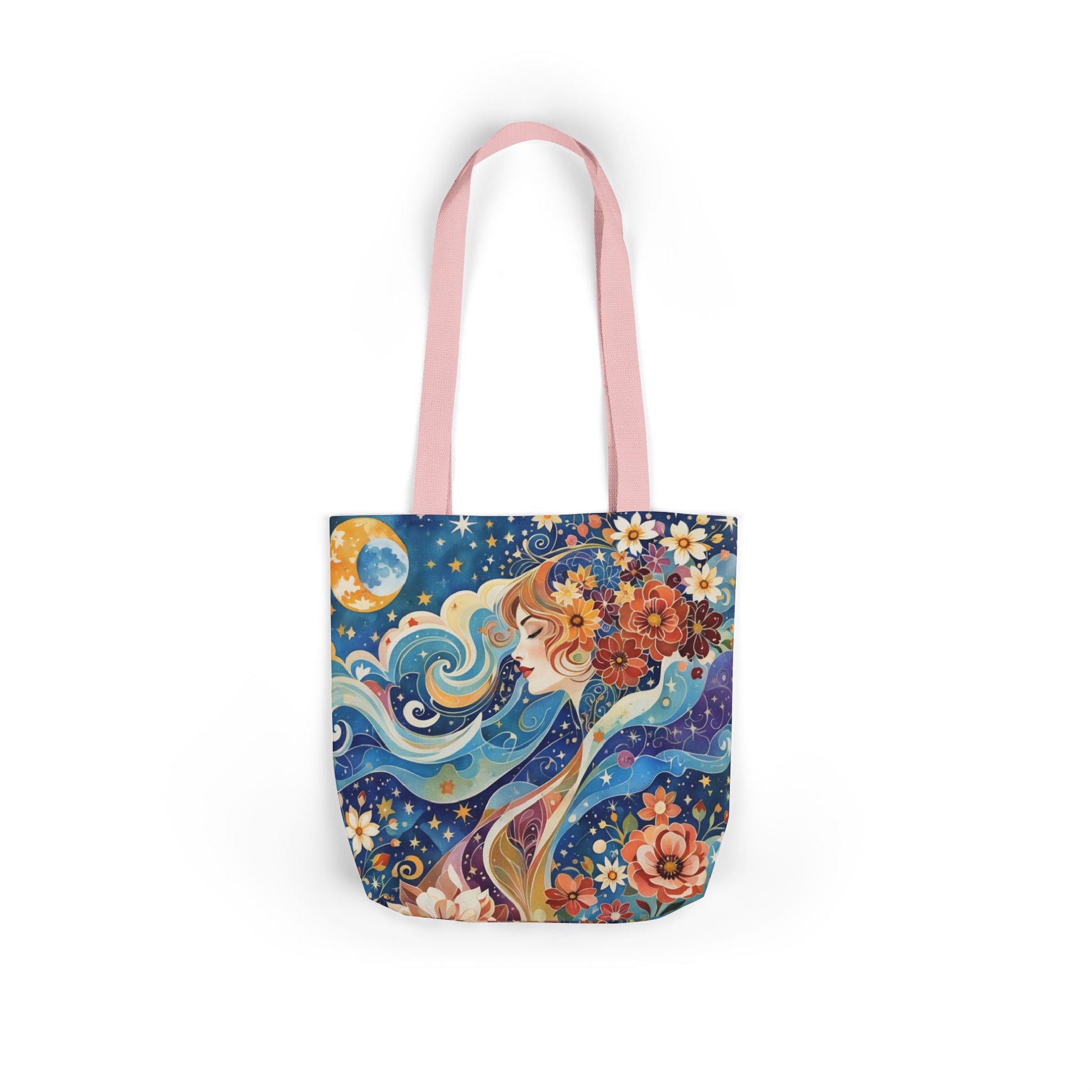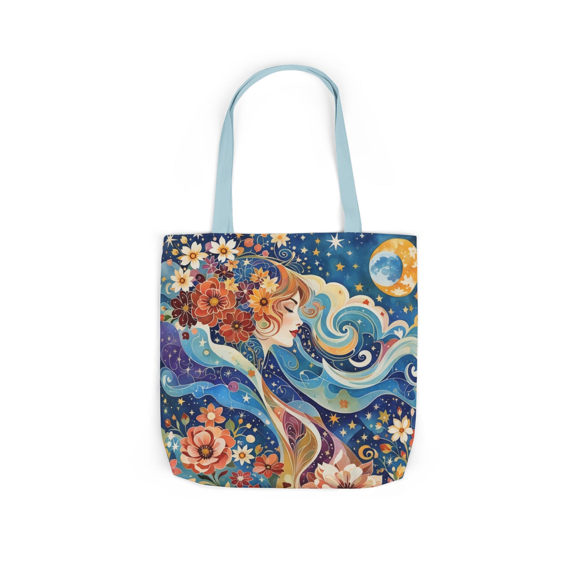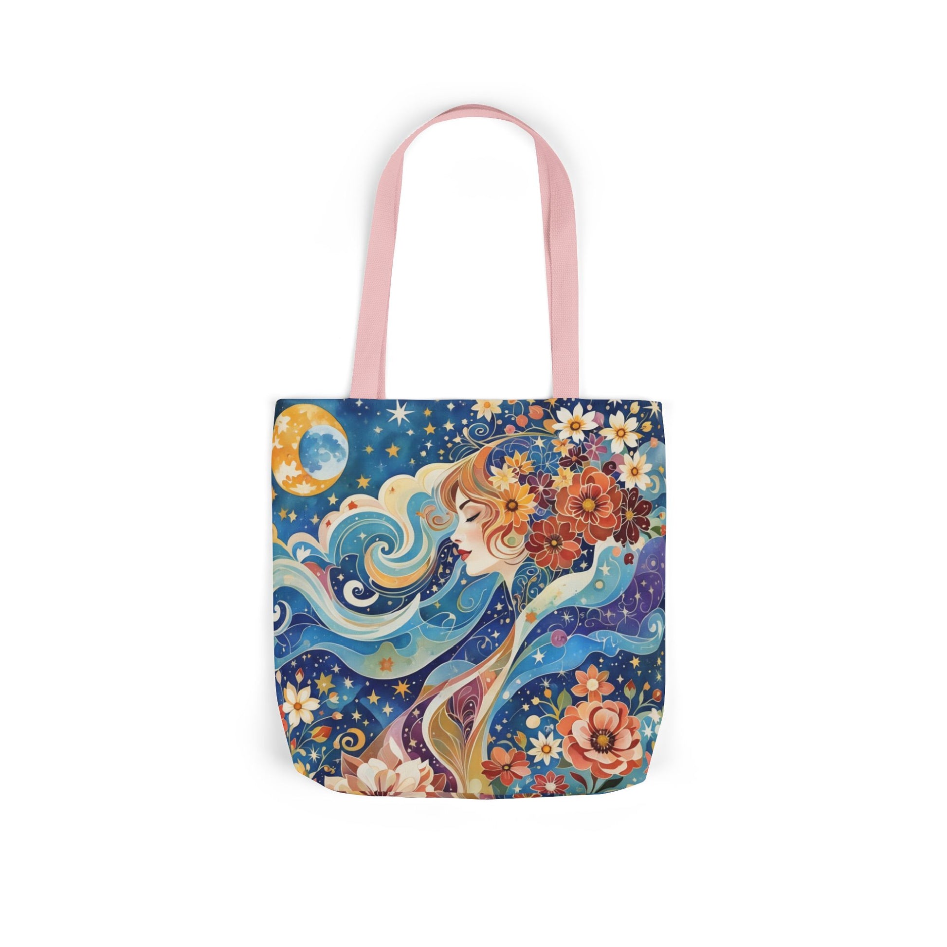 Elevate your everyday style with this vibrant Canvas Tote Bag. Crafted from luxuriously soft 100% polyester canvas, it features a stunning all-over print that showcases bold colors and unique designs, perfect for making a statement wherever you go. This tote bag effortlessly blends functionality with flair, making it ideal for daily errands, beach days, or city adventures. With its spacious interior and boxed corners, it provides ample room for your essentials while the five color strap options let you express your personal style. This bag is perfect for art lovers, eco-conscious shoppers, and anyone who enjoys adding a splash of color to their life. Whether you're celebrating a birthday, gearing up for a summer festival, or just treating yourself, this Canvas Tote Bag is a must-have accessory for every occasion.