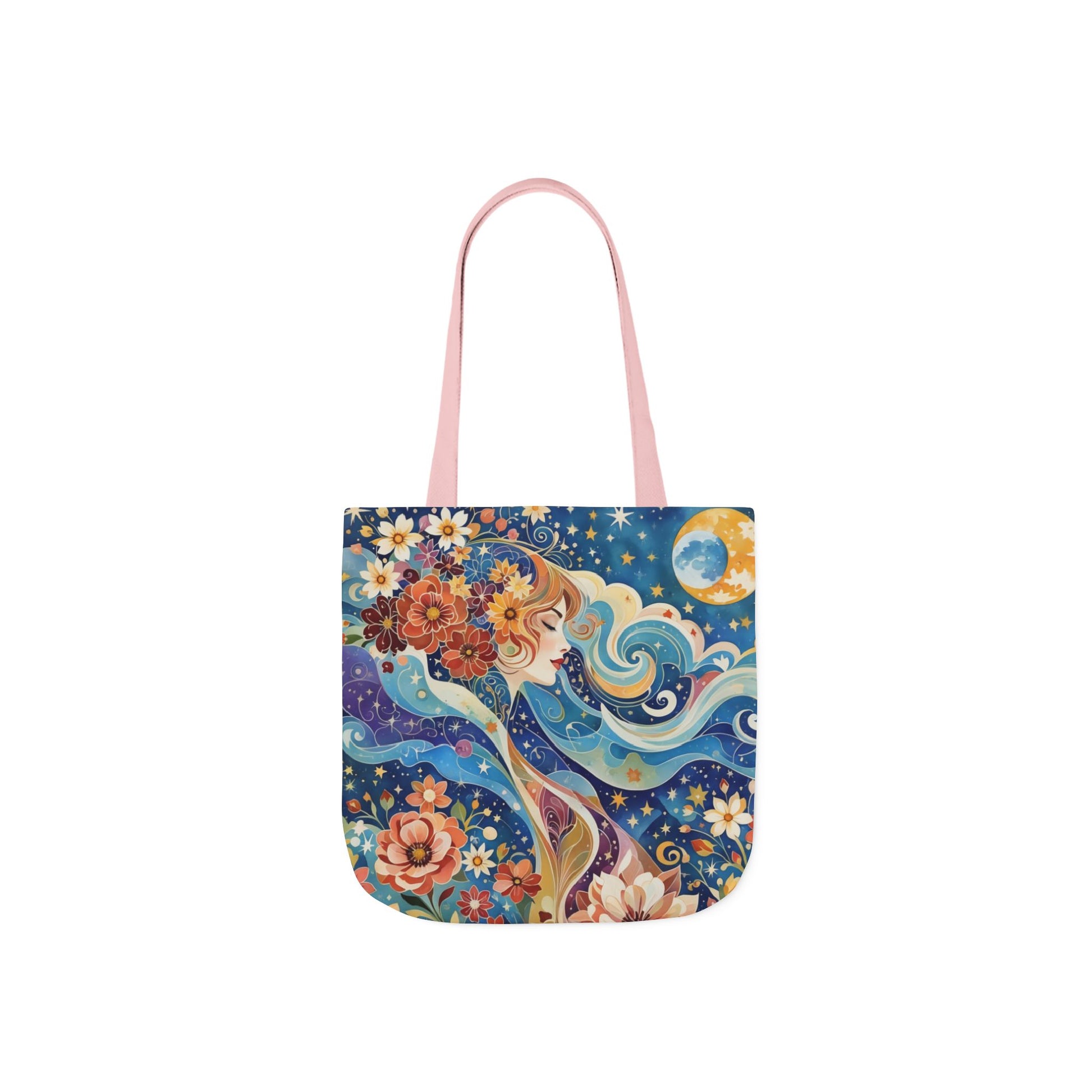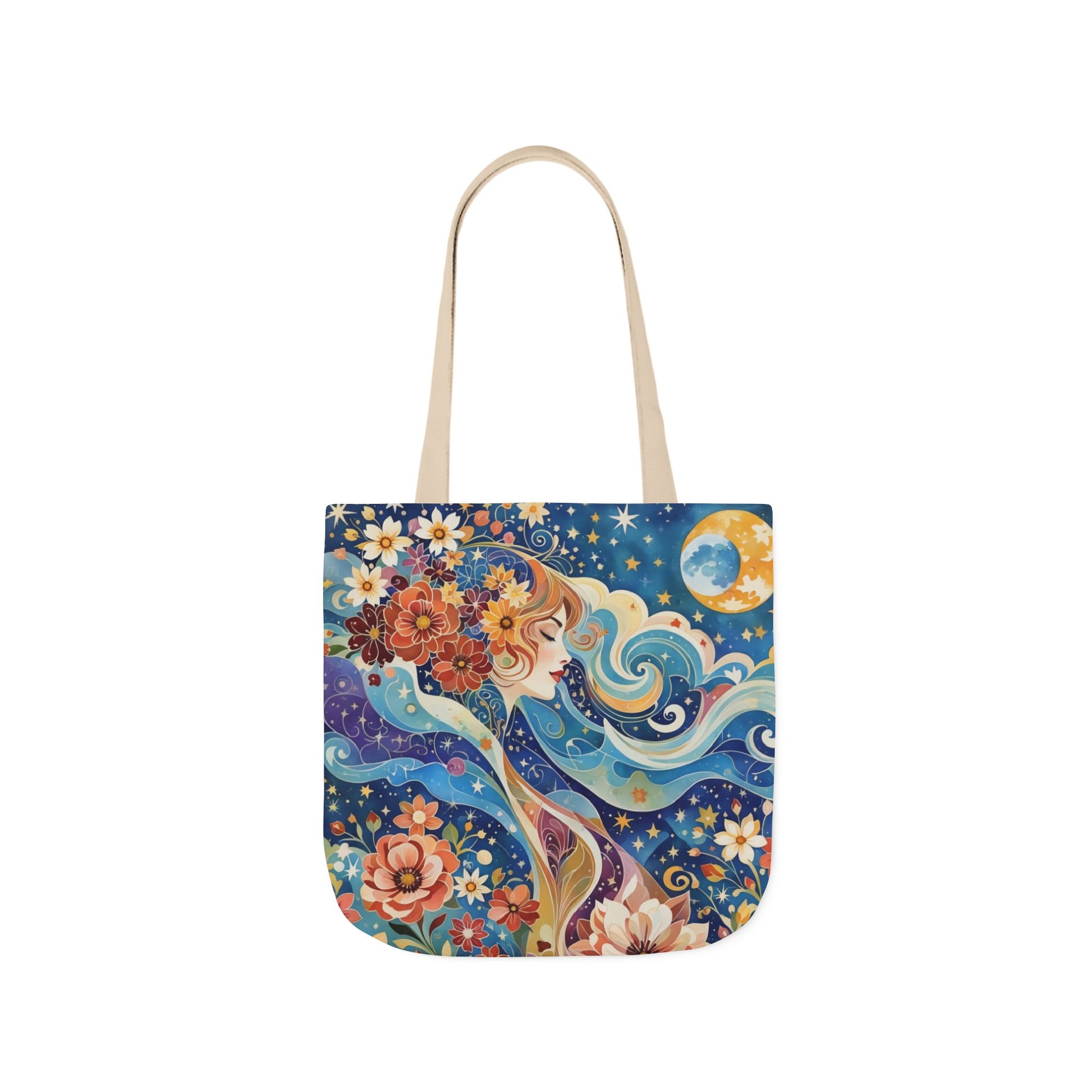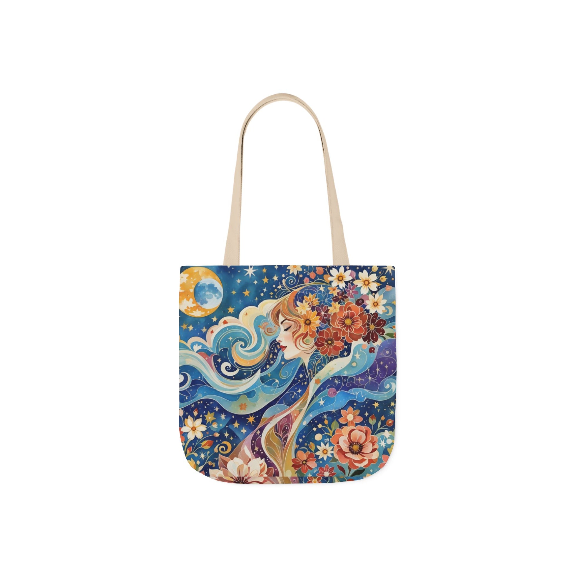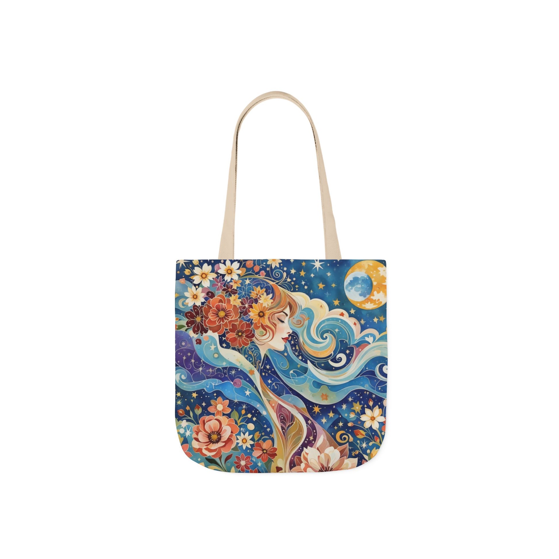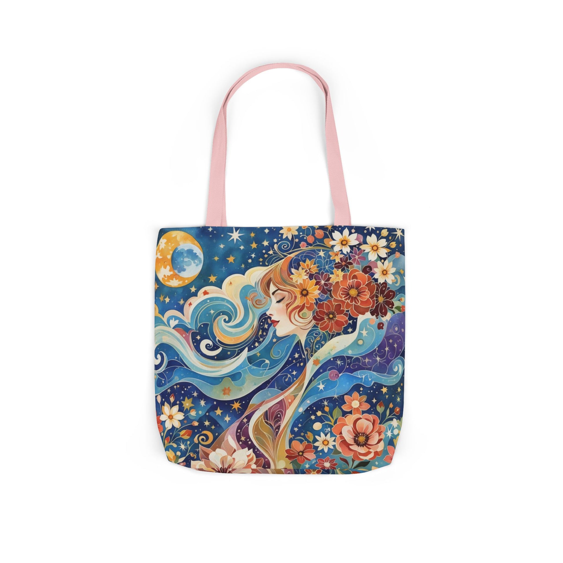 Elevate your everyday style with this vibrant Canvas Tote Bag. Crafted from luxuriously soft 100% polyester canvas, it features a stunning all-over print that showcases bold colors and unique designs, perfect for making a statement wherever you go. This tote bag effortlessly blends functionality with flair, making it ideal for daily errands, beach days, or city adventures. With its spacious interior and boxed corners, it provides ample room for your essentials while the five color strap options let you express your personal style. This bag is perfect for art lovers, eco-conscious shoppers, and anyone who enjoys adding a splash of color to their life. Whether you're celebrating a birthday, gearing up for a summer festival, or just treating yourself, this Canvas Tote Bag is a must-have accessory for every occasion.