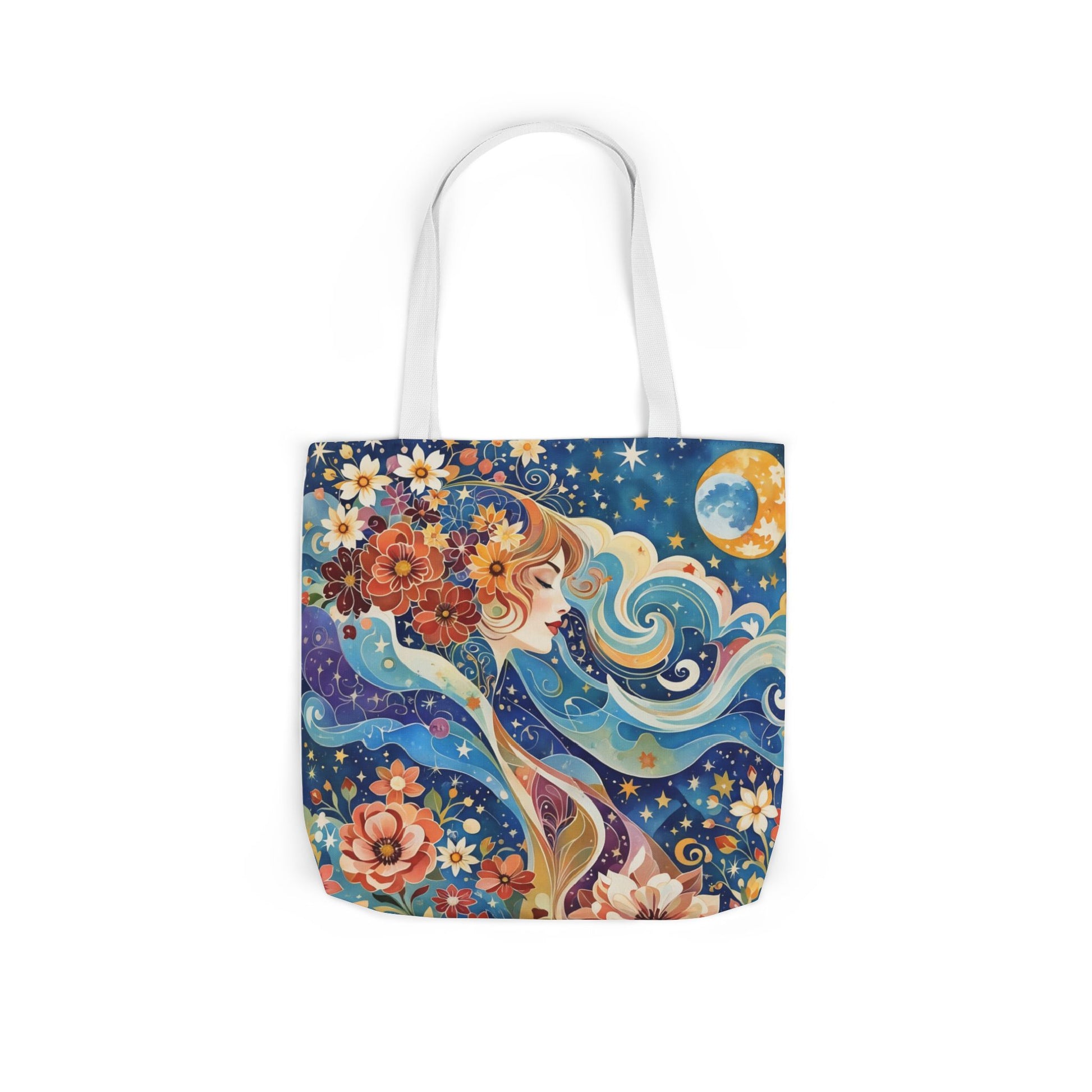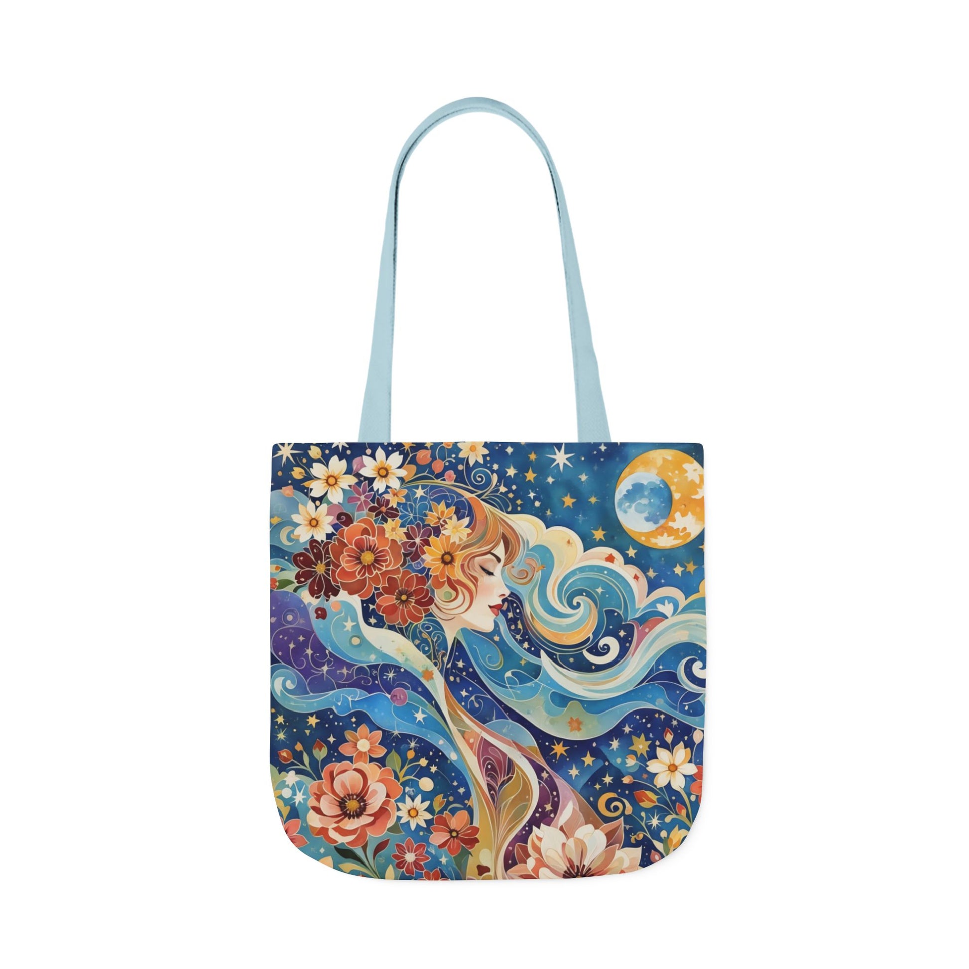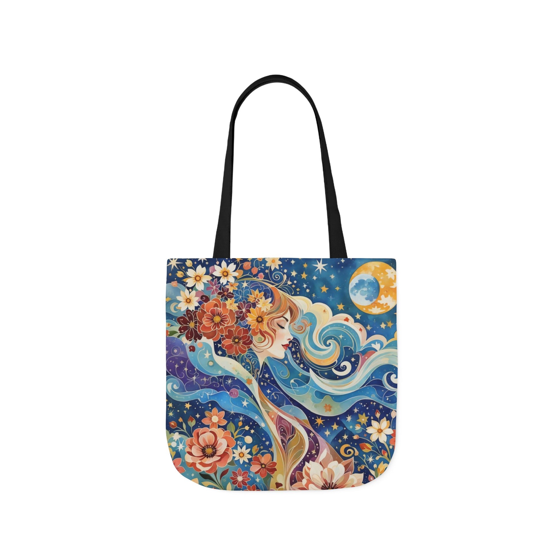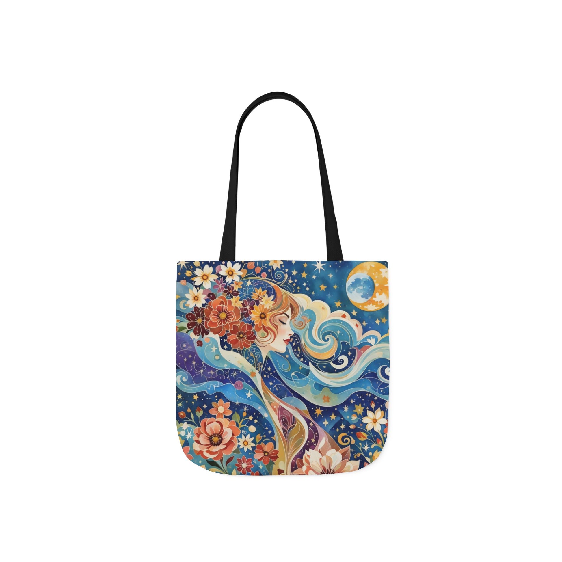 Elevate your everyday style with this vibrant Canvas Tote Bag. Crafted from luxuriously soft 100% polyester canvas, it features a stunning all-over print that showcases bold colors and unique designs, perfect for making a statement wherever you go. This tote bag effortlessly blends functionality with flair, making it ideal for daily errands, beach days, or city adventures. With its spacious interior and boxed corners, it provides ample room for your essentials while the five color strap options let you express your personal style. This bag is perfect for art lovers, eco-conscious shoppers, and anyone who enjoys adding a splash of color to their life. Whether you're celebrating a birthday, gearing up for a summer festival, or just treating yourself, this Canvas Tote Bag is a must-have accessory for every occasion.