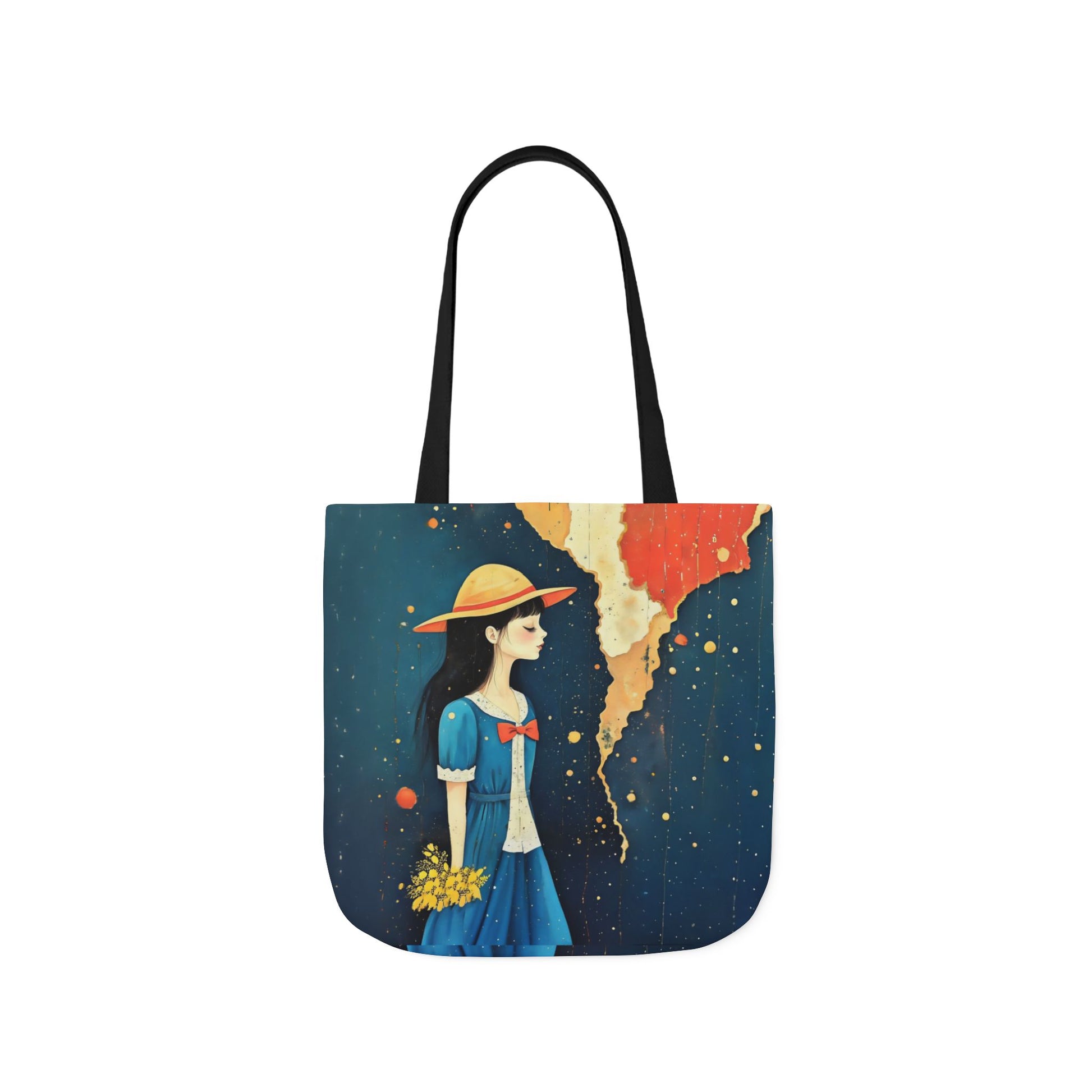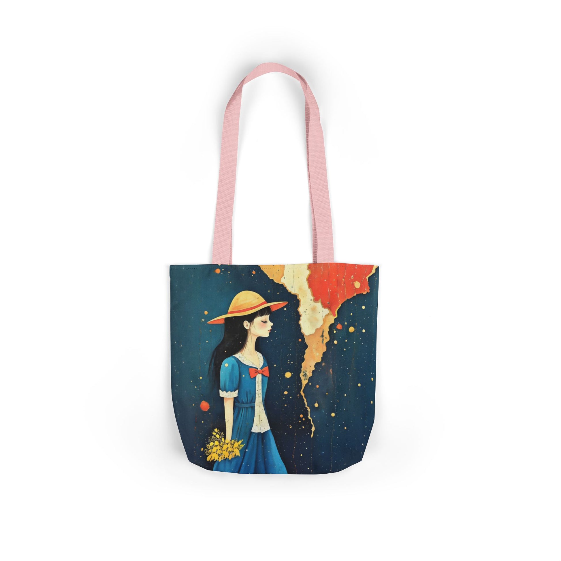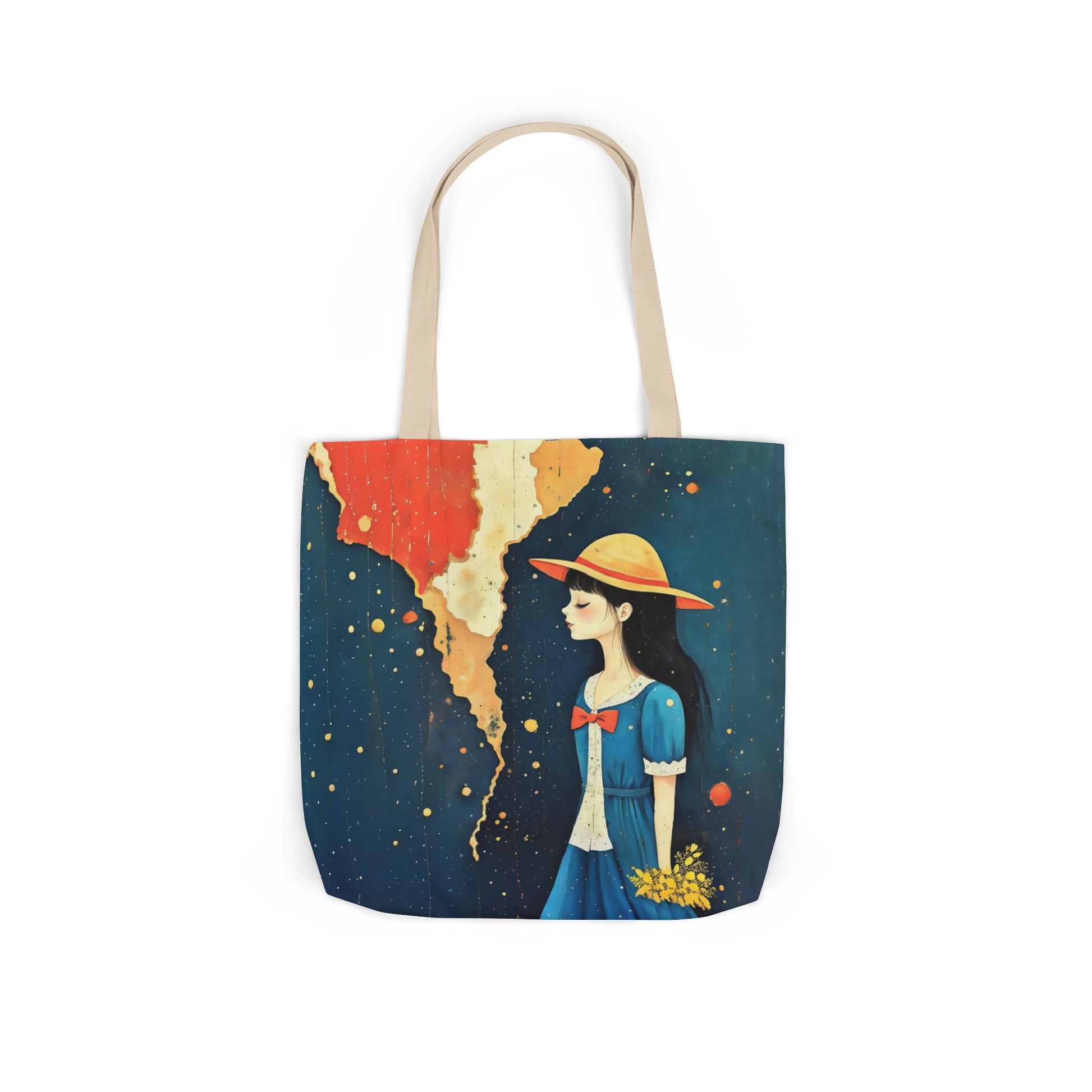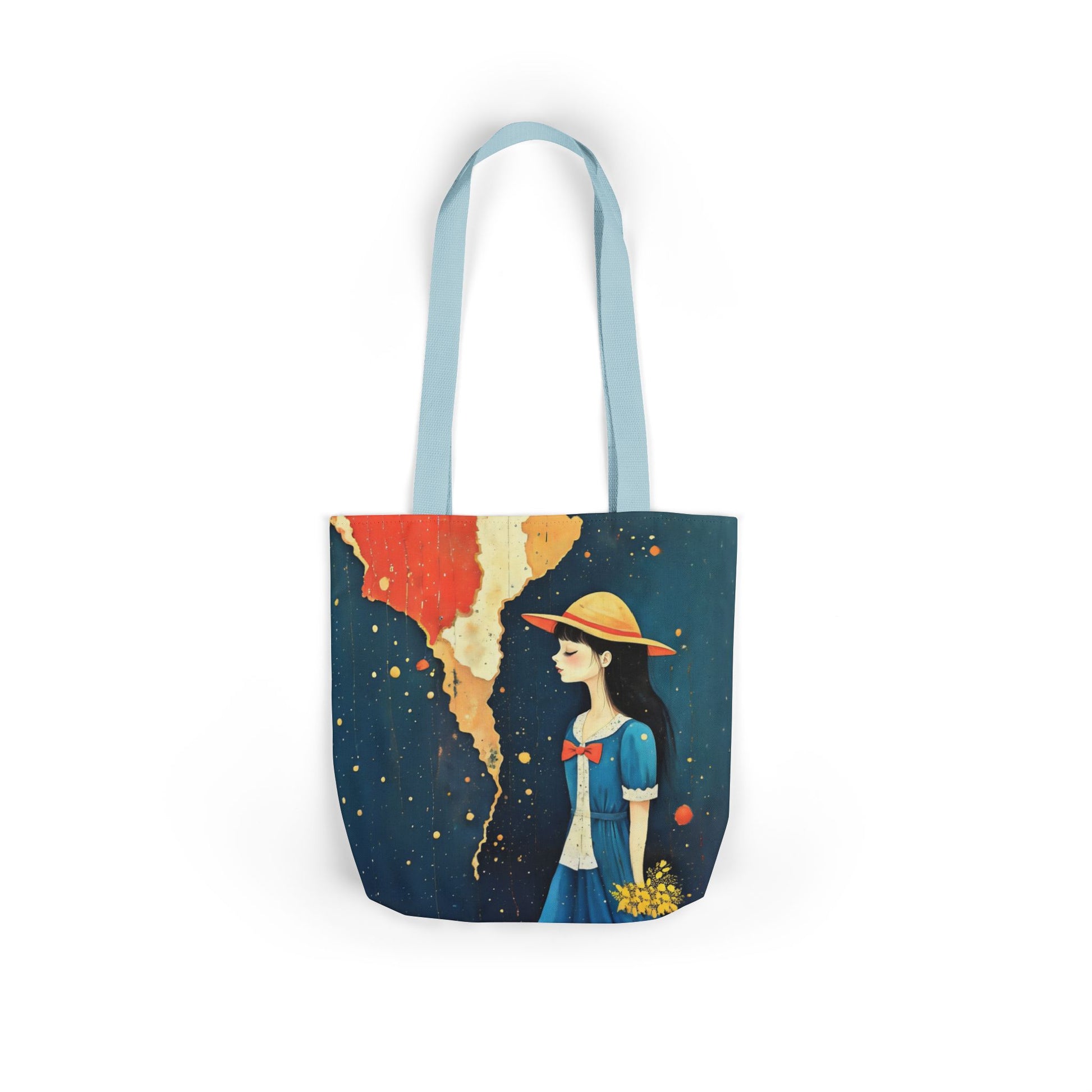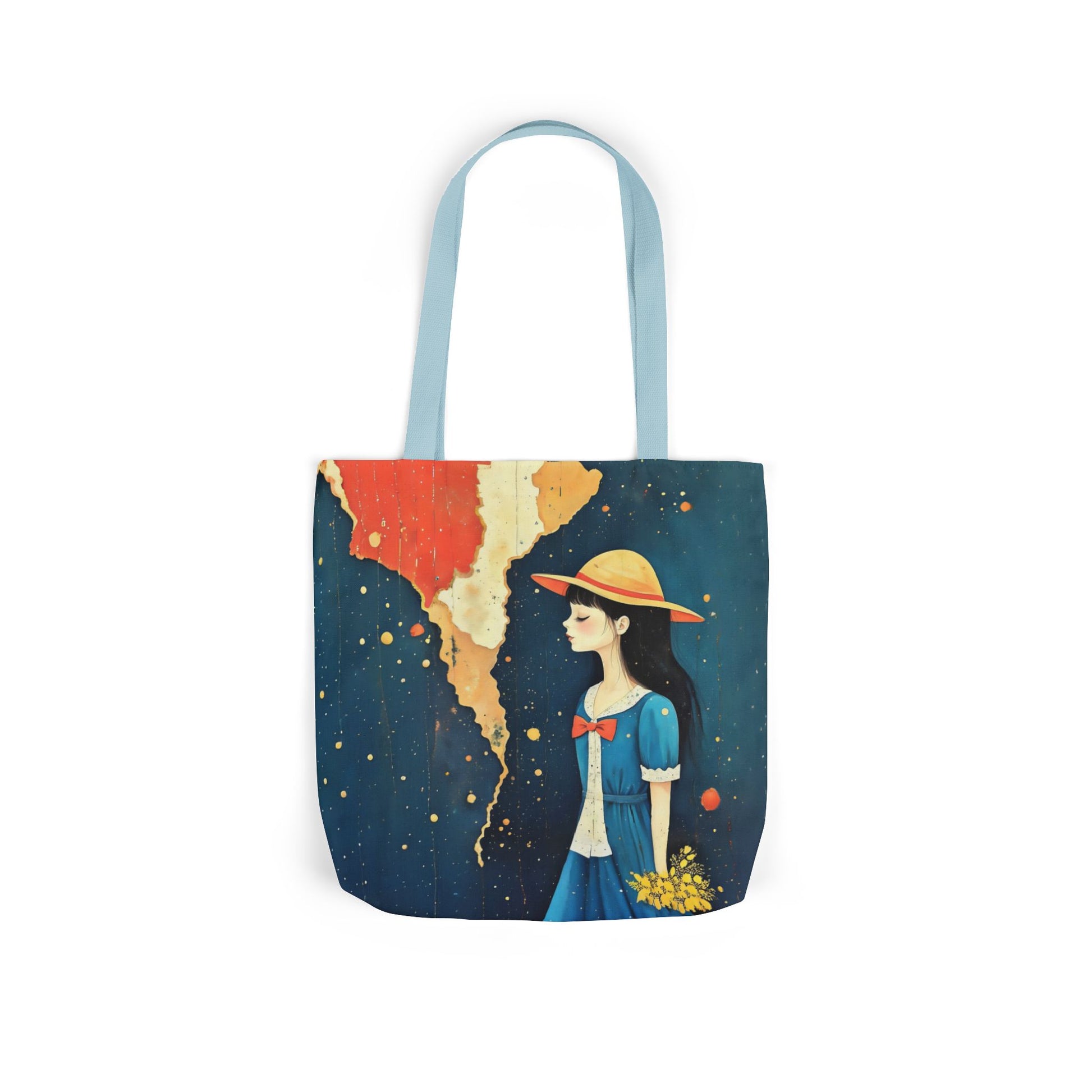 Elevate your everyday style with this vibrant Canvas Tote Bag. Crafted from luxuriously soft 100% polyester canvas, it features a stunning all-over print that showcases bold colors and unique designs, perfect for making a statement wherever you go. This tote bag effortlessly blends functionality with flair, making it ideal for daily errands, beach days, or city adventures. With its spacious interior and boxed corners, it provides ample room for your essentials while the five color strap options let you express your personal style. This bag is perfect for art lovers, eco-conscious shoppers, and anyone who enjoys adding a splash of color to their life. Whether you're celebrating a birthday, gearing up for a summer festival, or just treating yourself, this Canvas Tote Bag is a must-have accessory for every occasion.