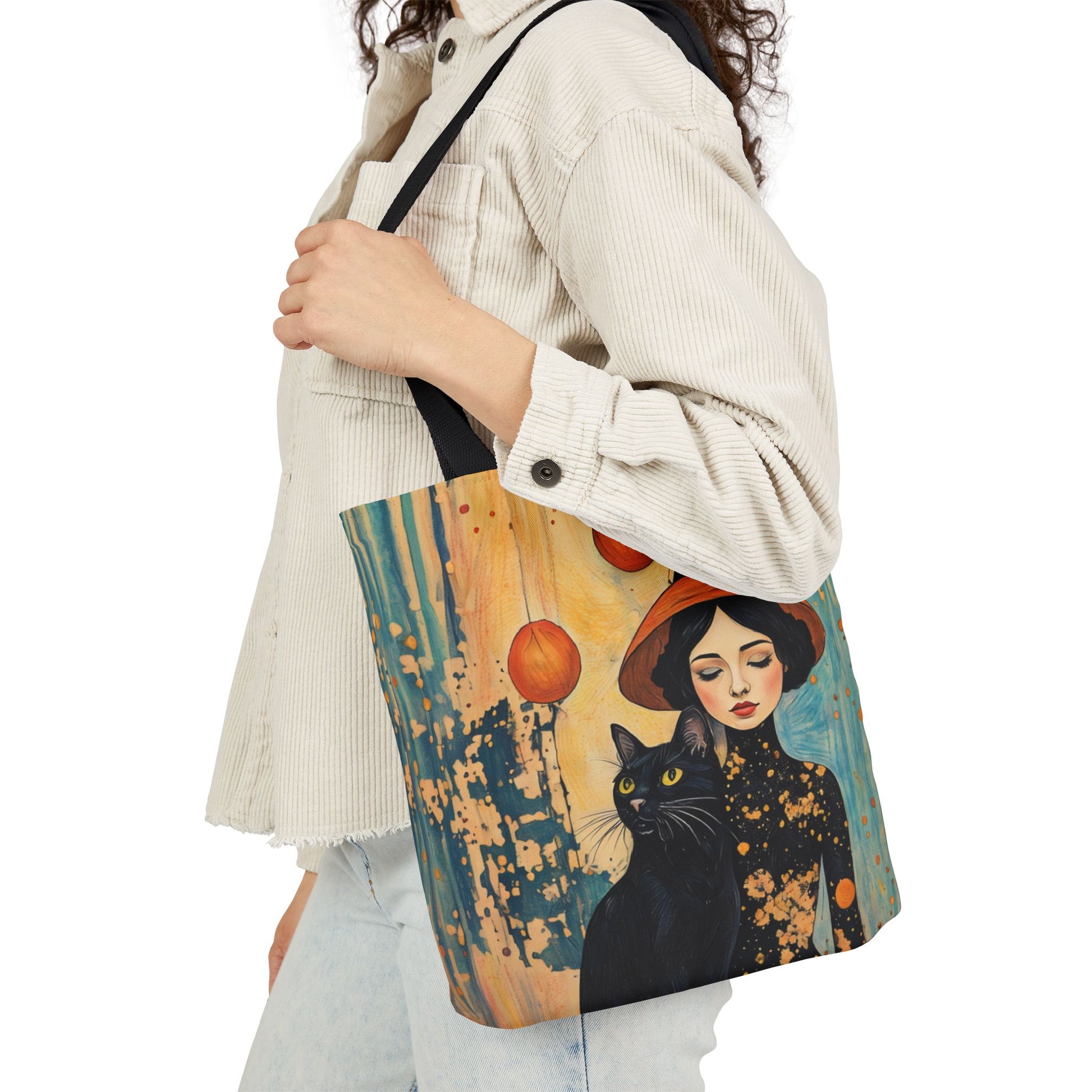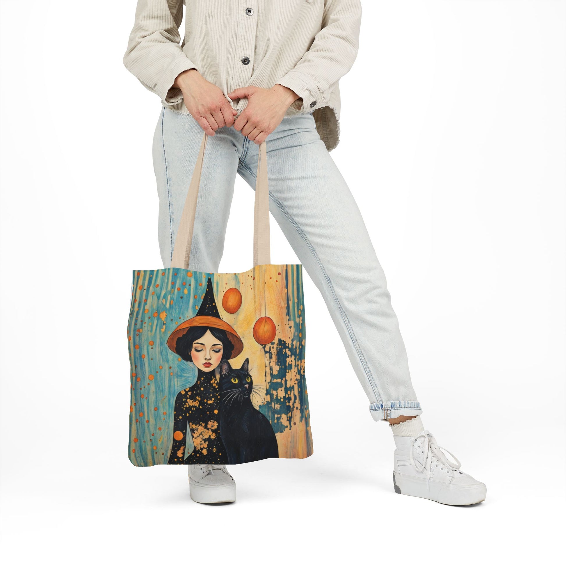 Colorful Witch and black cat-Inspired Canvas Tote Bag - Perfect for Beach Days, Eco-Friendly Shopping, and Summer Fun!