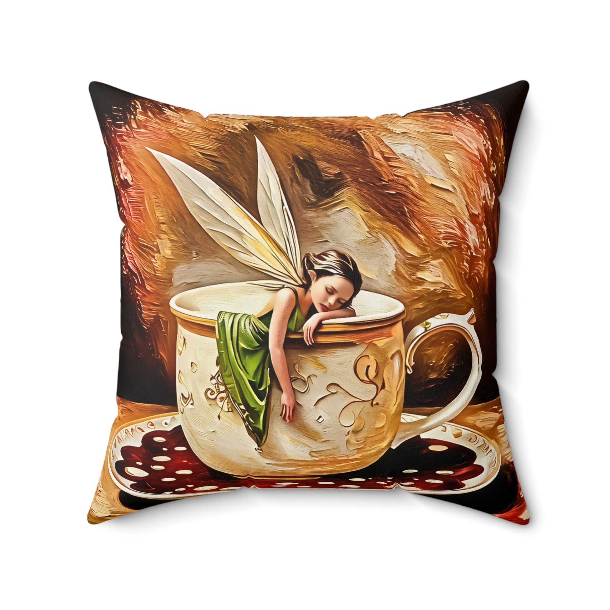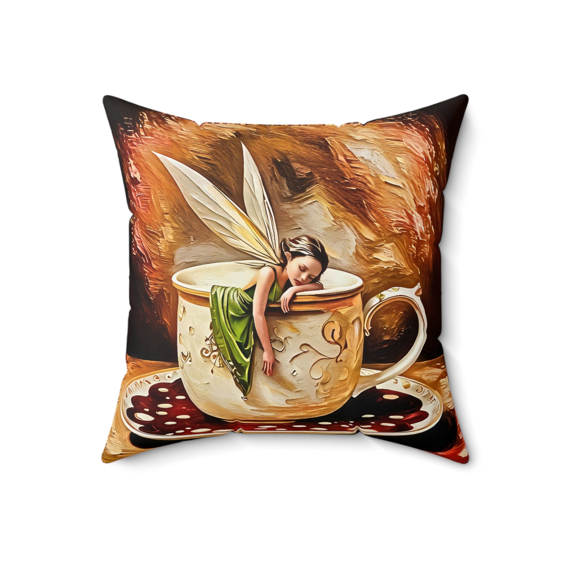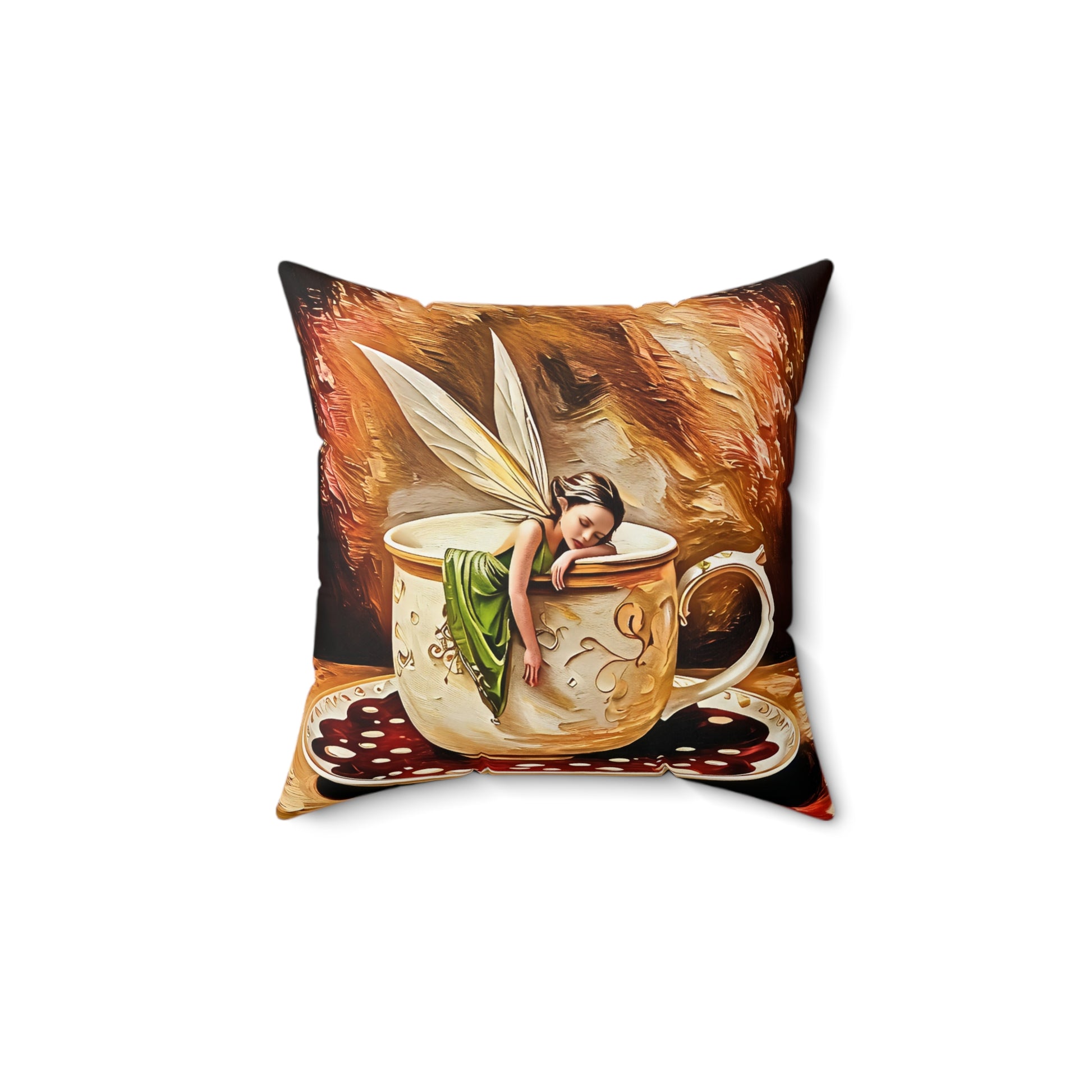 Square Pillow - Coffee Cup Fairy Pillow Art by Fairyhill Studio