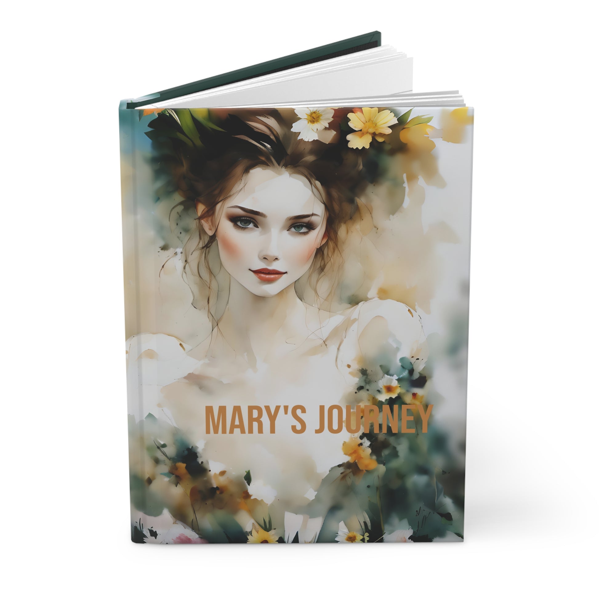Hardcover Journal - Lovely Dreamy Girl in Flowers Art by Fairyhill Studio
