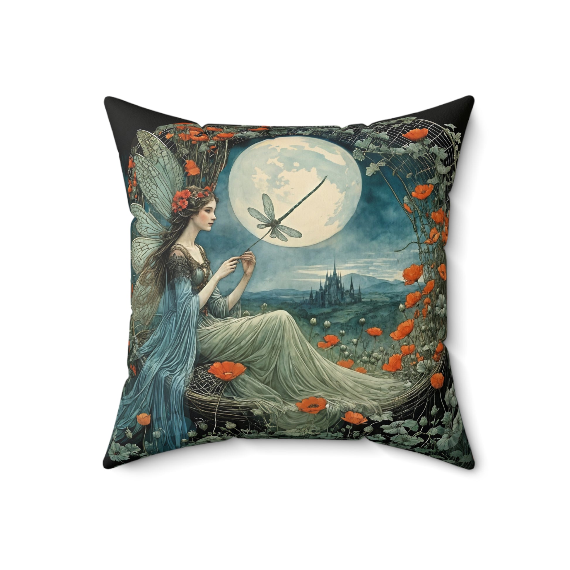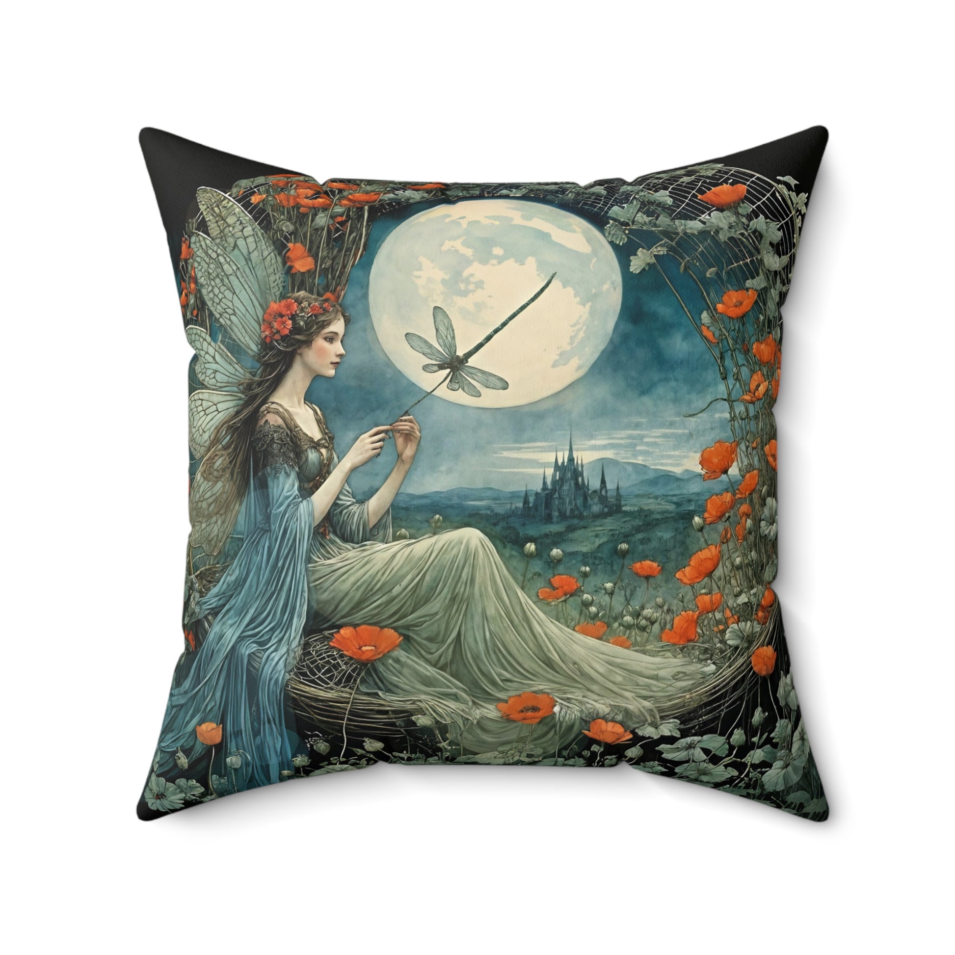 Dragonfly Moon Fairy Mindfulnes Square Pillow - by Fairyhill Studio