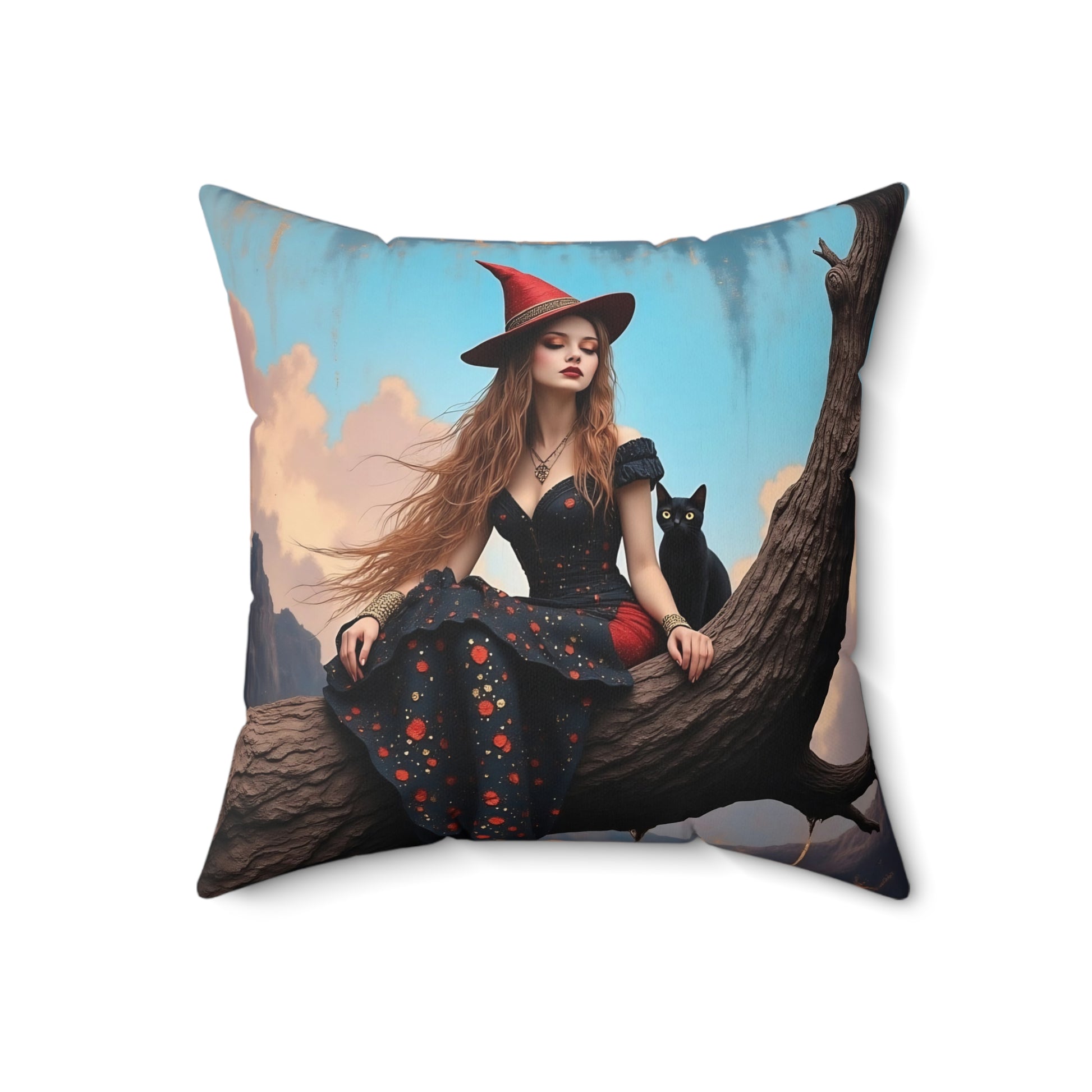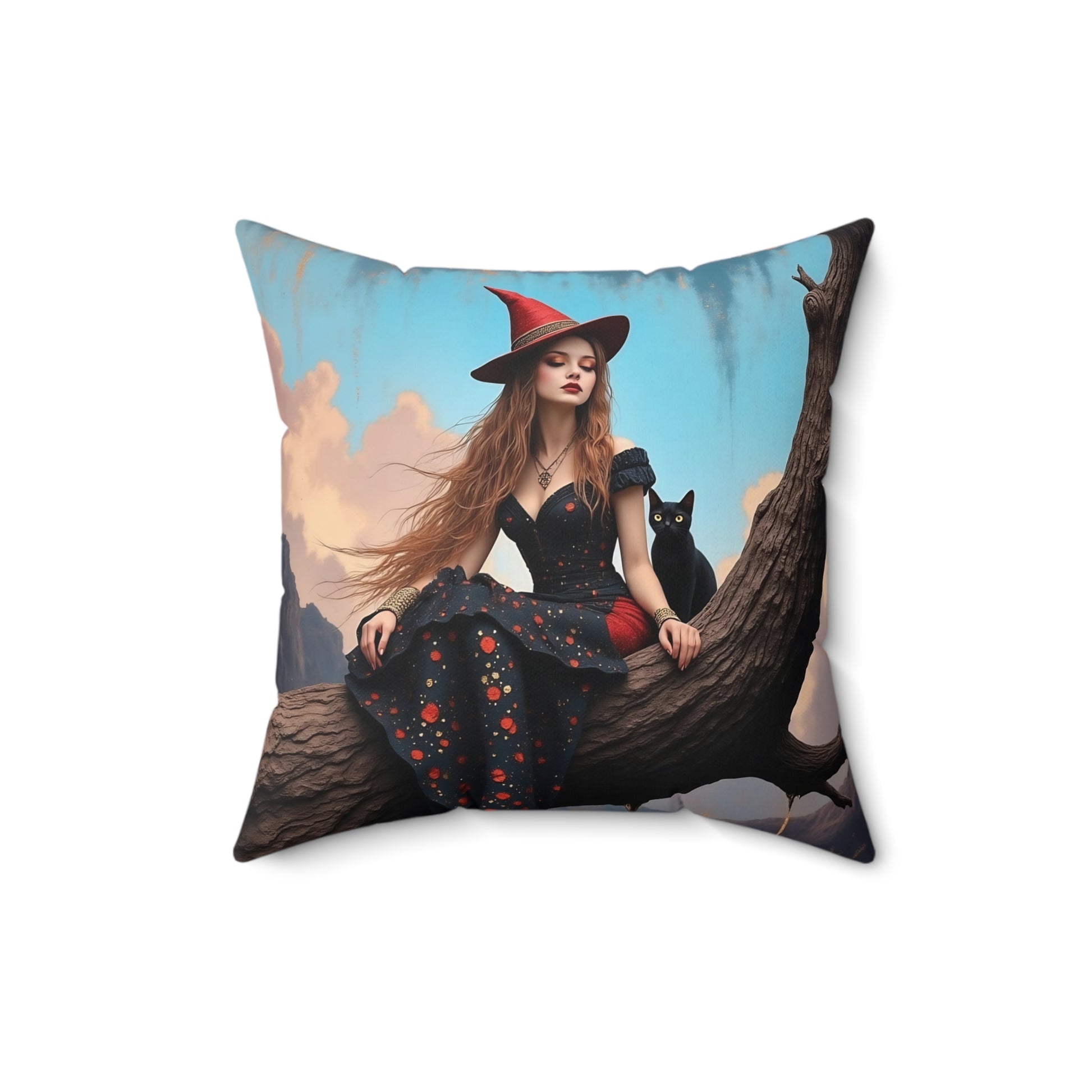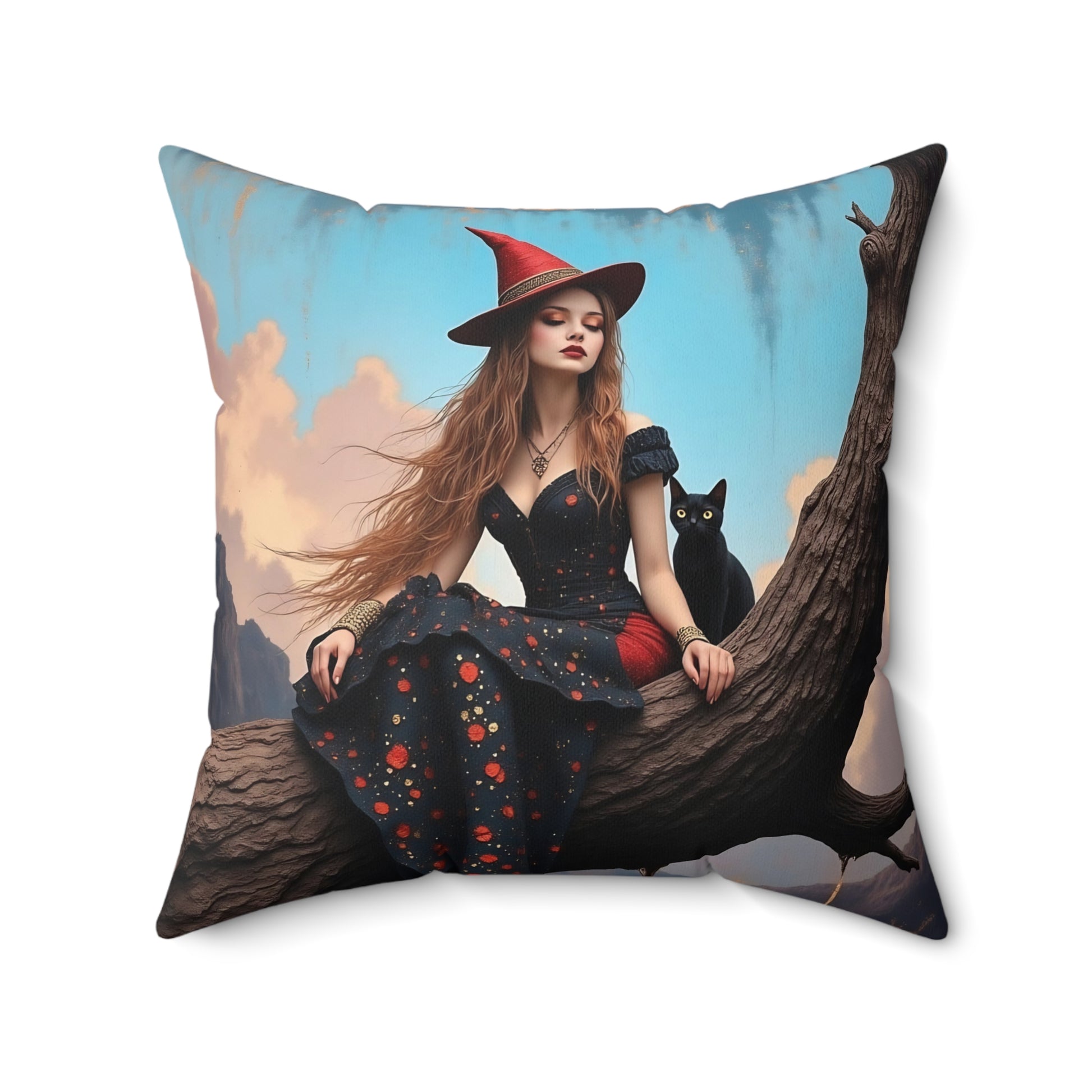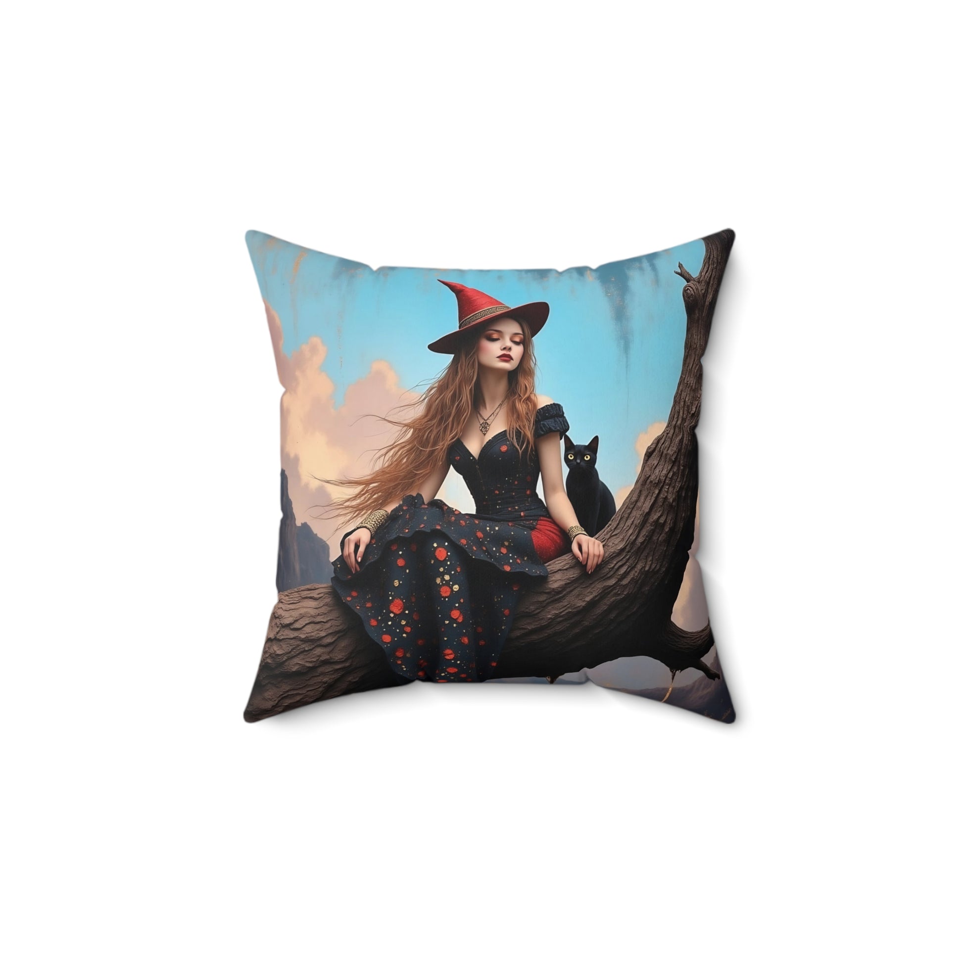 Elegant witch with black cat Square Pillow - by Fairyhill Studio