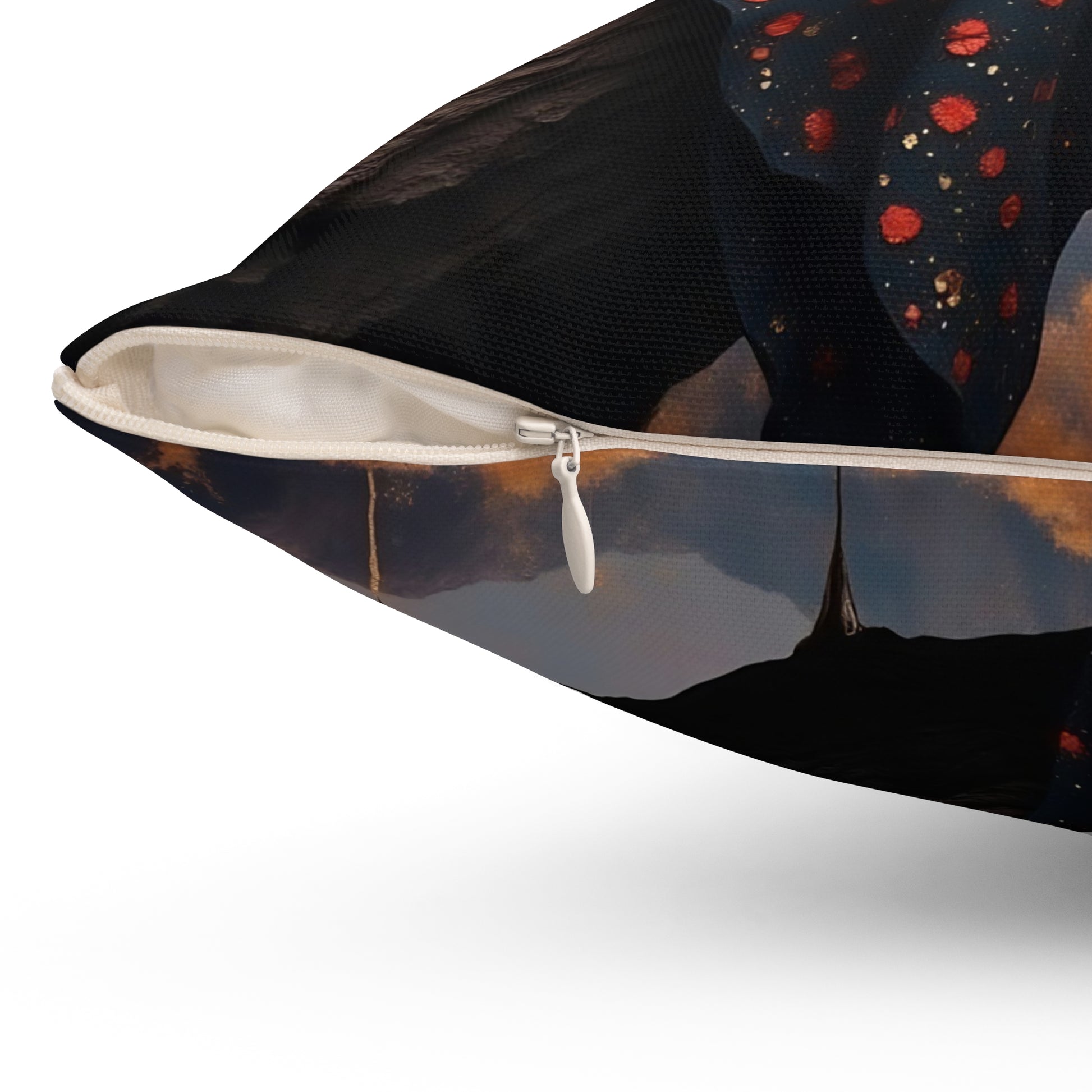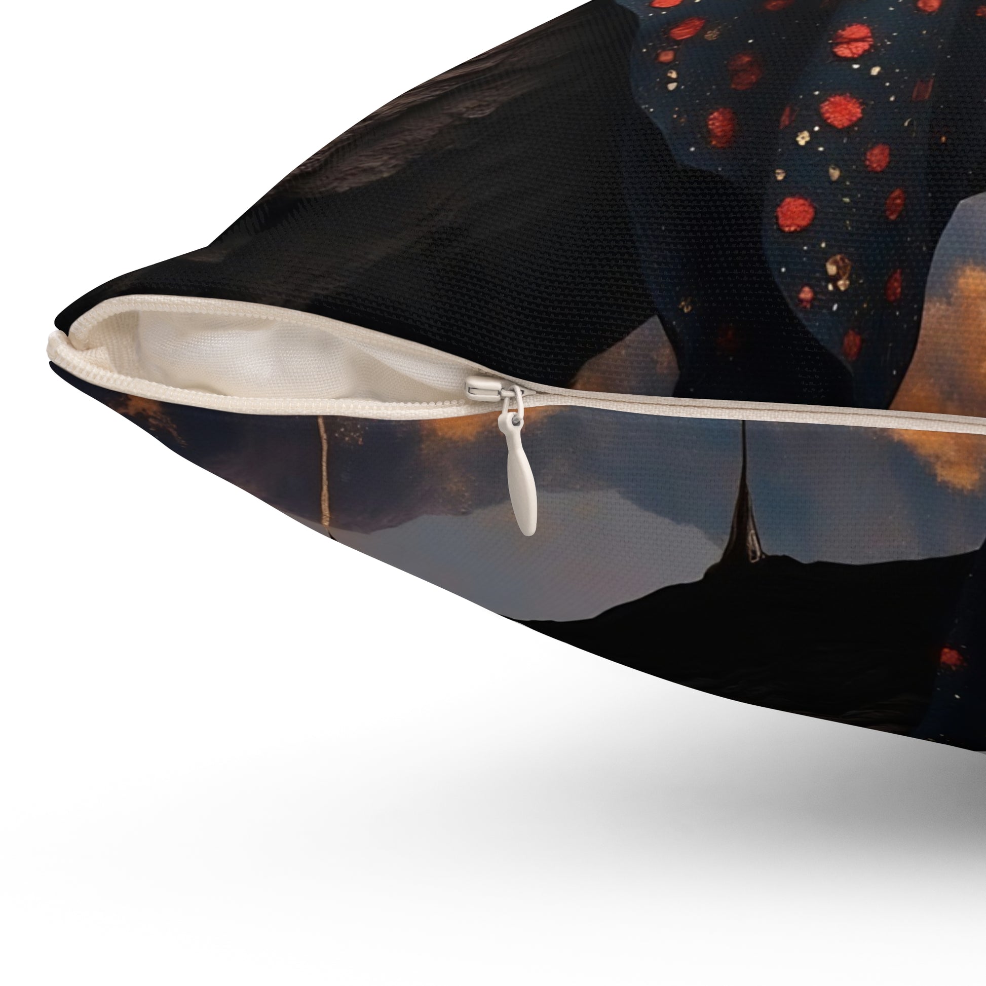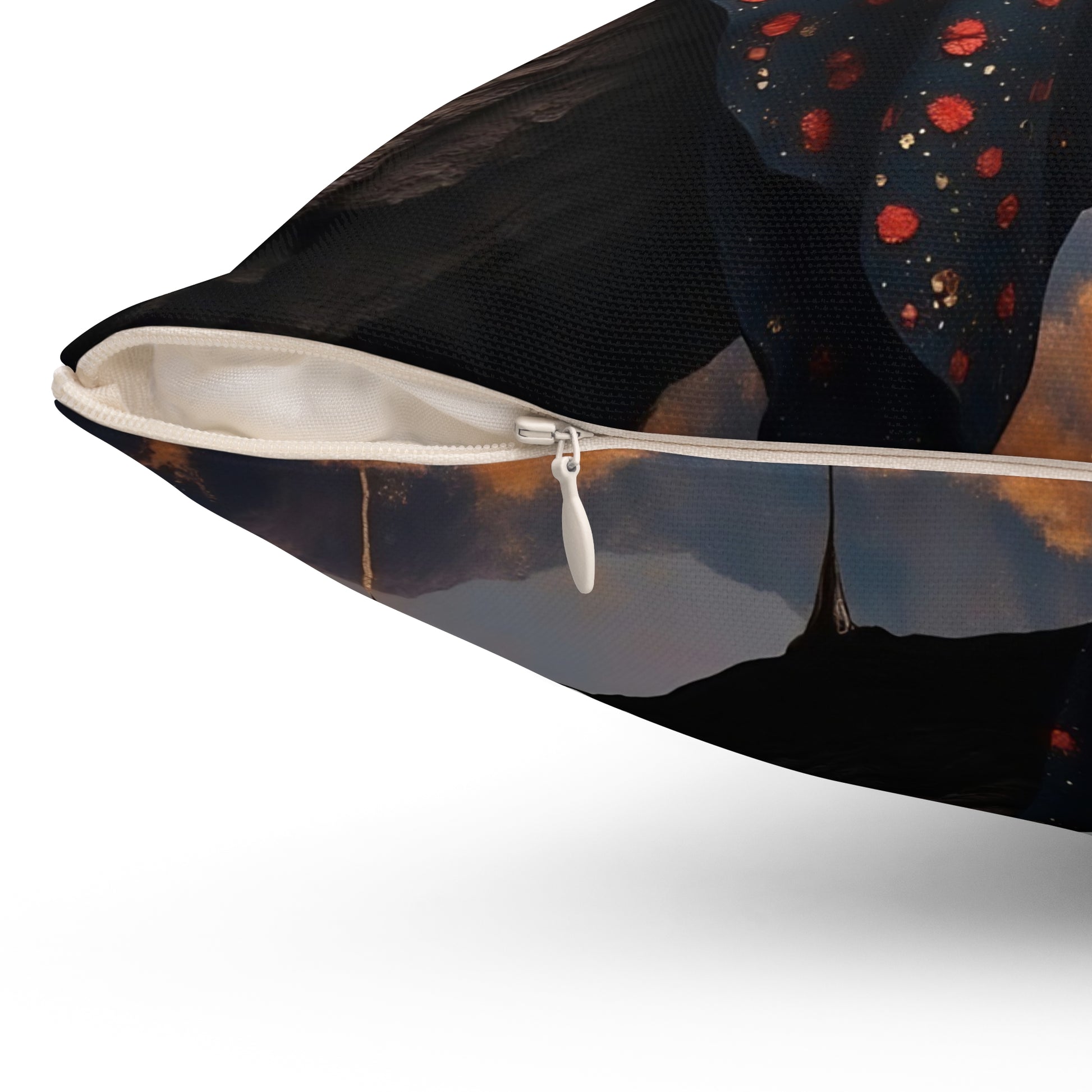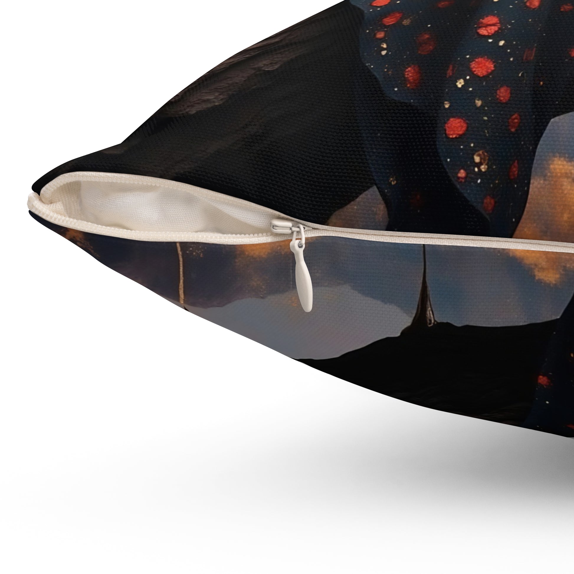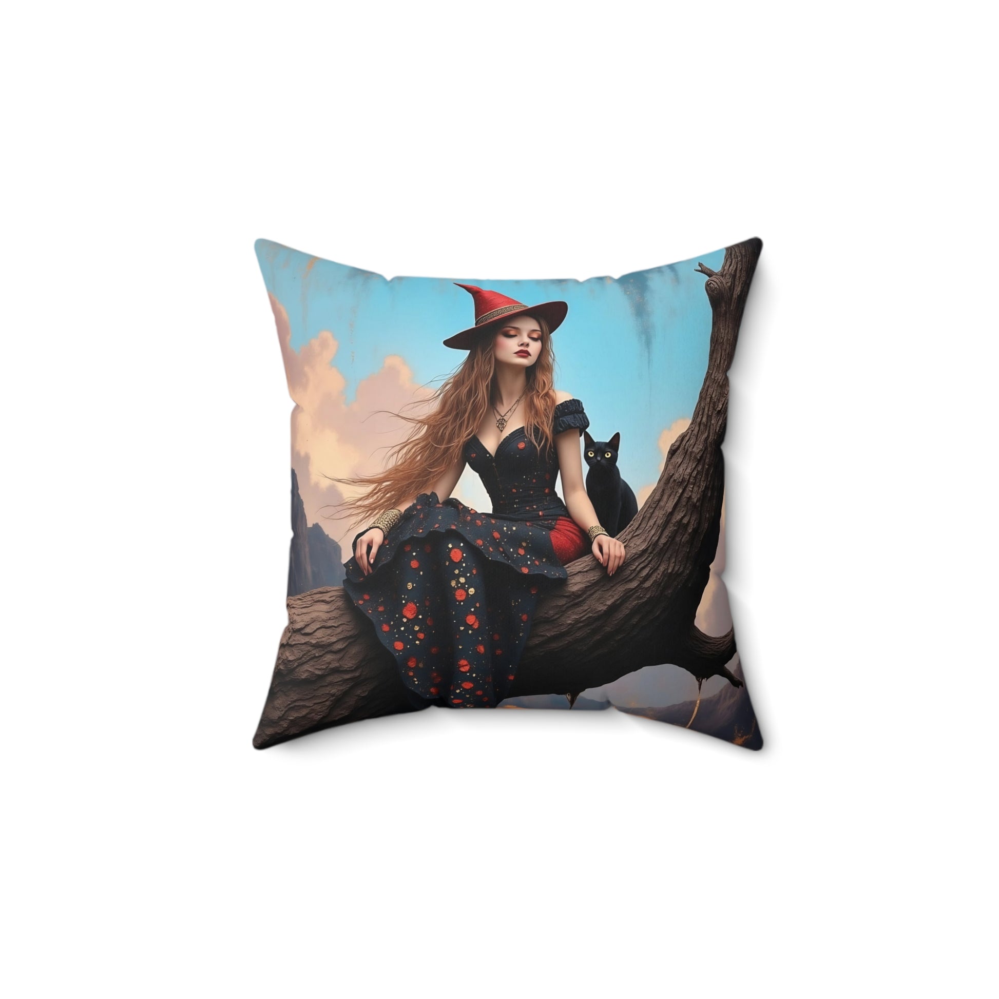 Elegant witch with black cat Square Pillow - by Fairyhill Studio