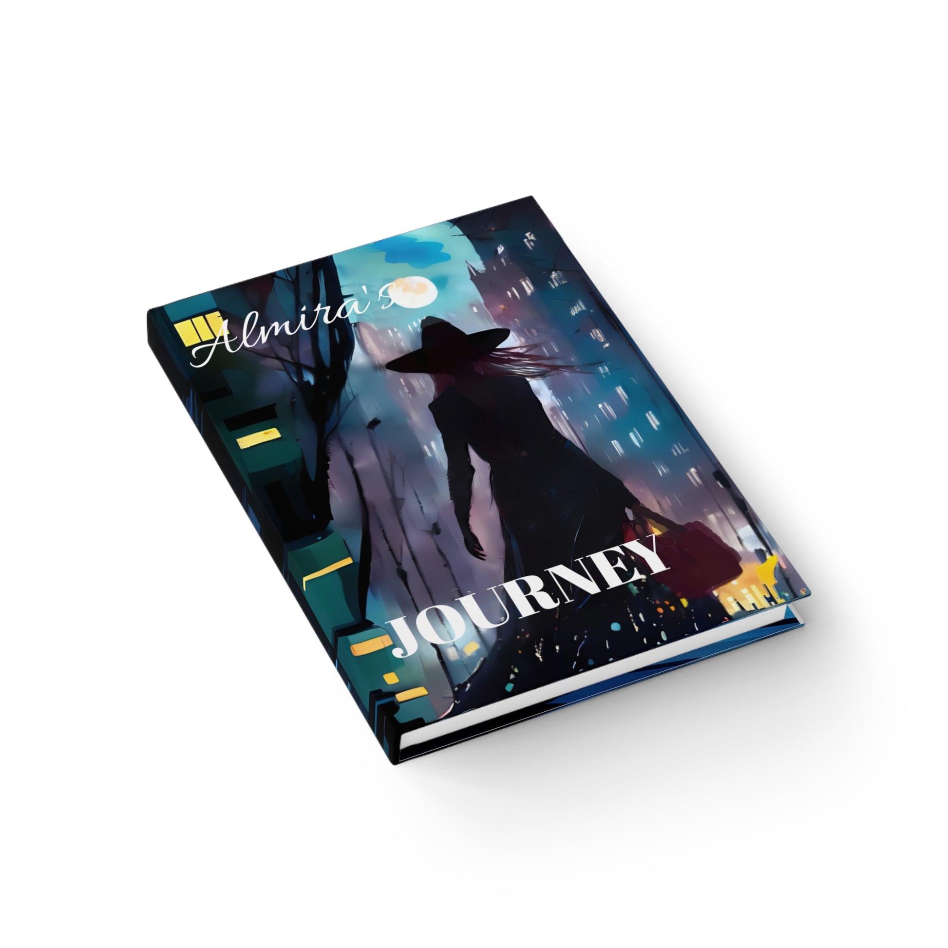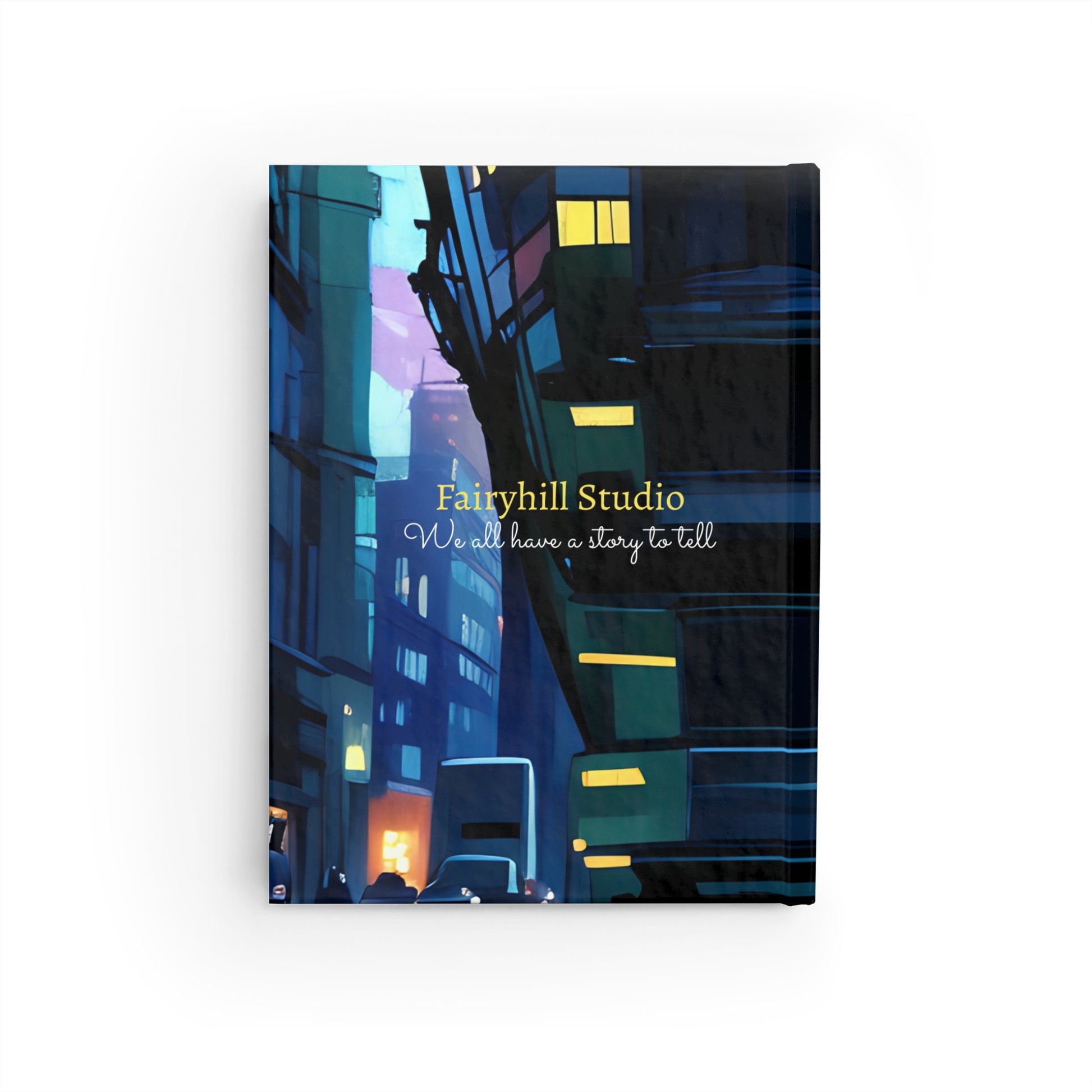 Elegant and whimsical Journey Journal with an inspirational quote 'We All Have a Story to Tell' by Fairyhill Studio. Features a woman overlooking Paris from a balcony at night with shopping bags. Perfect for writers and dreamers, this journal is ideal for jotting down thoughts, memories, and adventures. Great for those who love Paris or have a passion for storytelling. Suitable for everyday use or as a special gift for writers, travelers, or Paris enthusiasts. Relevant for birthdays, holidays, or as a graduation gift.