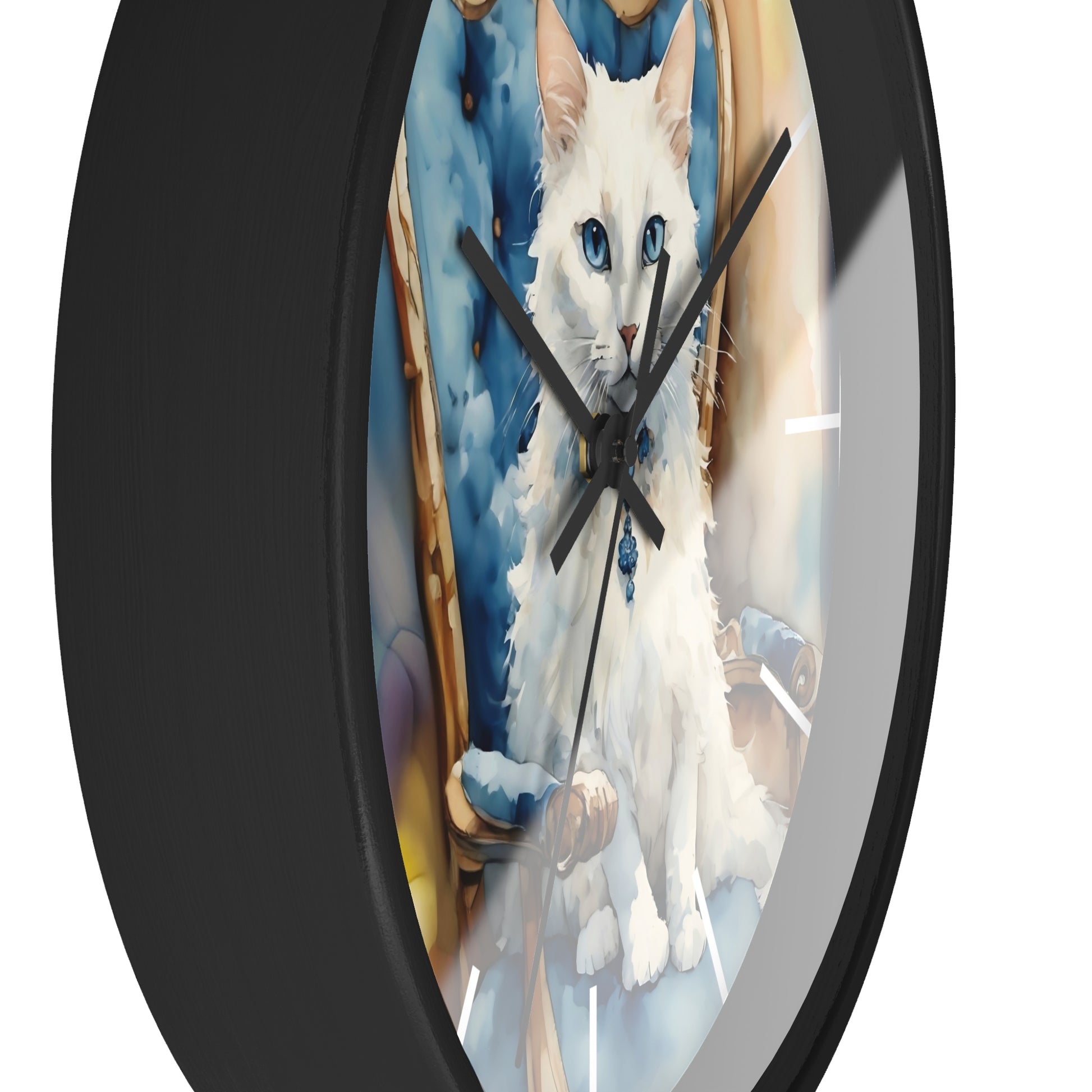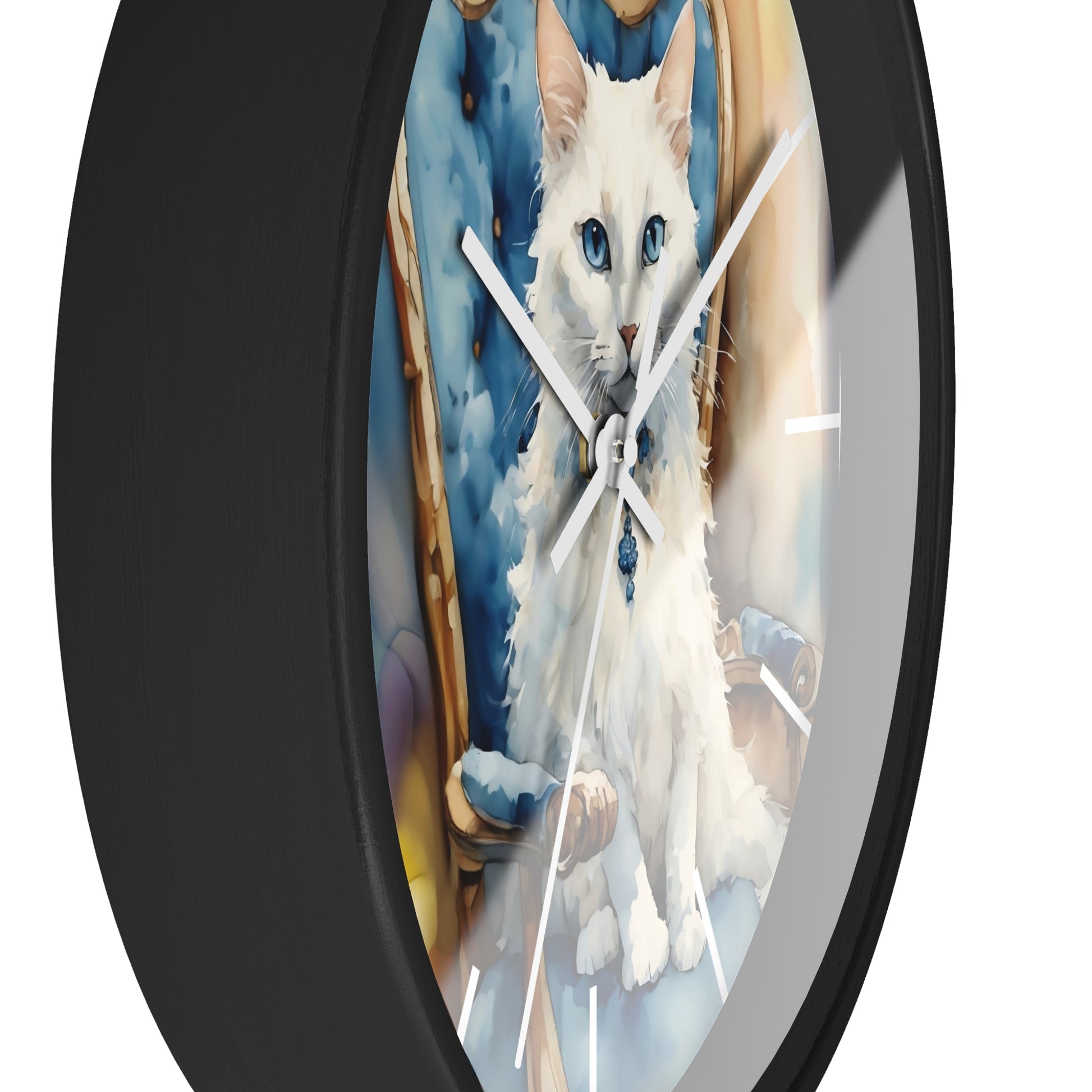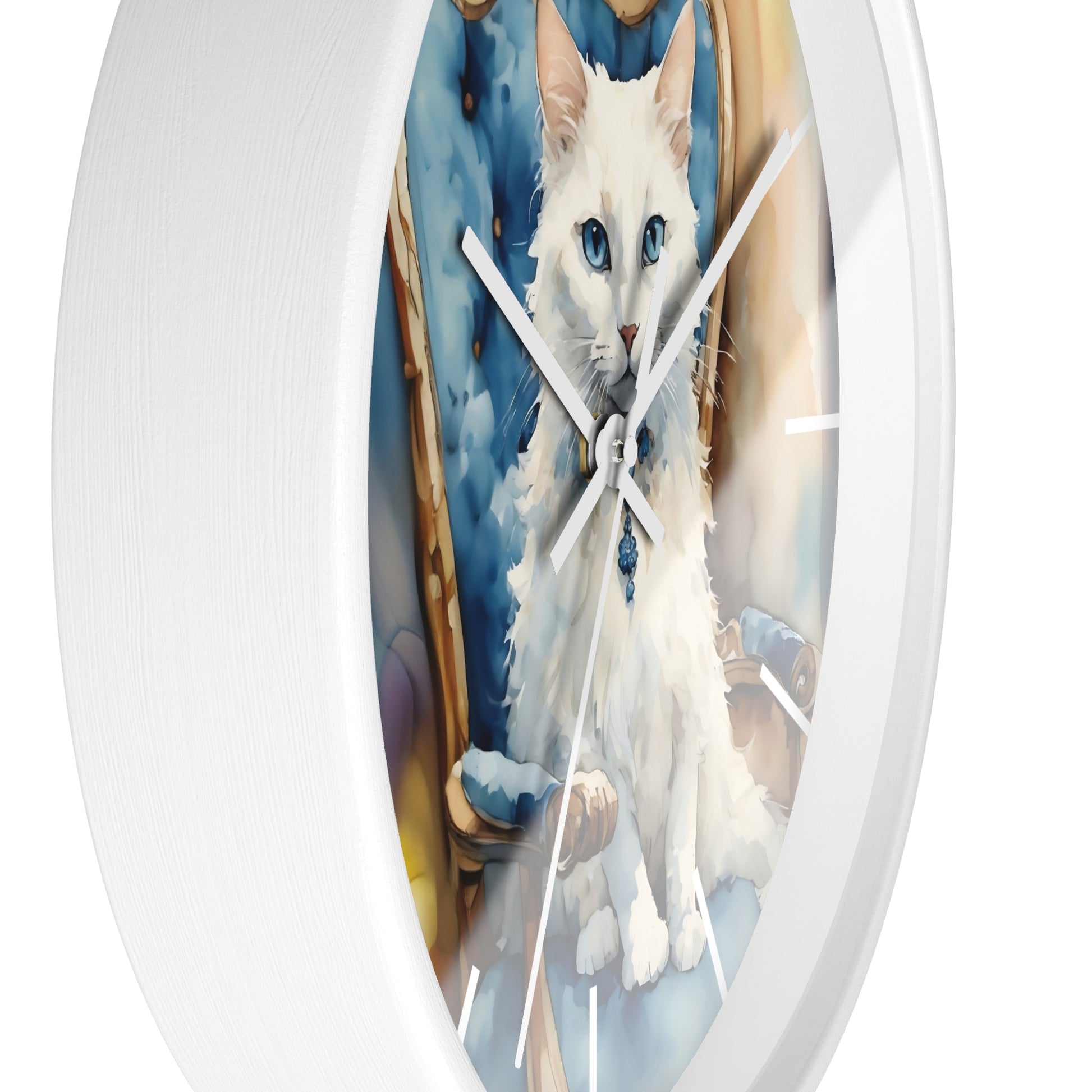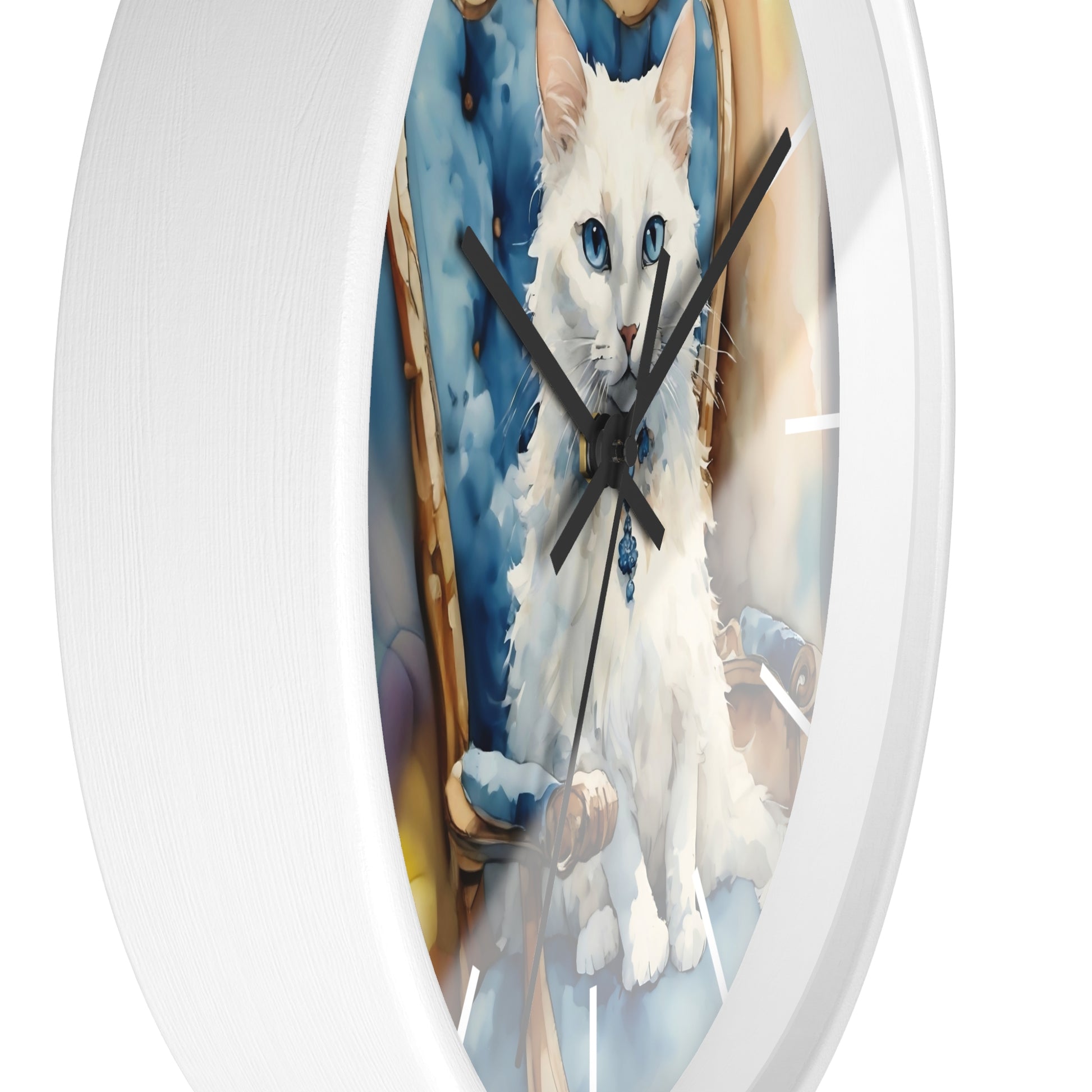This 'White cat with blue eyes' Wall Clock adds a whimsical touch to your home decor. Perfect for cat lovers and those who enjoy a touch of fantasy in their surroundings. Ideal for gifting on birthdays, holidays, or housewarmings.