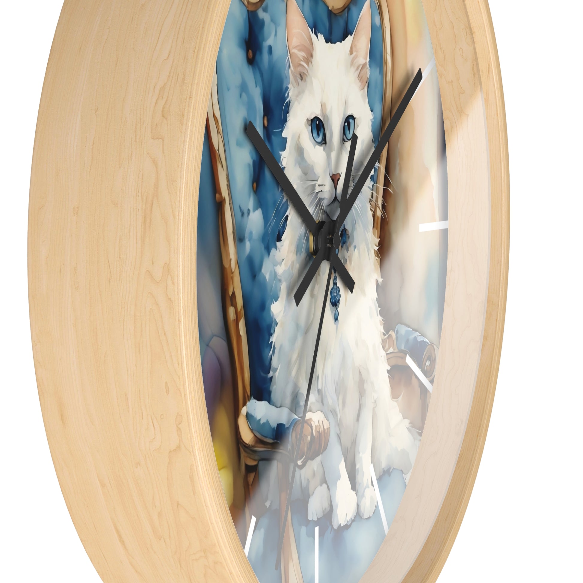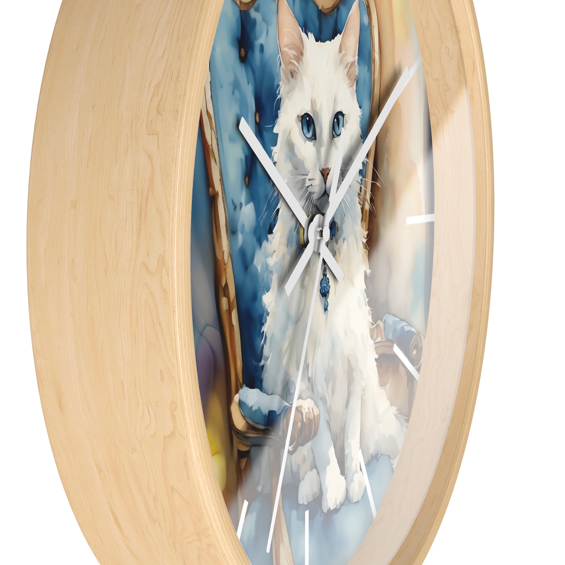 Wall Clock - White Cat with Blue Eyes Art by Fairy Hill Studio