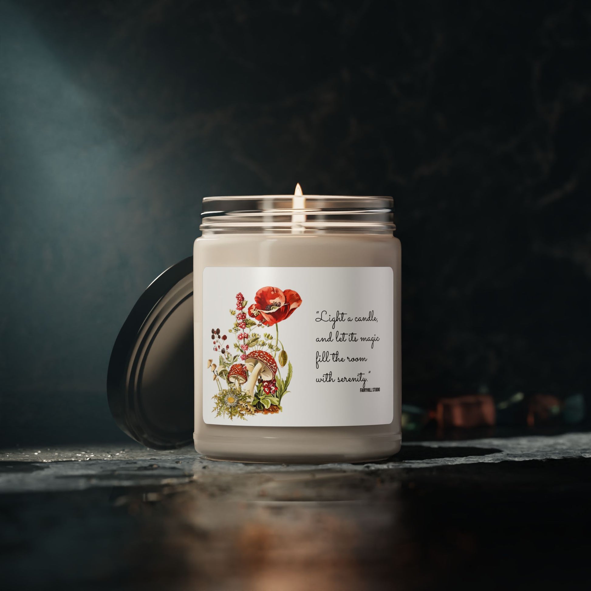Introducing our eco-friendly Soy Candle, perfect for creating a cozy and inviting atmosphere in any space. Each candle not only illuminates your surroundings but also delights your senses with a variety of enchanting scents like Cinnamon Vanilla, Clean Cotton, and Christmas Warmth. It's an ideal gift for friends and family looking to enhance their home decor or simply relax after a long day. Perfect for holidays, homewarming parties, or just as a treat for yourself, this candle elevates any moment into a fragrant experience. Embrace the warmth and charm it brings to your life!Transform your space with the enchanting aroma of this scented soy candle featuring a stunning design of red poppies and Amanita Muscaria mushrooms. Light a candle and let its magic fill the room with serenity, perfect for creating a cozy and calming atmosphere. Ideal for those who appreciate natural, eco-friendly products and enjoy the beauty of unique and artistic candle designs. Perfect for holidays, birthdays, or any special occasion.