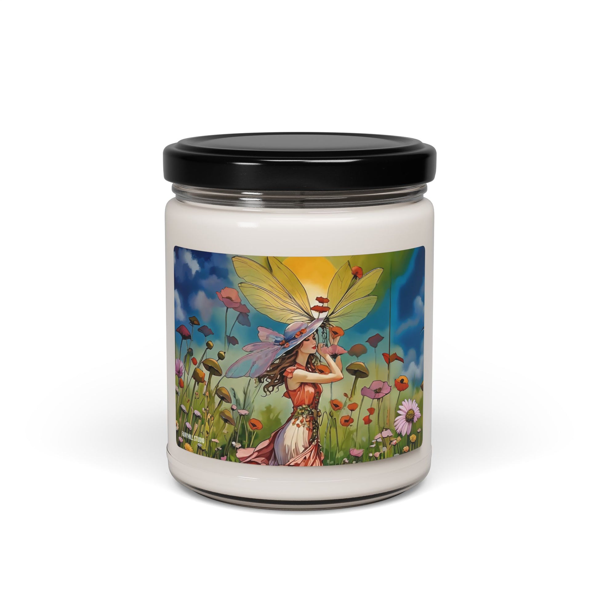 Soy Candle Art of a girl with summer hat in summer gathering flowers