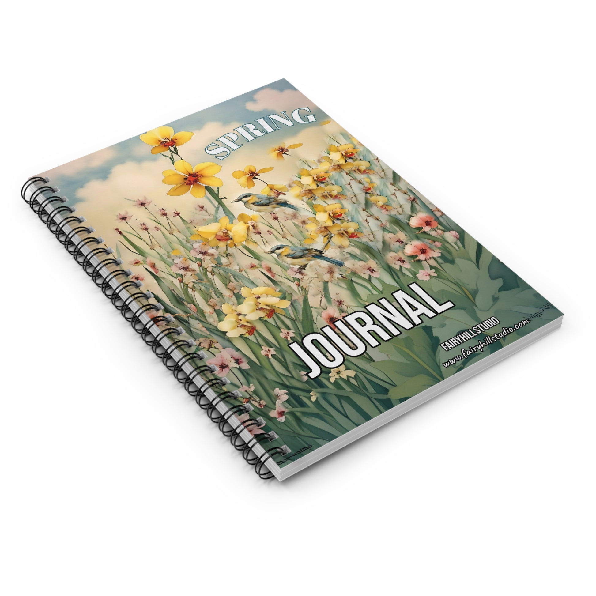 Floral Journal - Ruled Line with Yellow Spring flowers and Bird Art by Fairy Hill Studio