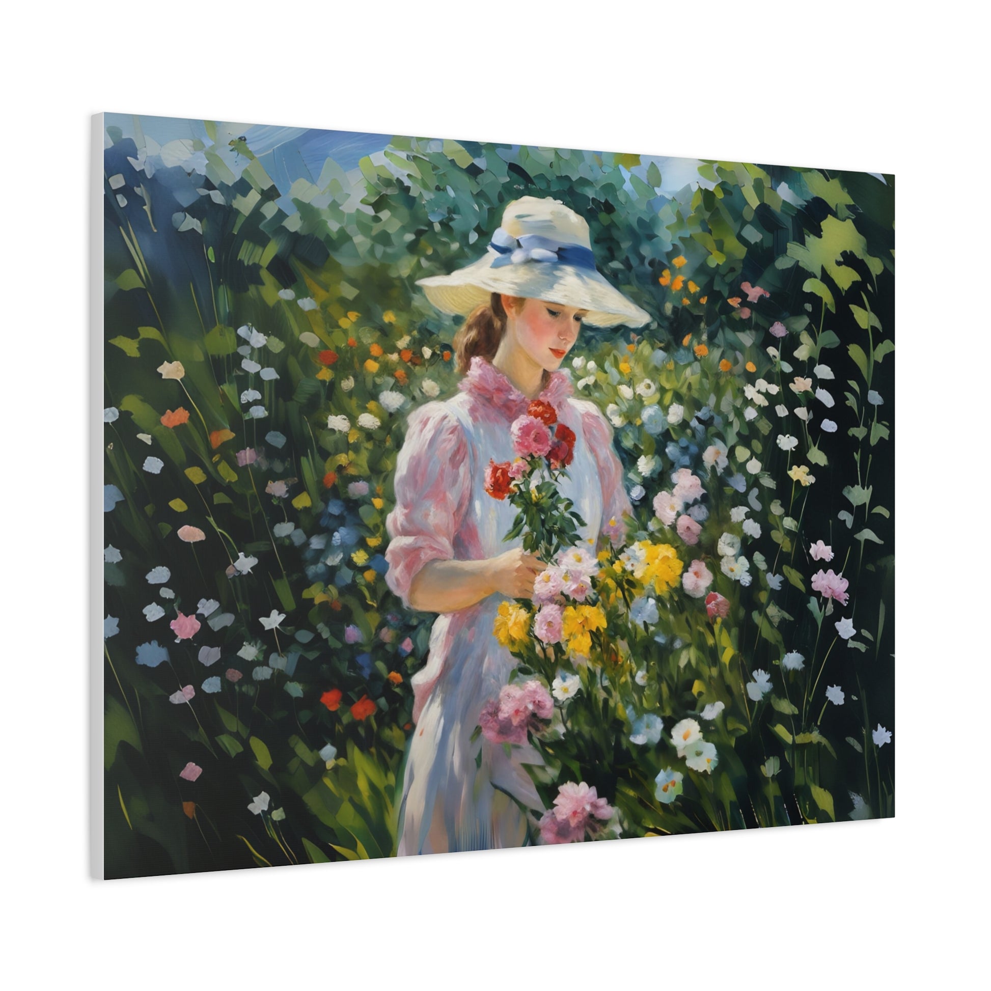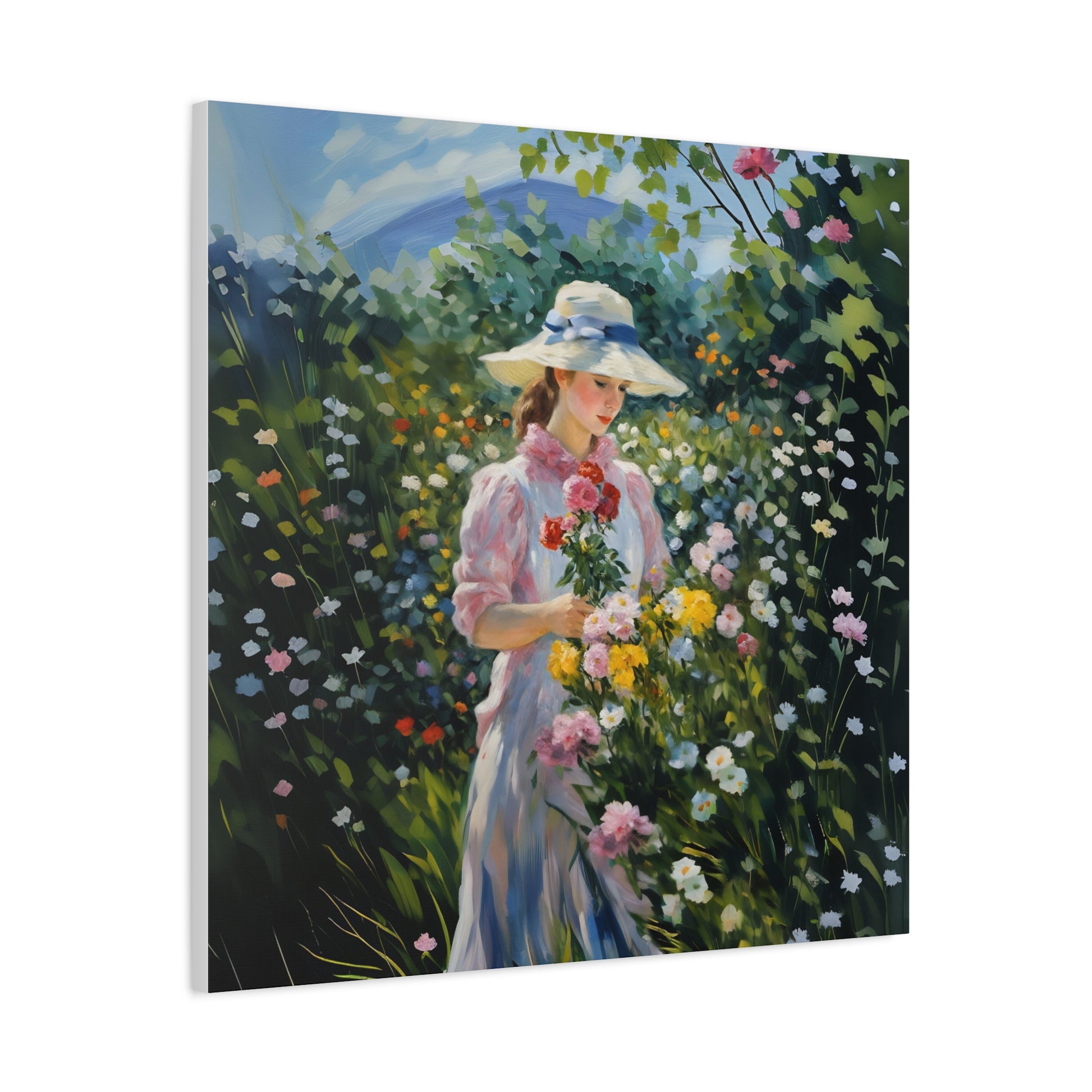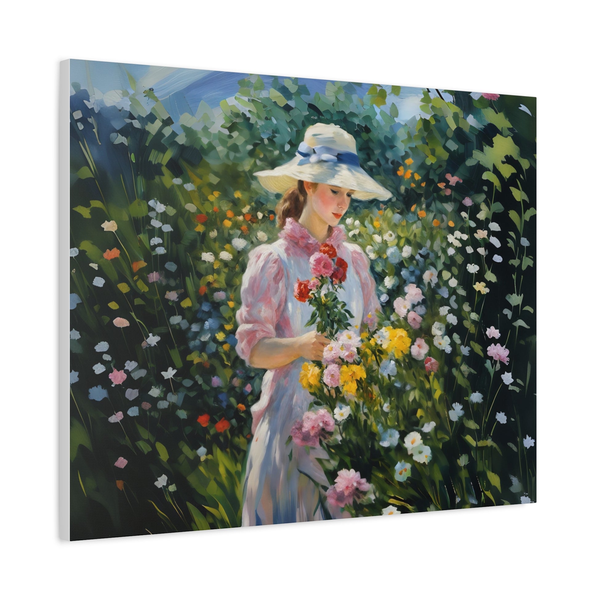Elevate your space with this Monet Style Floral Serenity Canvas Art featuring an elegant woman with a hat and flower basket in a flower garden. The stretched matte canvas exudes a serene and elegant vibe, perfect for art lovers and those who appreciate classic beauty. Ideal for adding a touch of sophistication to any room, this canvas art is relevant for home decor, special occasions, and gifts.