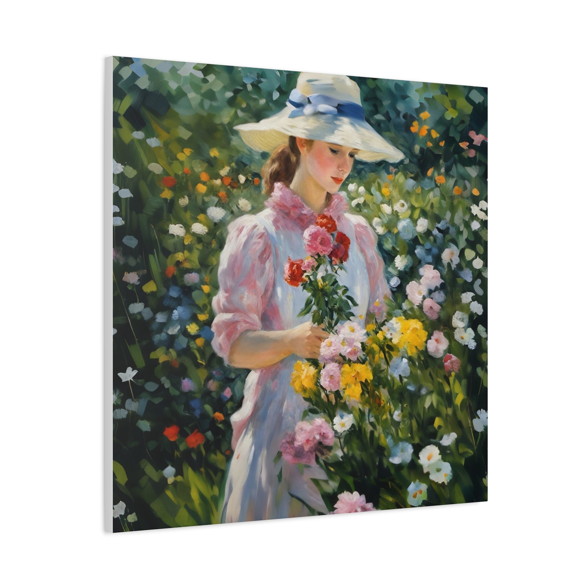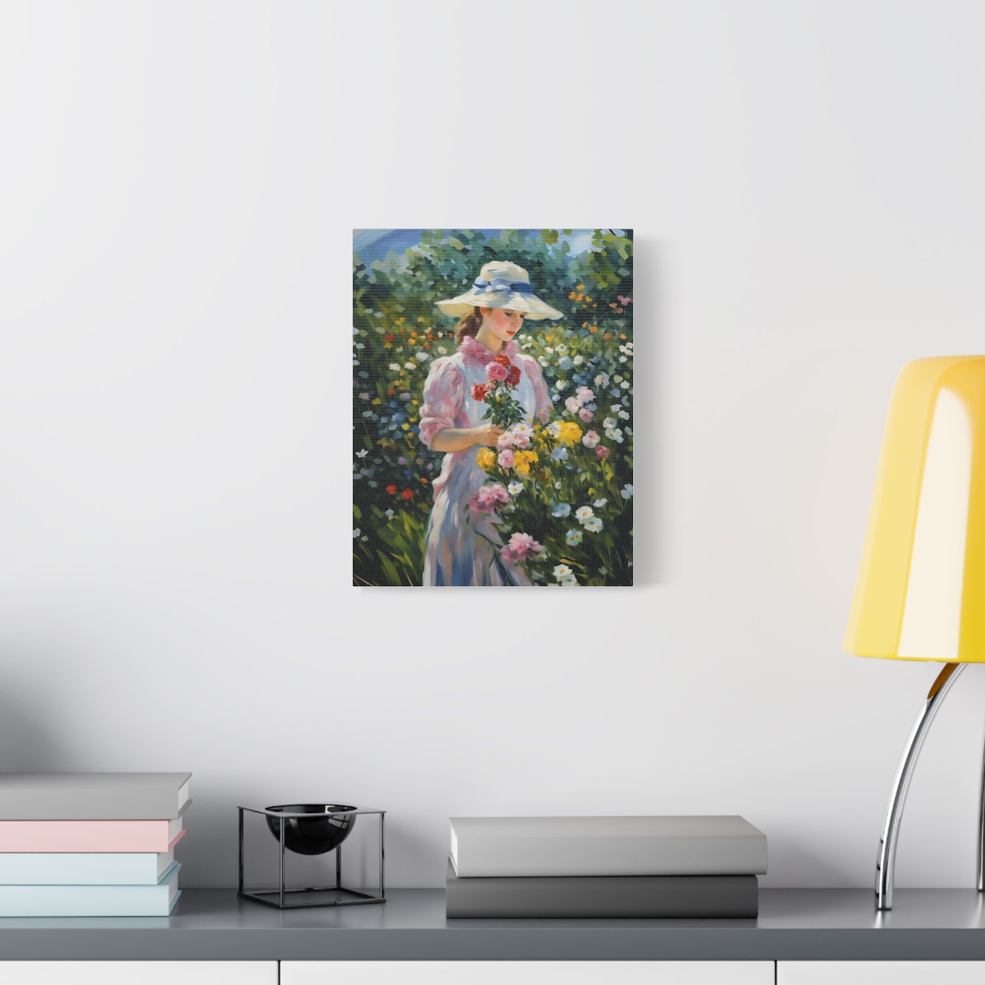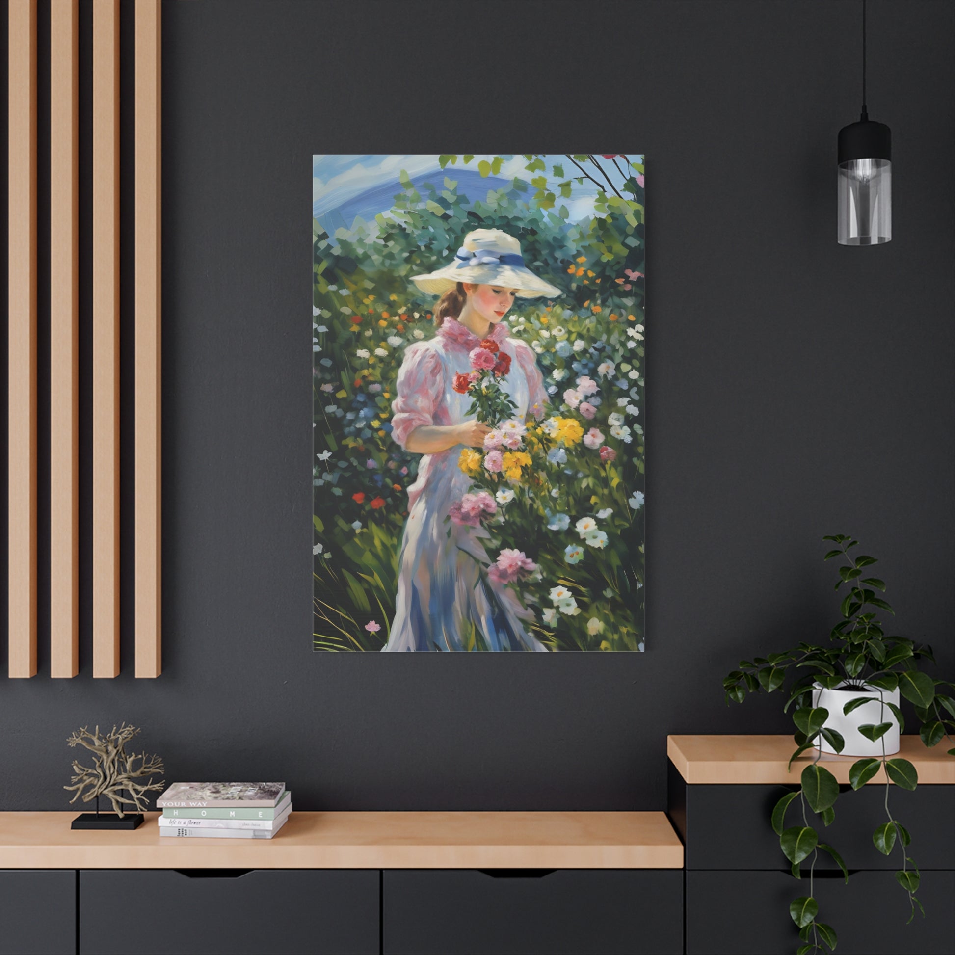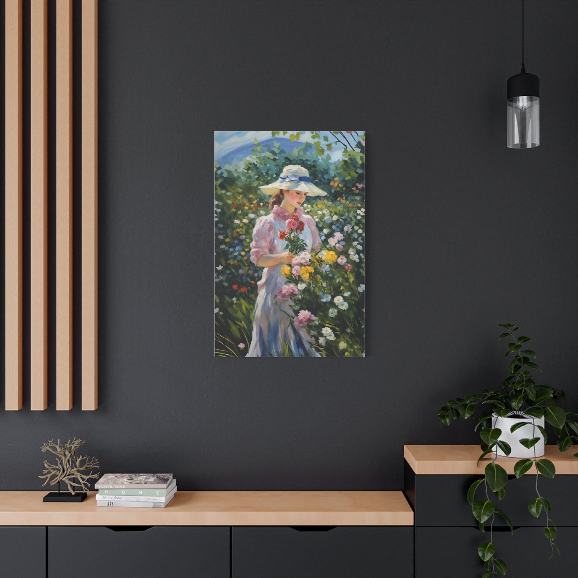 Monet style Art Elegant Woman with hat and flower basket in a Flower Garden by Fairyhill studio Transform your living space with this stunning Matte Canvas! Featuring vibrant floral artwork, this piece adds a touch of elegance and serenity to any room. Perfect for those who appreciate nature and beauty, it creates a calming atmosphere in your home or office. Ideal for gifting on occasions like housewarming parties, birthdays, or holidays, this canvas is a thoughtful touch for loved ones who enjoy art and decor. Whether it’s styled in a cozy reading nook or a cheerful living room, this piece will surely become a conversation starter.