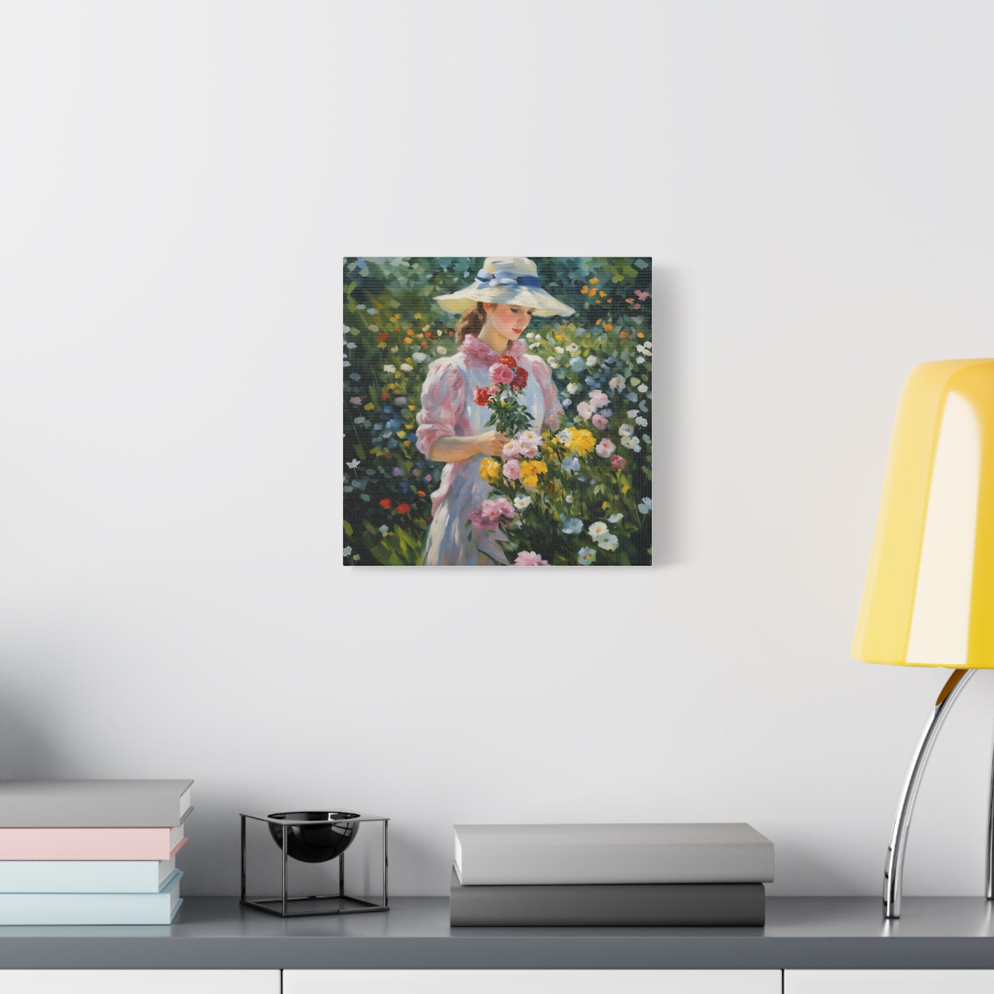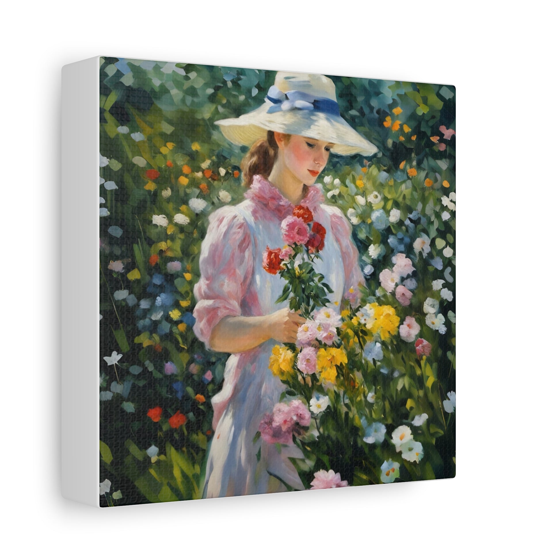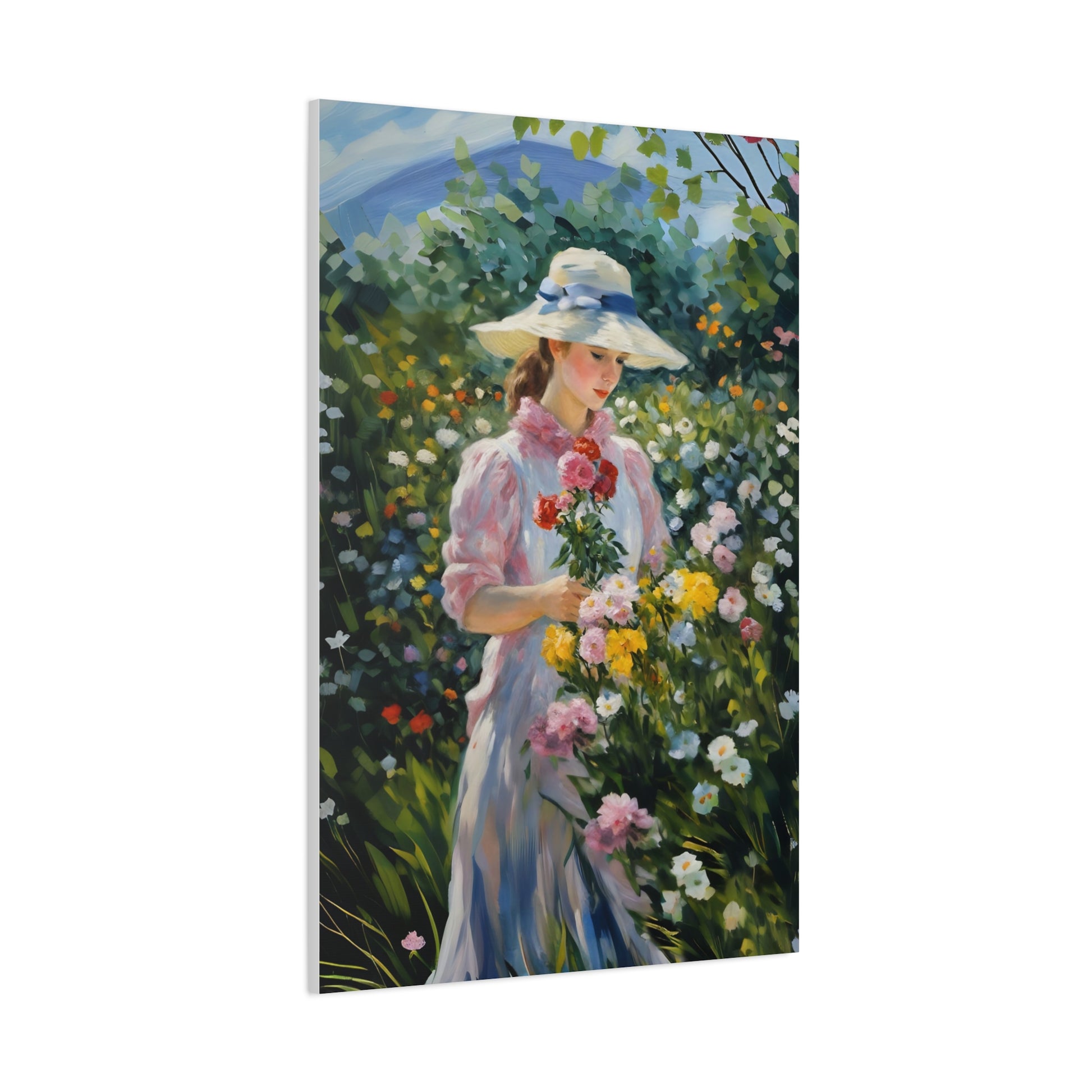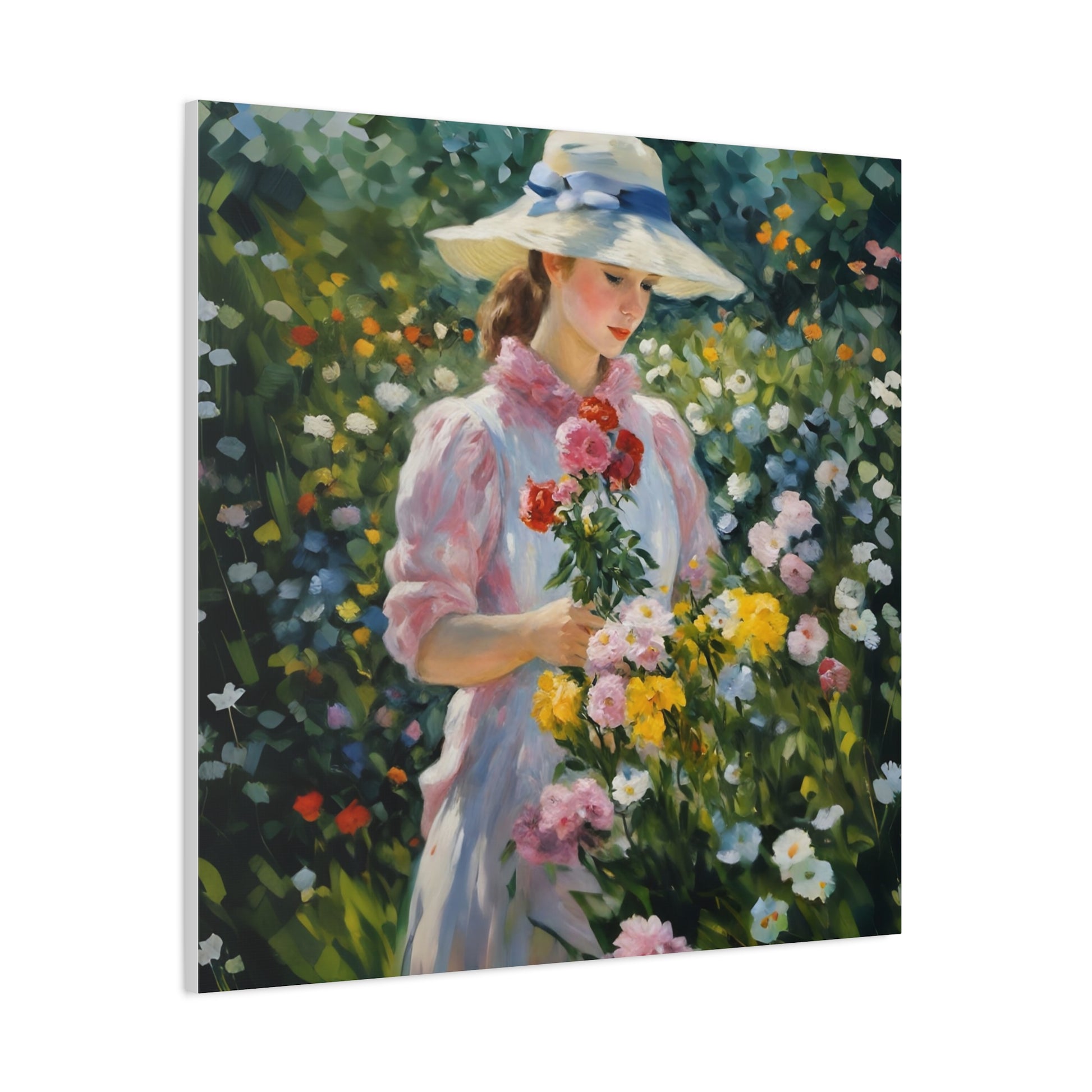 Monet style Art Elegant Woman with hat and flower basket in a Flower Garden by Fairyhill studio Transform your living space with this stunning Matte Canvas! Featuring vibrant floral artwork, this piece adds a touch of elegance and serenity to any room. Perfect for those who appreciate nature and beauty, it creates a calming atmosphere in your home or office. Ideal for gifting on occasions like housewarming parties, birthdays, or holidays, this canvas is a thoughtful touch for loved ones who enjoy art and decor. Whether it’s styled in a cozy reading nook or a cheerful living room, this piece will surely become a conversation starter.