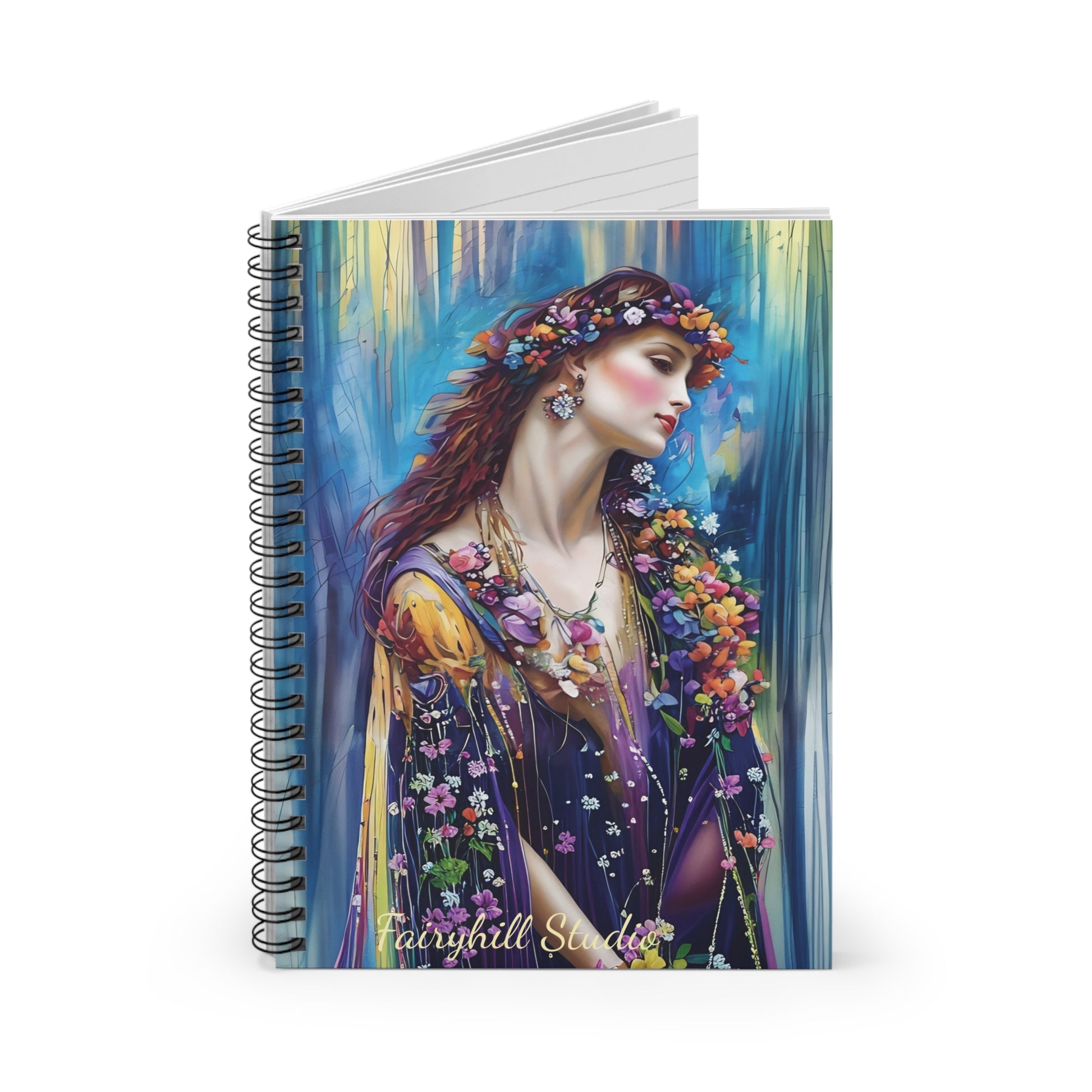 A whimsical and enchanting blue forest fairy art spiral notebook perfect for jotting down thoughts, ideas, and memories. Ideal for those who love fantasy and nature themes, this notebook is great for journaling or writing stories. Perfect for artists, writers, and dreamers. Relevant for birthdays, back to school, and any fairy-themed celebrations.