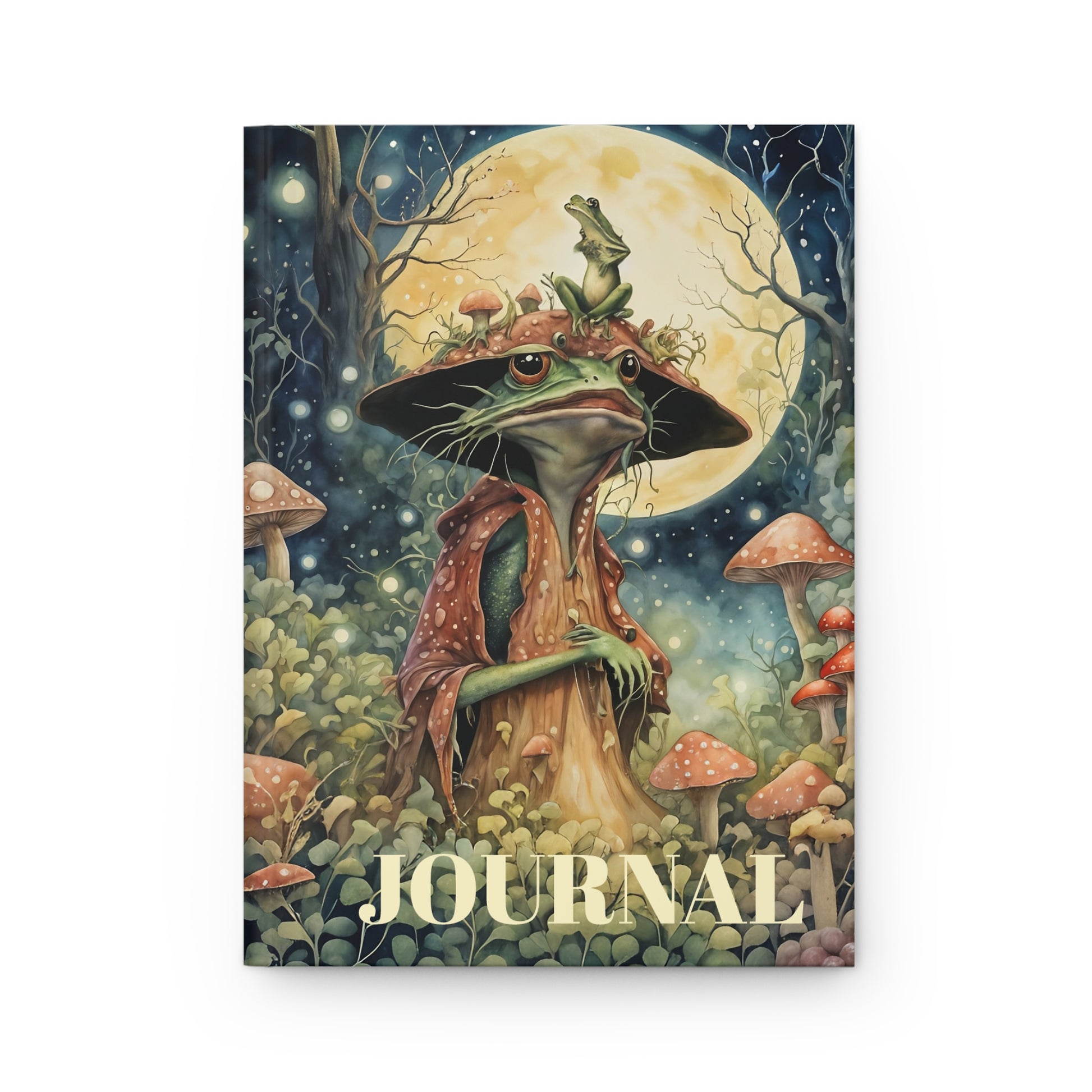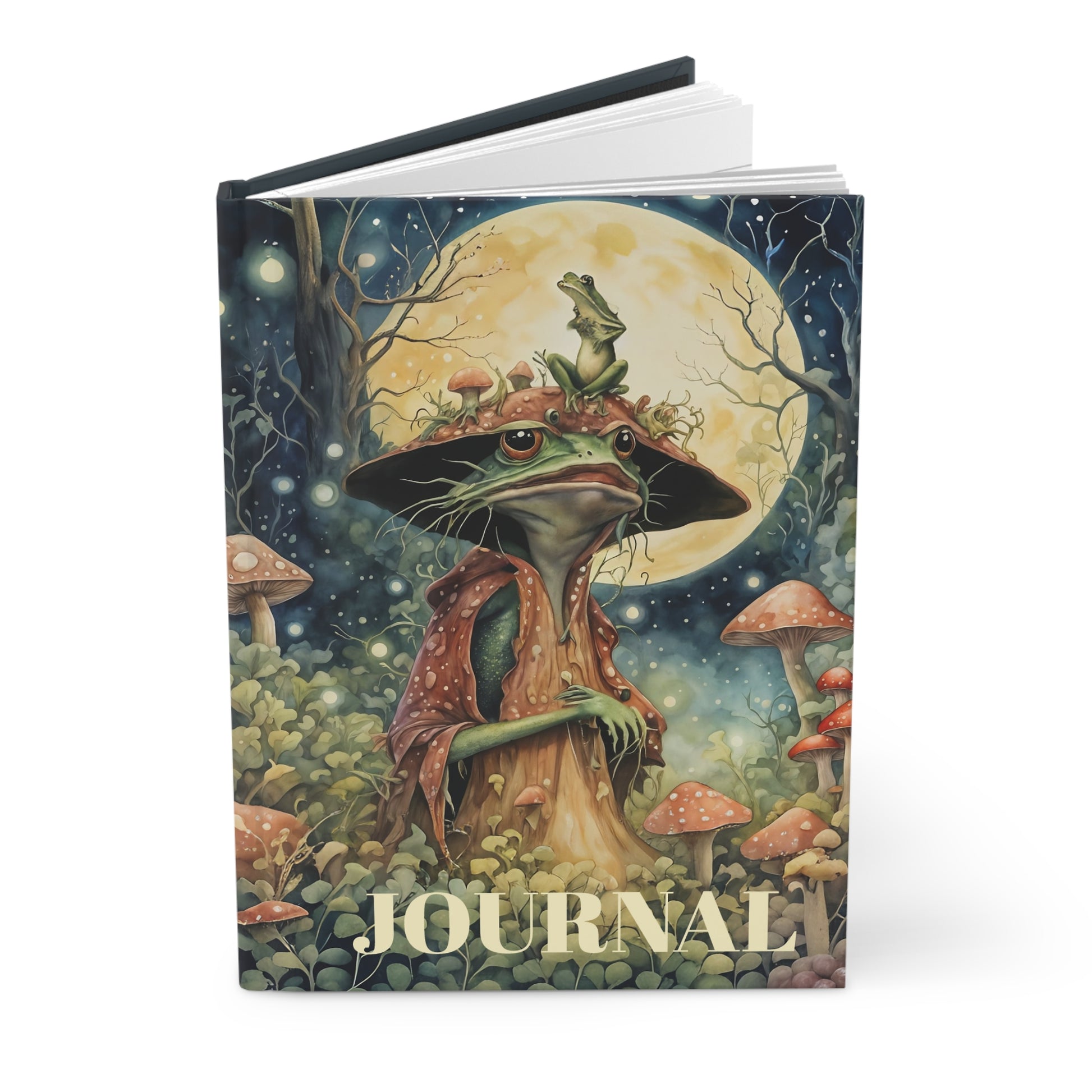 Hardcover Customized Mushroom Frog fairy art Mindful  Journal Hardcover by fairyhill studio. This journal gives a whimsical and nature-inspired vibe, perfect for nature lovers, gardeners, and bee enthusiasts. Ideal for journaling, note-taking, or sketching. Great for gifting on birthdays, Mother's Day, or as a back-to-school gift.