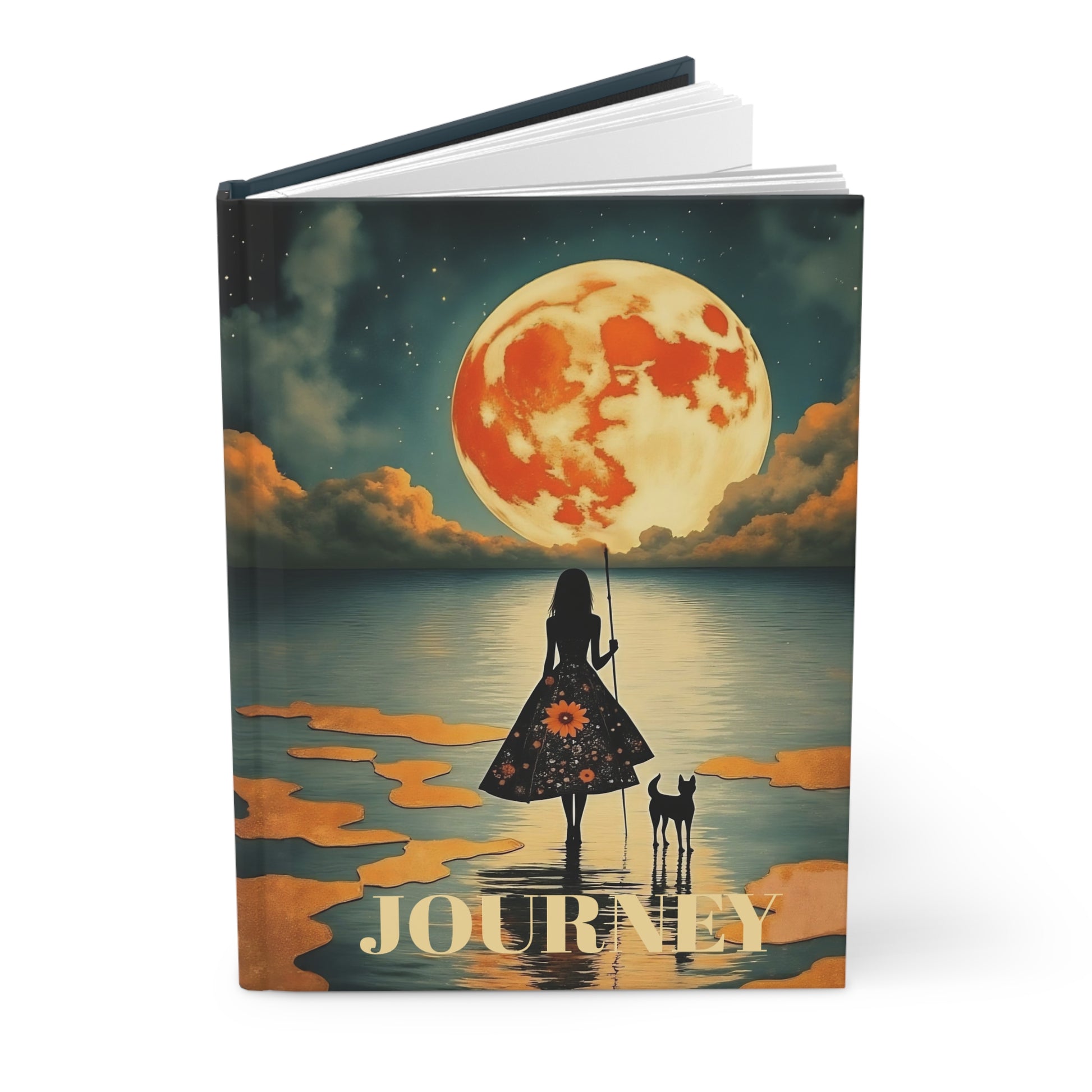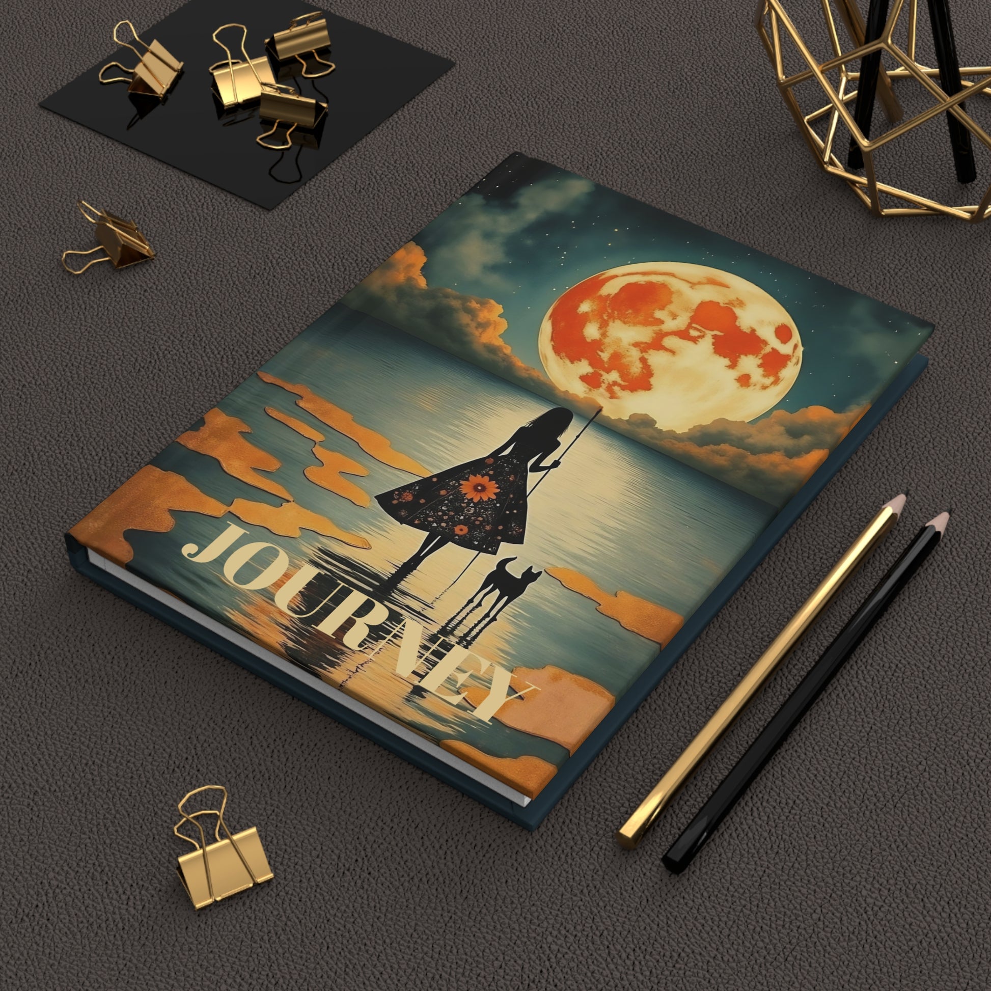 Girl with a fullmoon balloon Journal hard Cover ,Notebook gift art Matte
