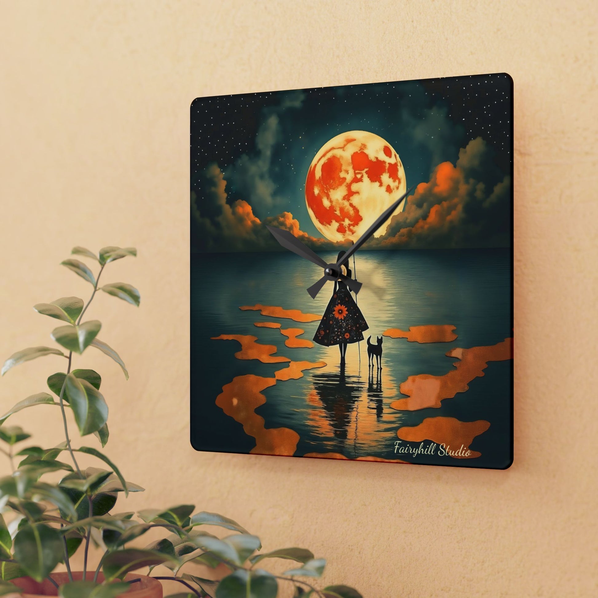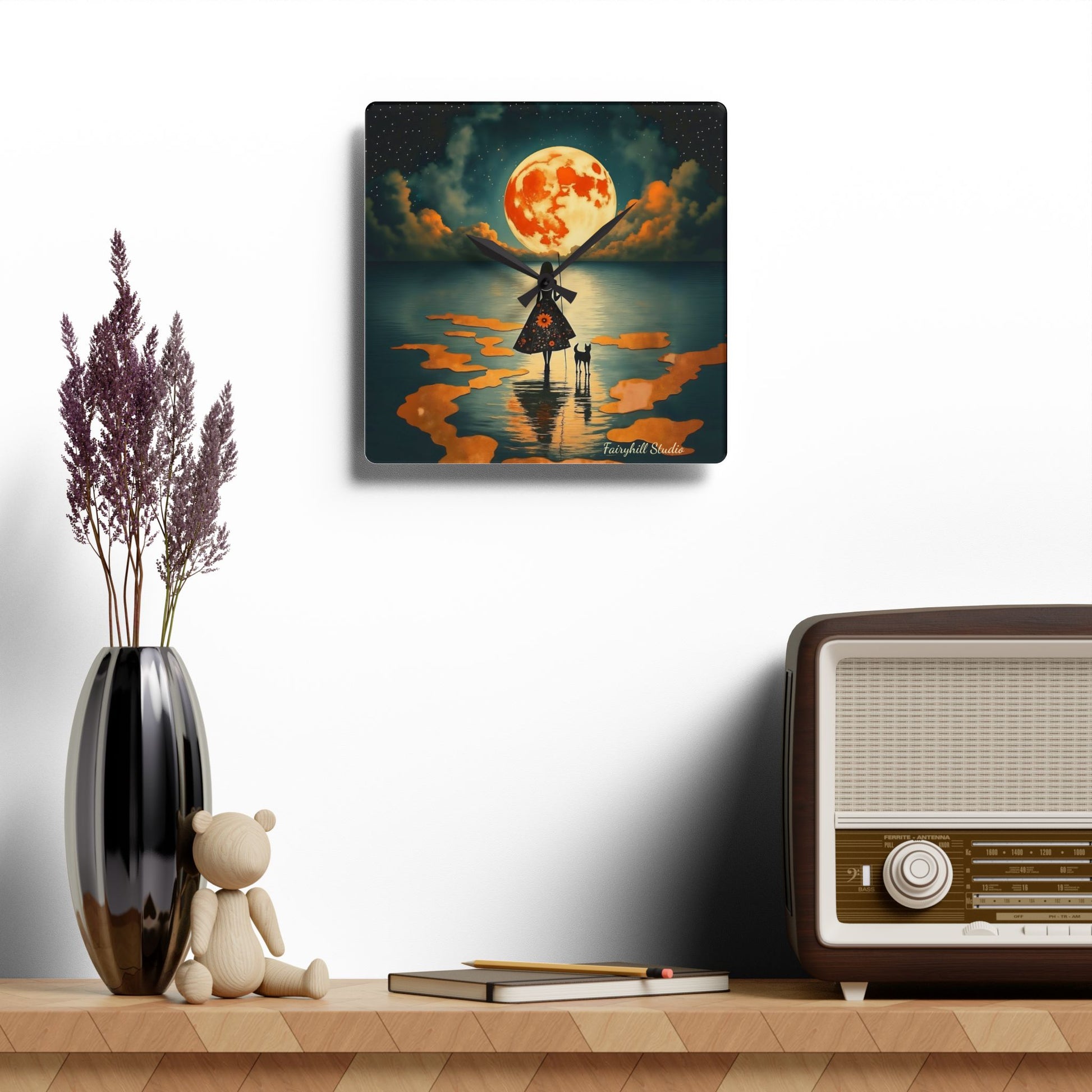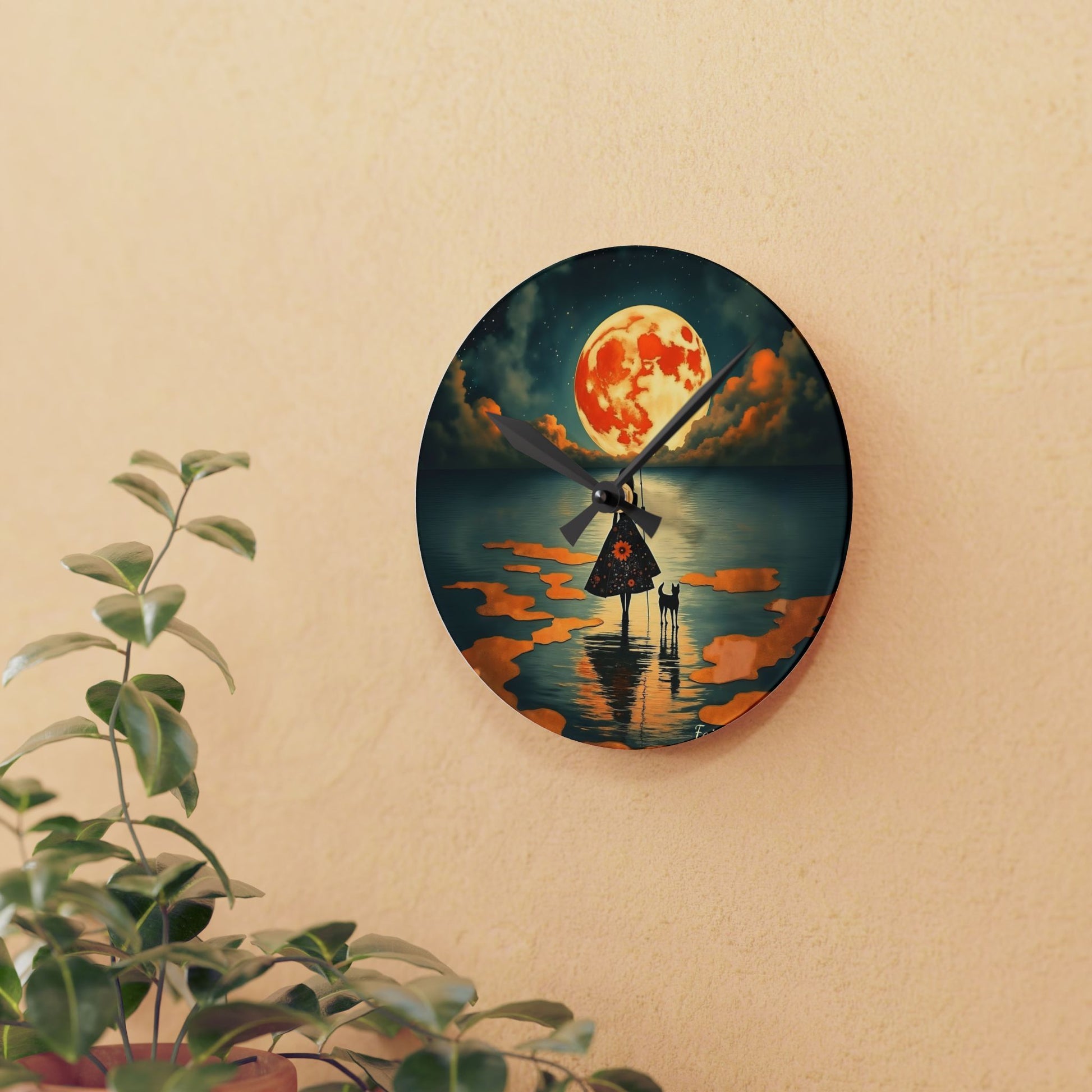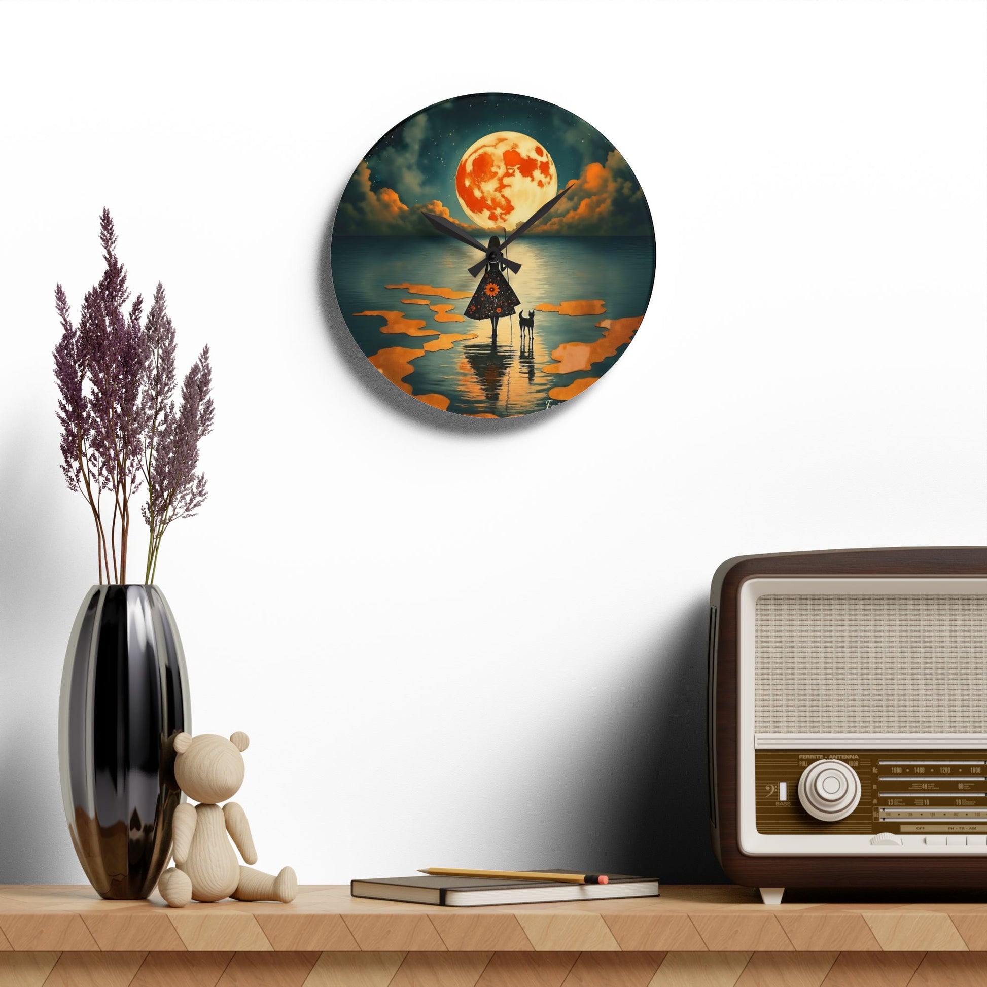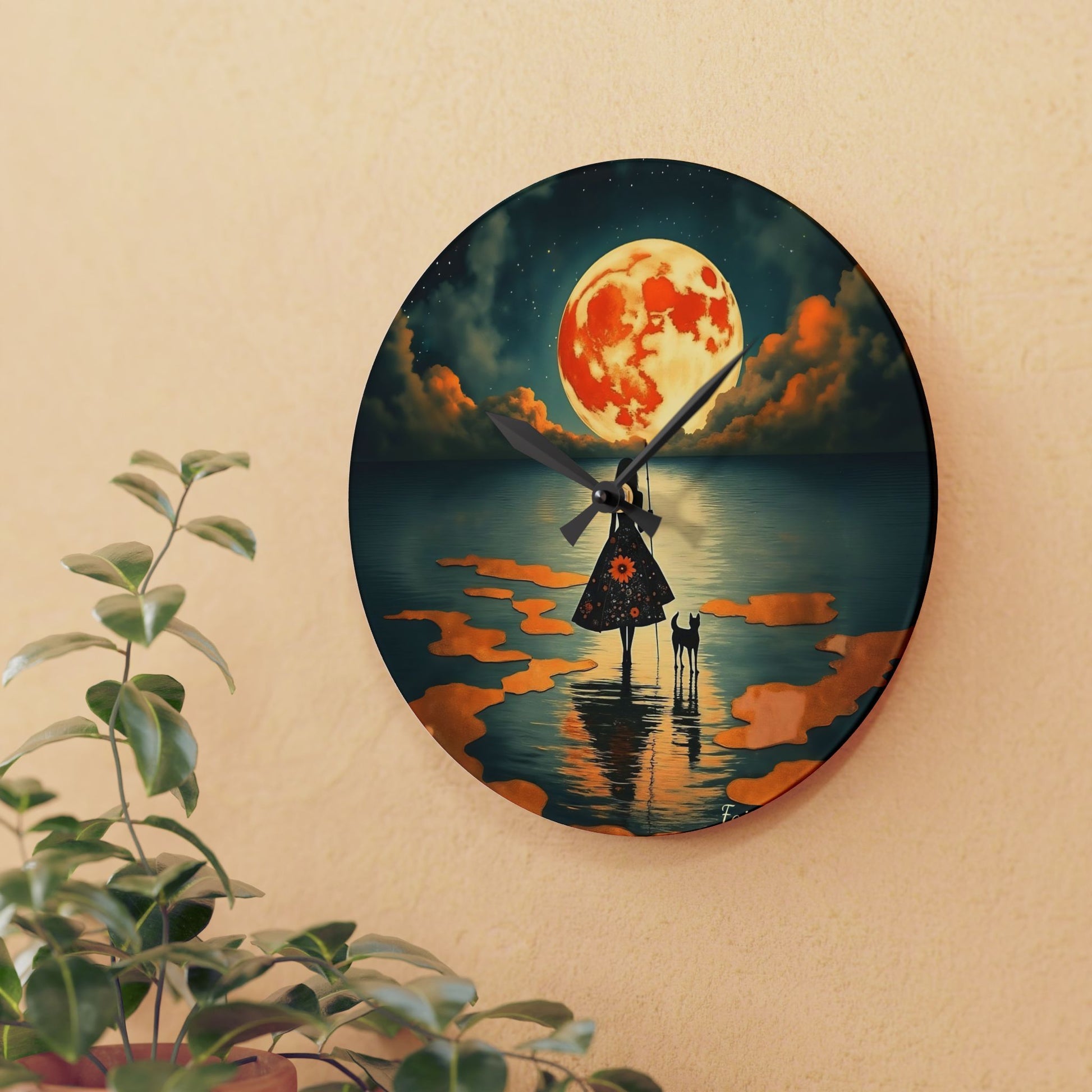 Girl with a fullmoon balloon Wall clock Gift Acrylic Wall Clock