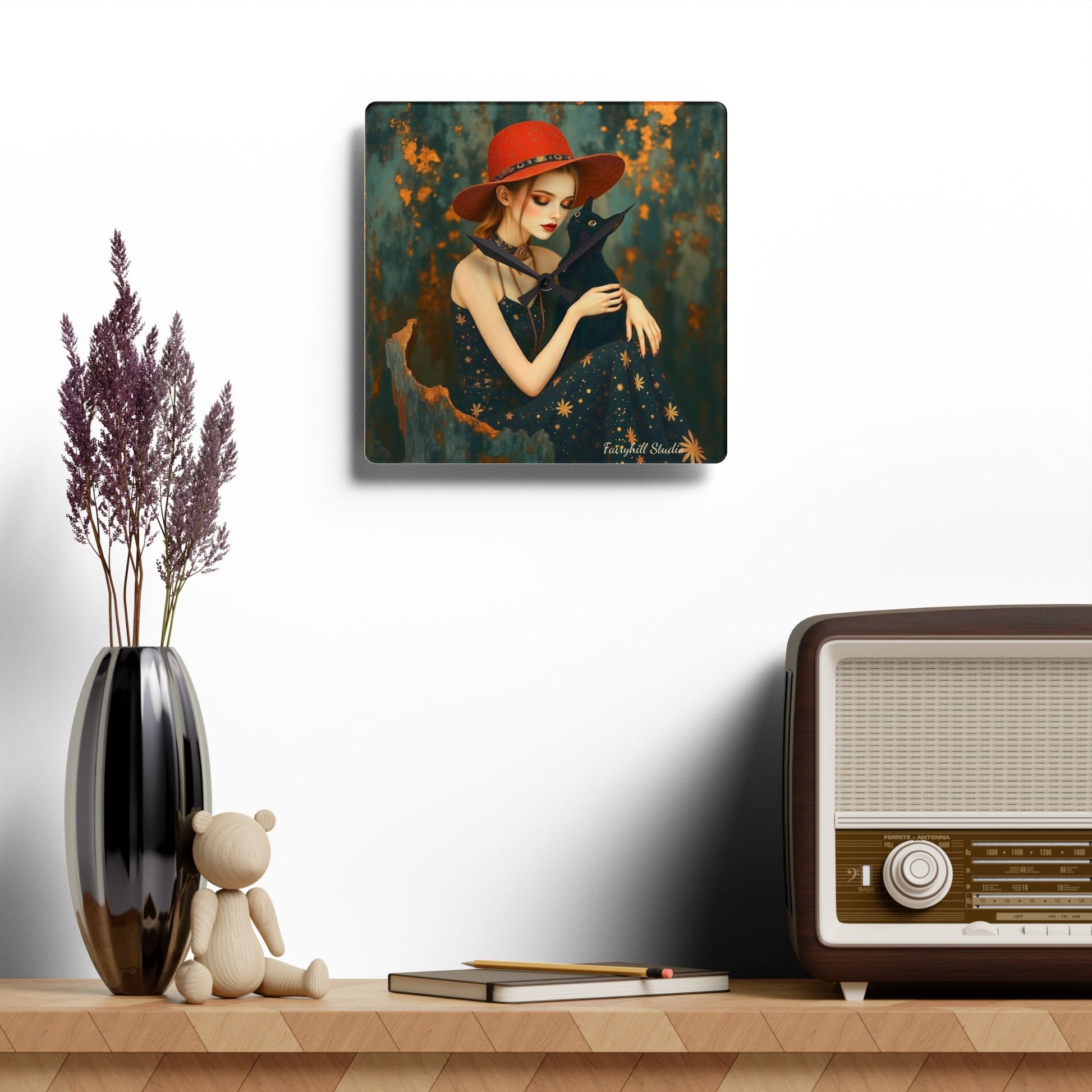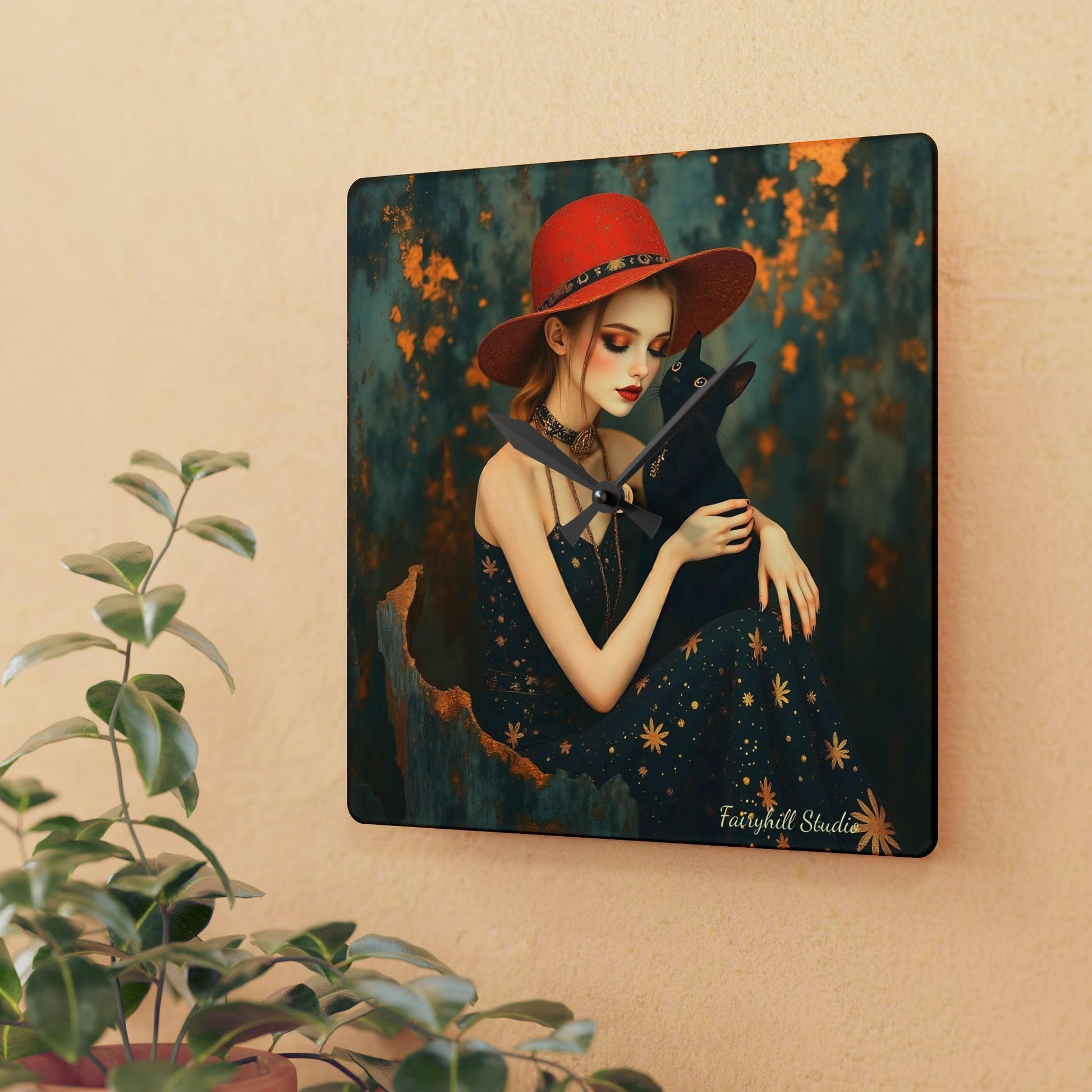 Bring the serene and magical feeling of whimsy into your home with this Acrylic Wall Clock Girl Girl with black cat Mindfulness art Acrylic Wall Clock full moon witch by Fairyhill.Studio Perfect for whimsical art lovers owl lovers and holiday enthusiasts, this wall boho clock adds a touch of whimsy and nature to any room.