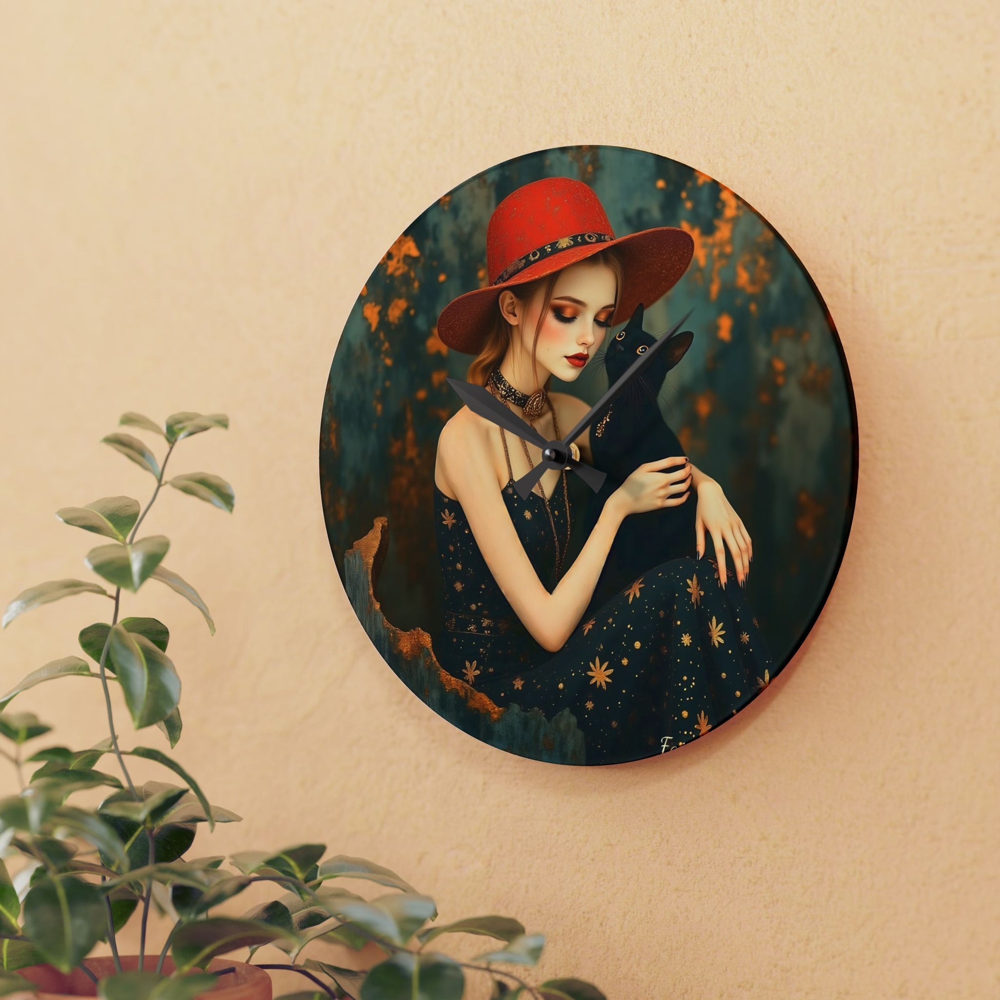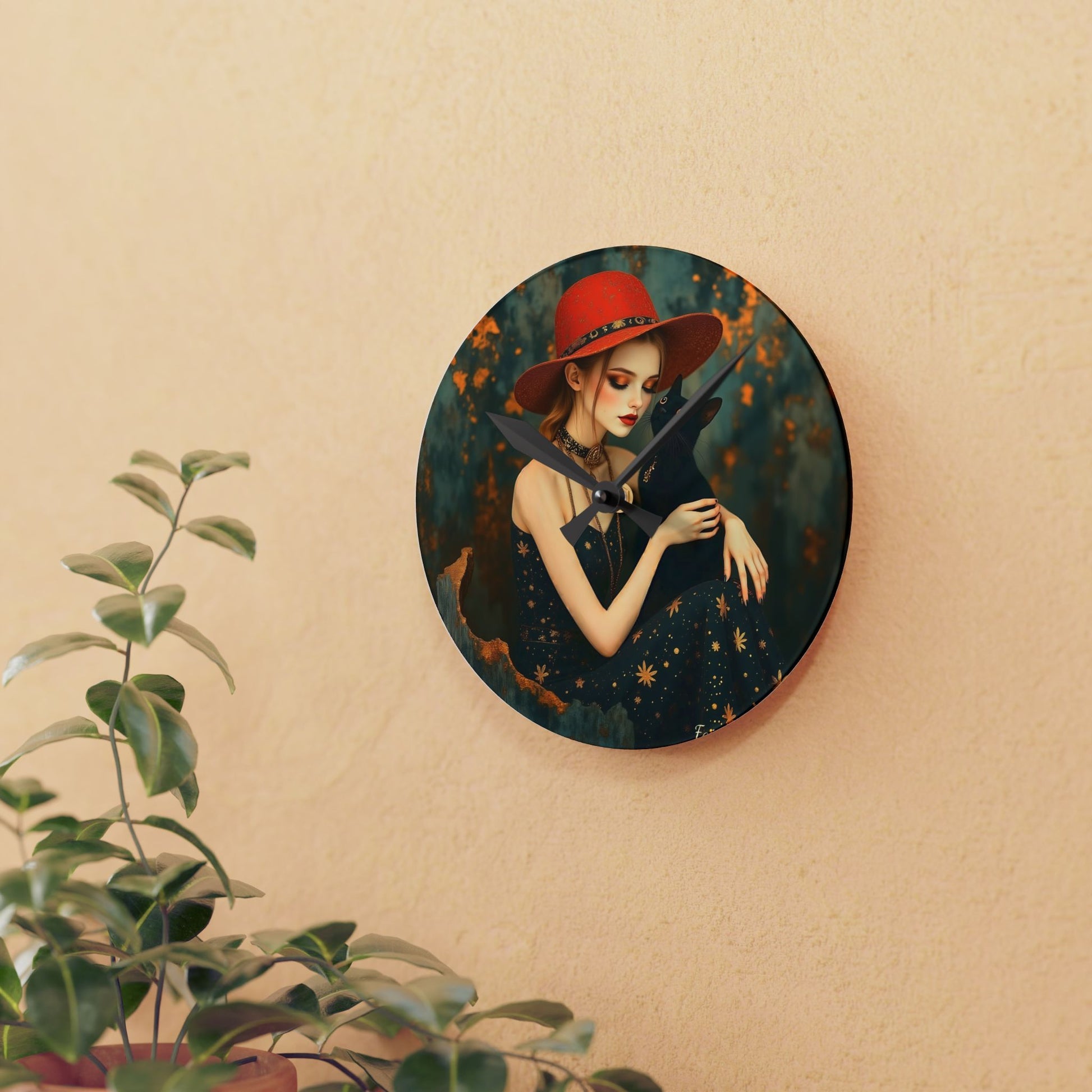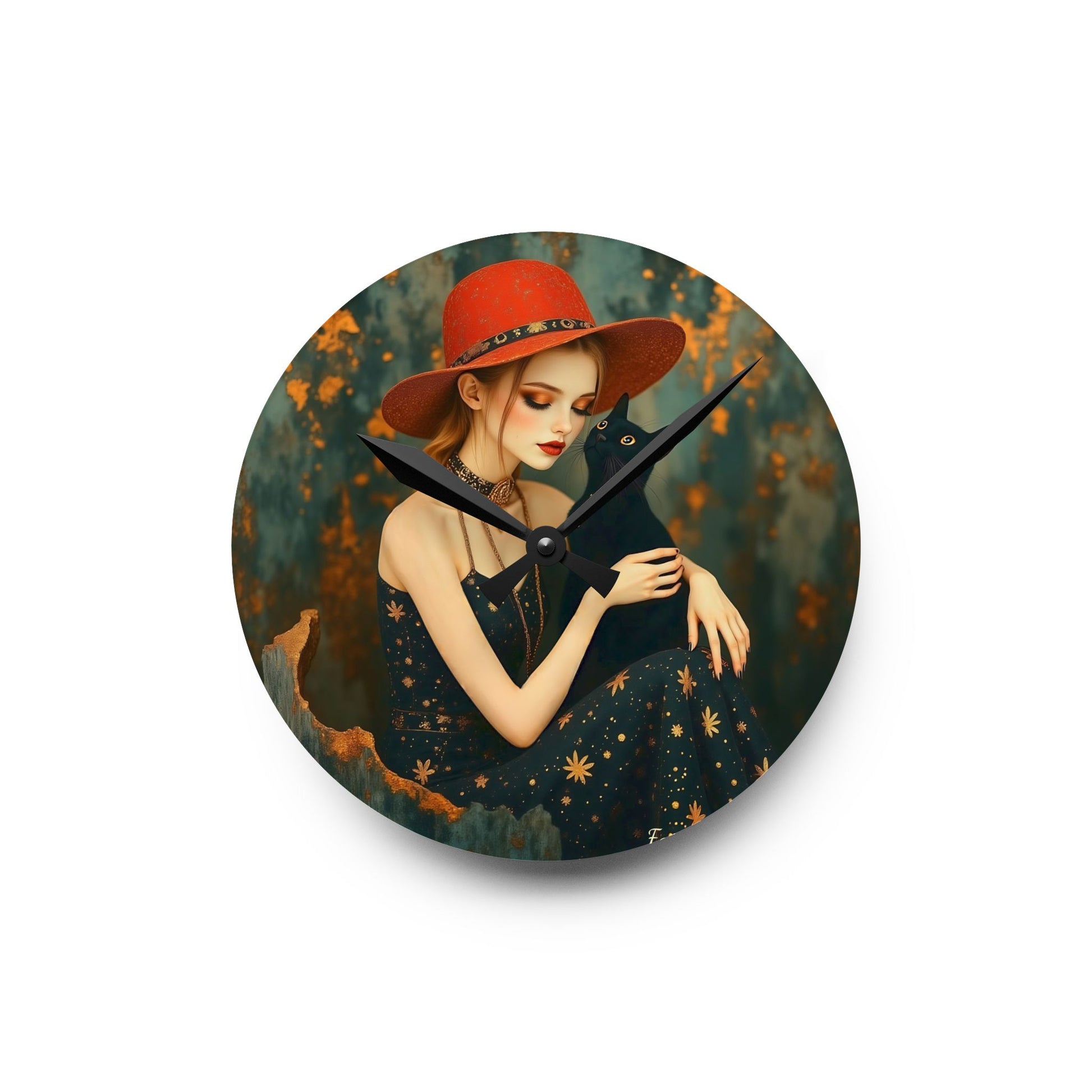 Girl with black cat Wall clock Gift Acrylic Wall Clock