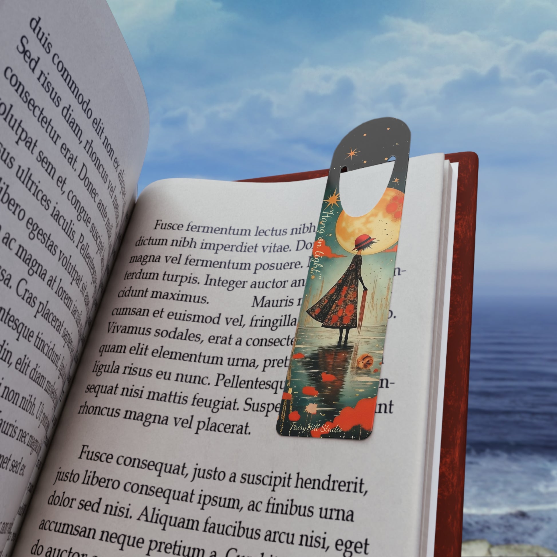 Elevate your reading experience with this beautifully designed Girl with red hat and umbrella   bookmark. Crafted from lightweight aluminum, it’s perfect for slipping into your favorite novel or even a journal. The vibrant colors and unique design bring joy and personality to your reading sessions, making every moment spent with a book feel special. This bookmark not only keeps your place but adds a touch of creativity to your literary adventures. It's an ideal gift for avid readers, book lovers, or anyone looking to add a little flair to their reading routine. Celebrate holidays like National Book Lovers Day or gift it for occasions like birthdays, anniversaries, or just to brighten someone's day!
