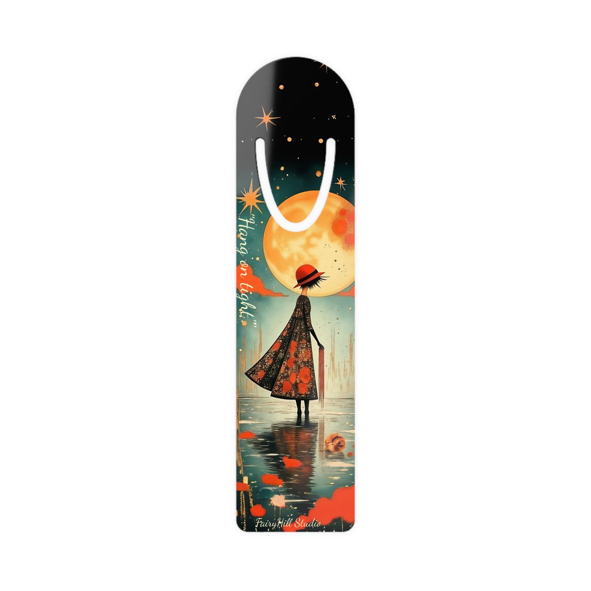 Girl with red hat and umbrella Illustration Bookmark, Cute Metal Bookmark, Gift for circus Lovers, Reading Accessory, Book Lover Gift, Unique Gift Idea